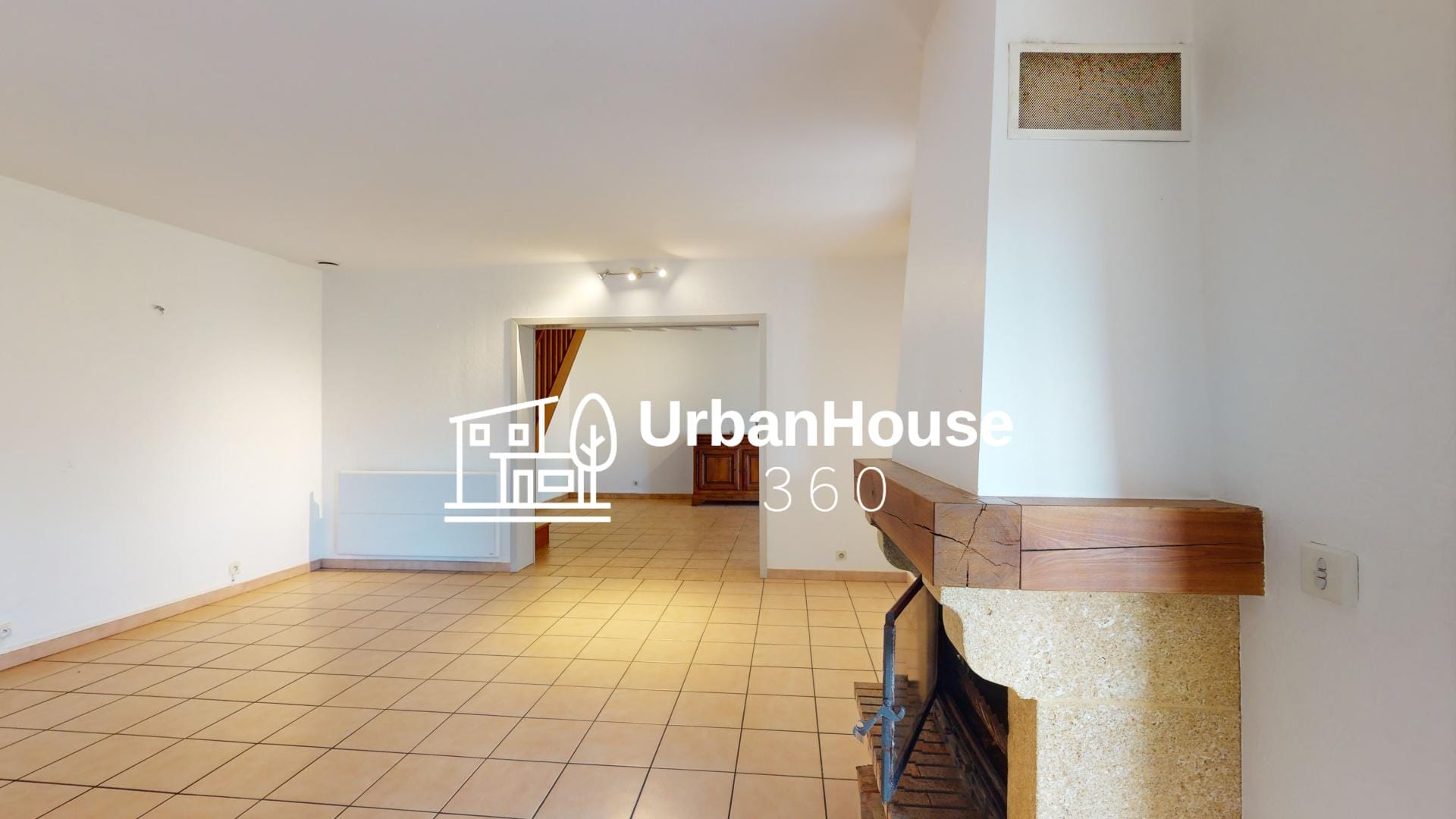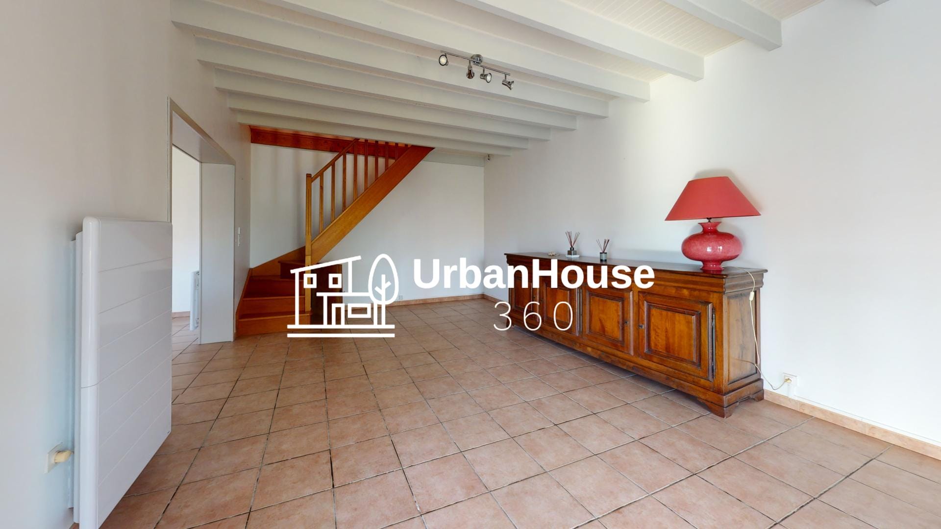 La mezzanine située au-dessus du salon ajoute une dimension de polyvalence et de charme à cette demeure.