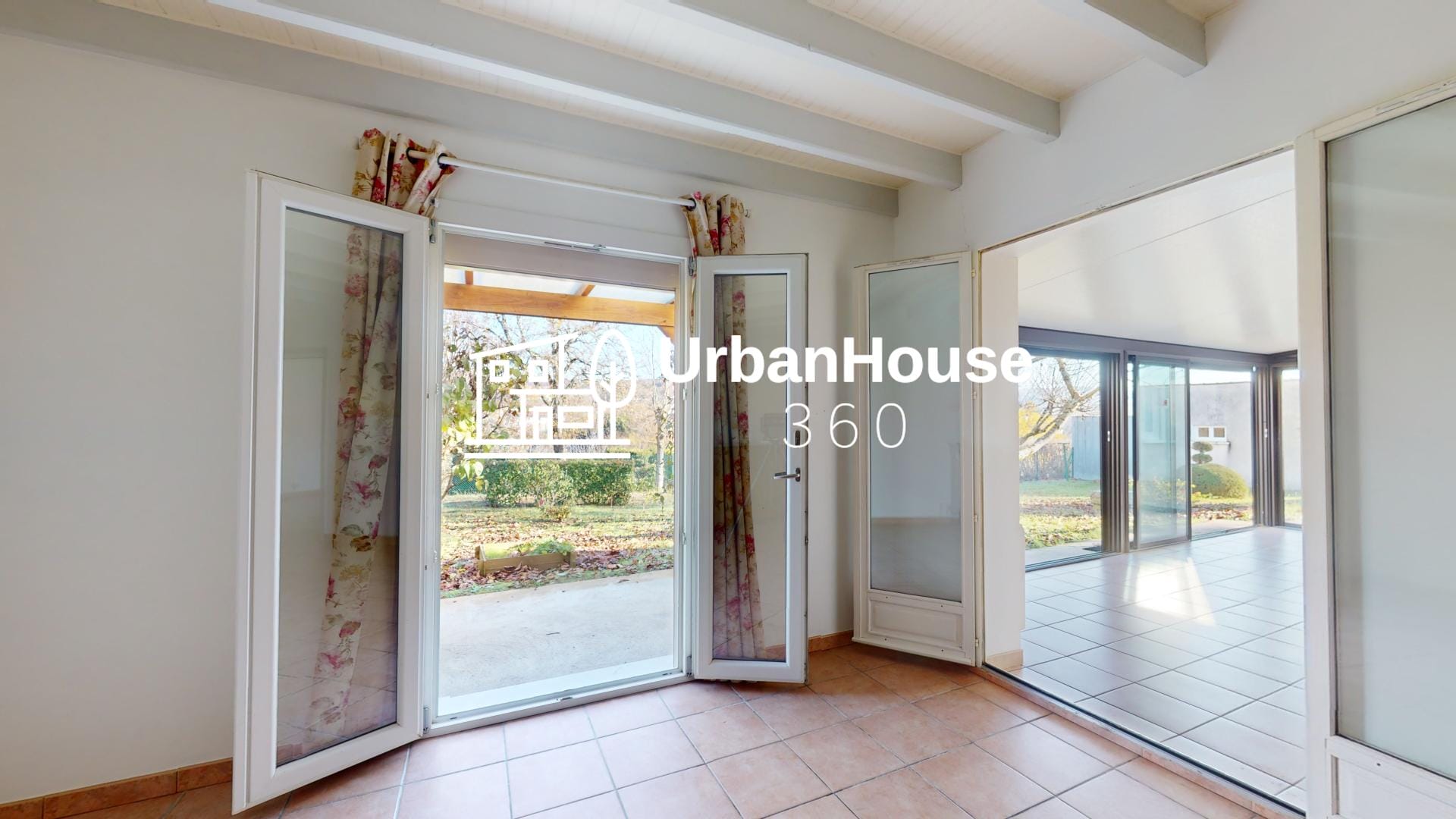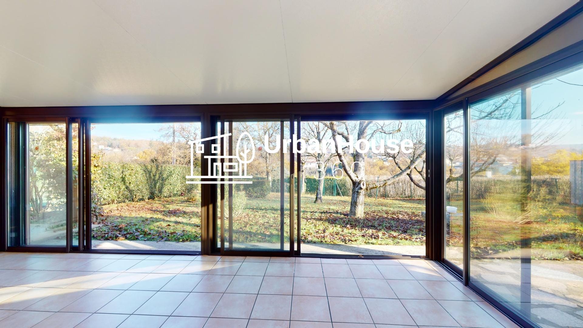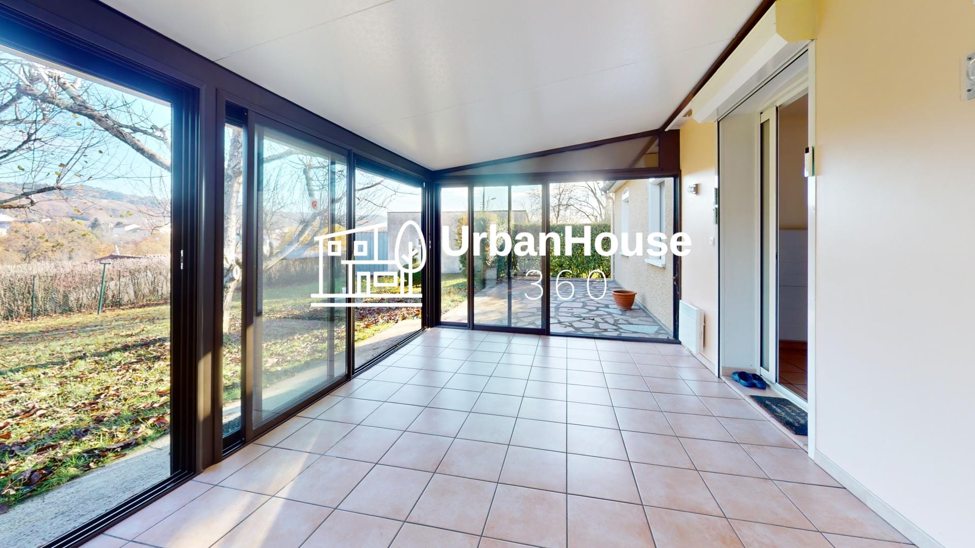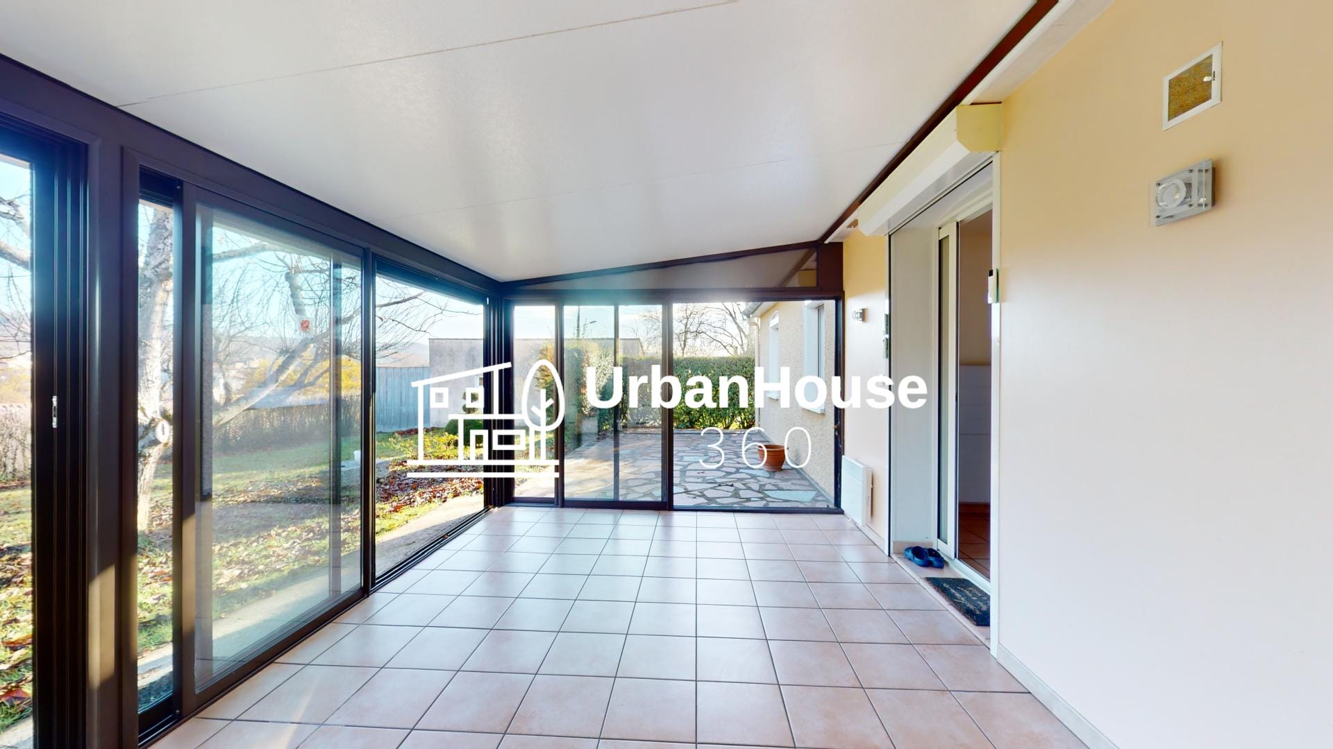 La véranda, accessible via la salle à manger et le salon, prolonge l’espace de vie vers l’extérieur.