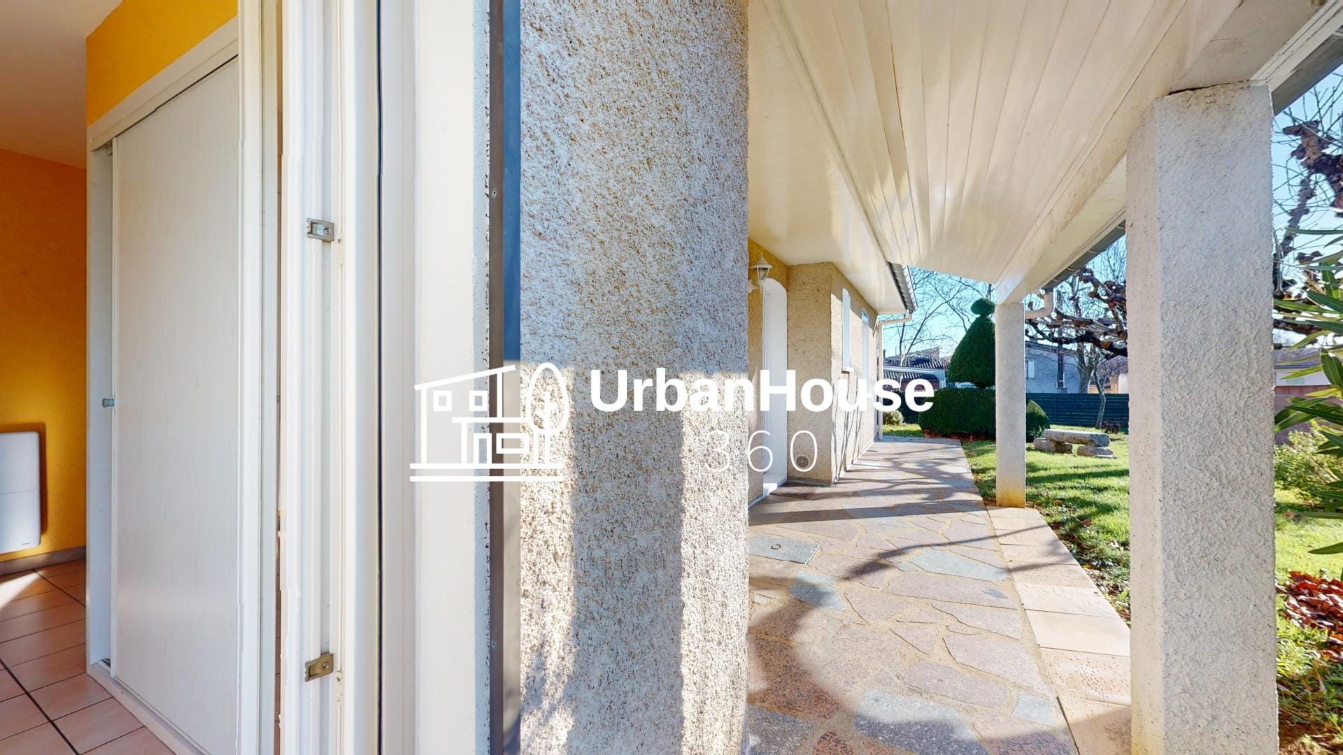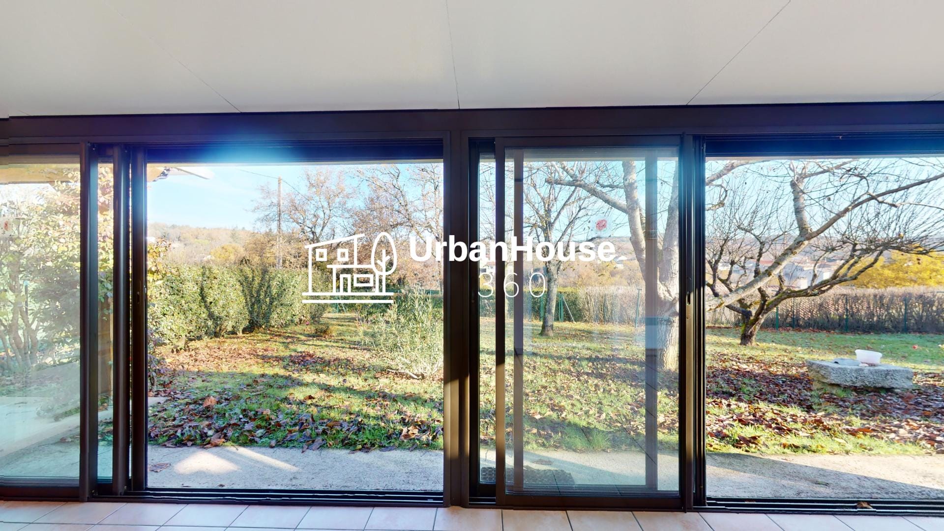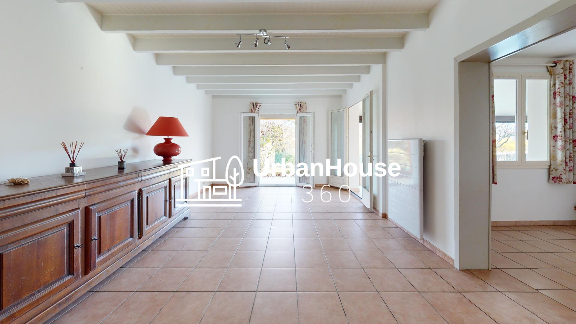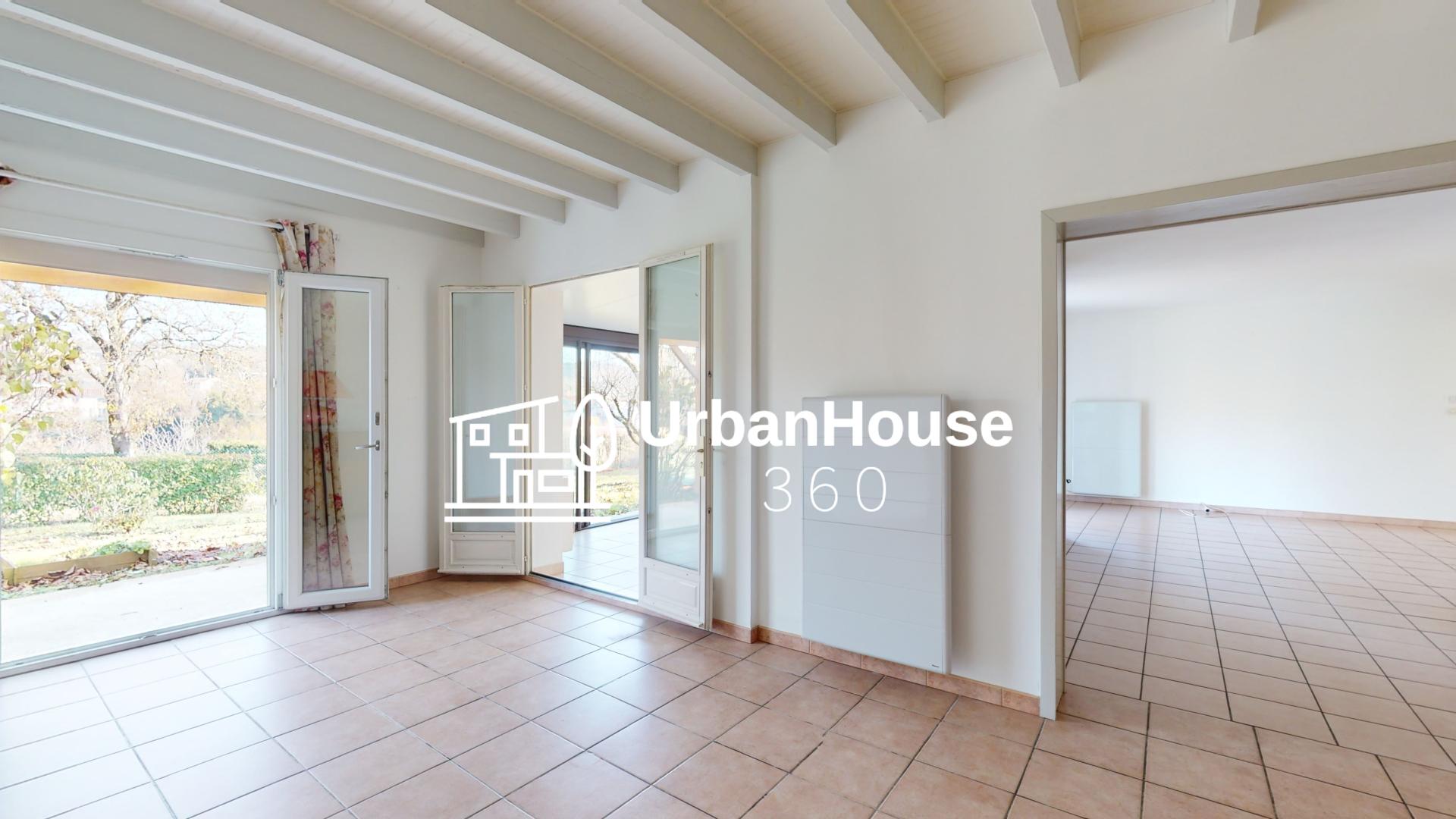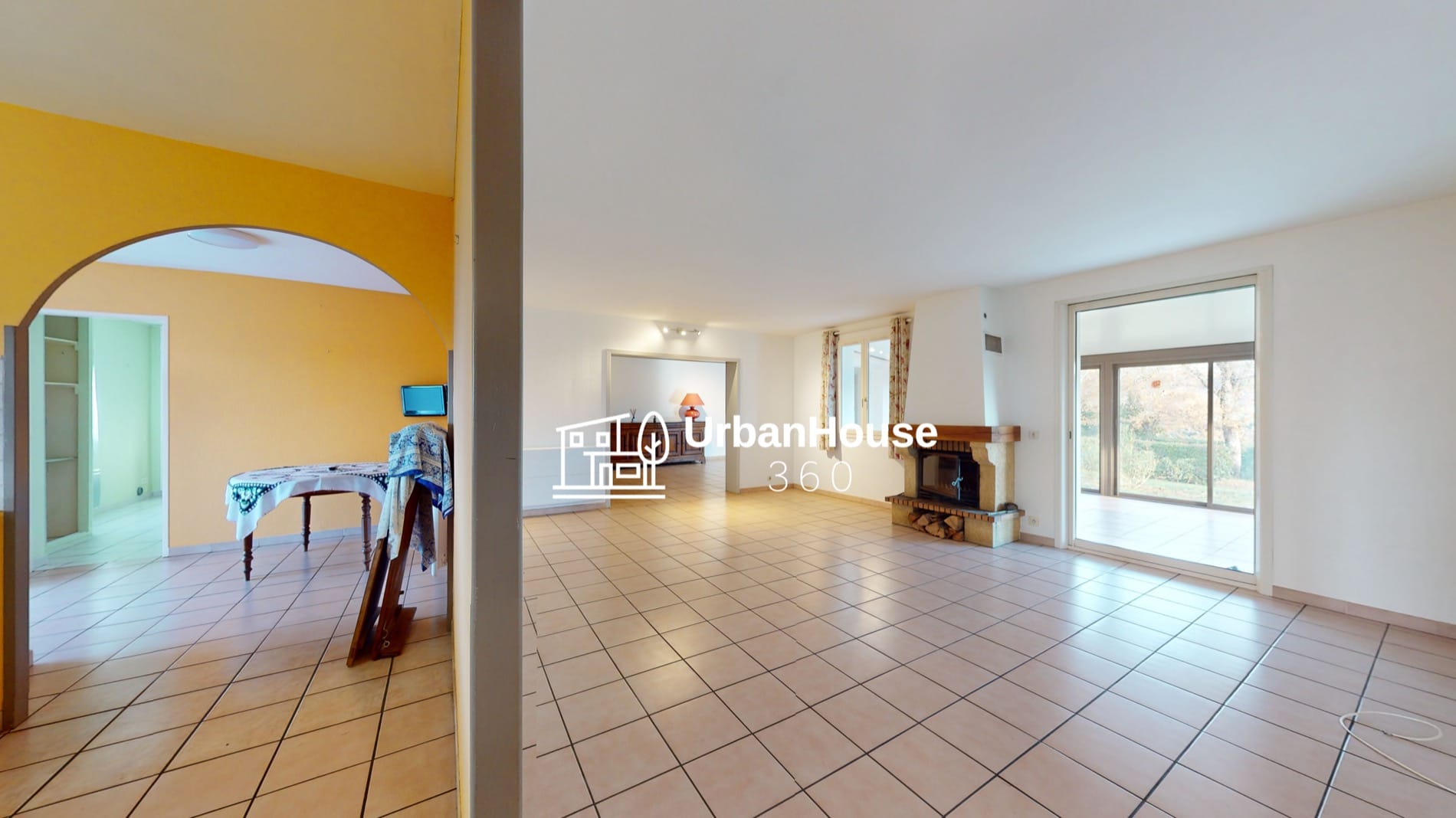 La véranda, accessible via la salle à manger et le salon, prolonge l’espace de vie vers l’extérieur.