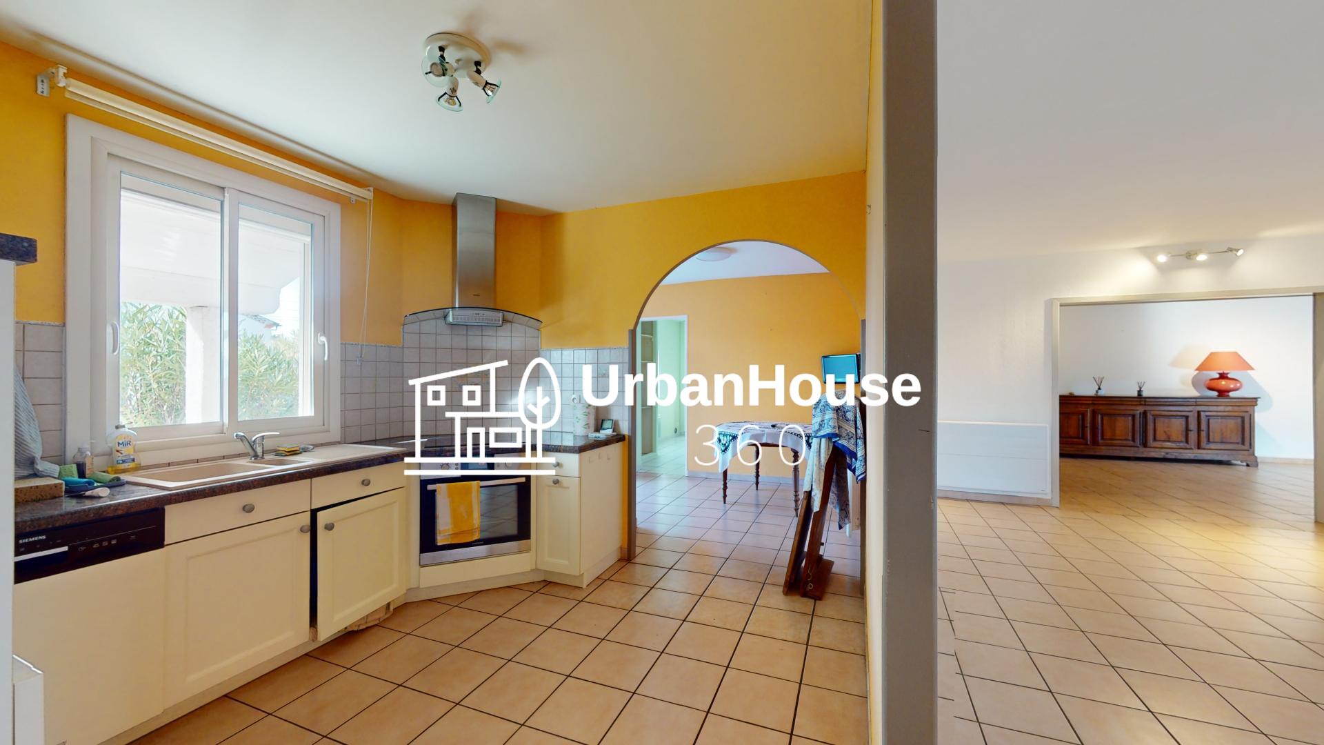 La maison comprend huit pièces généreuses réparties judicieusement pour optimiser l’espace et la lumière naturelle.