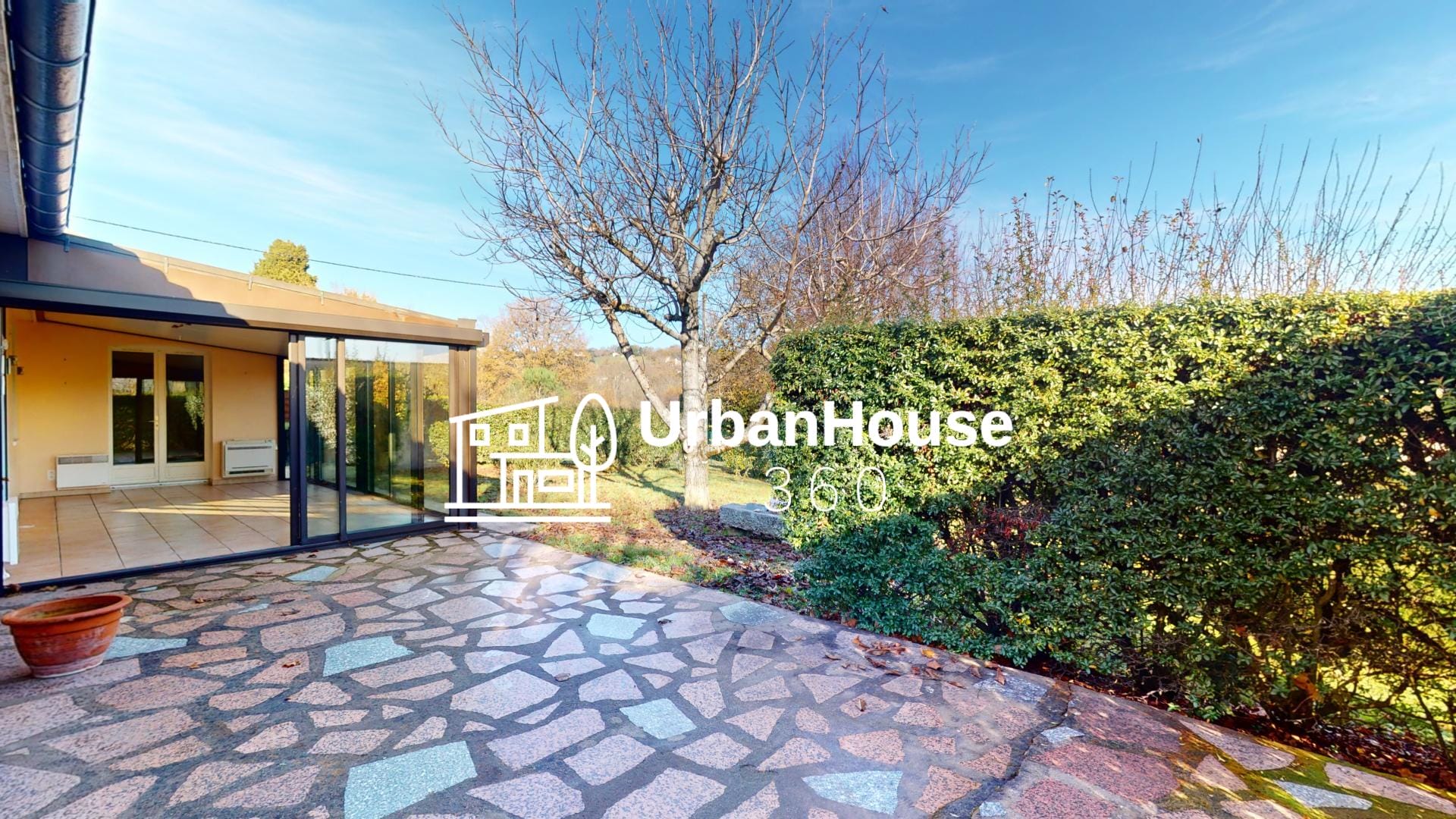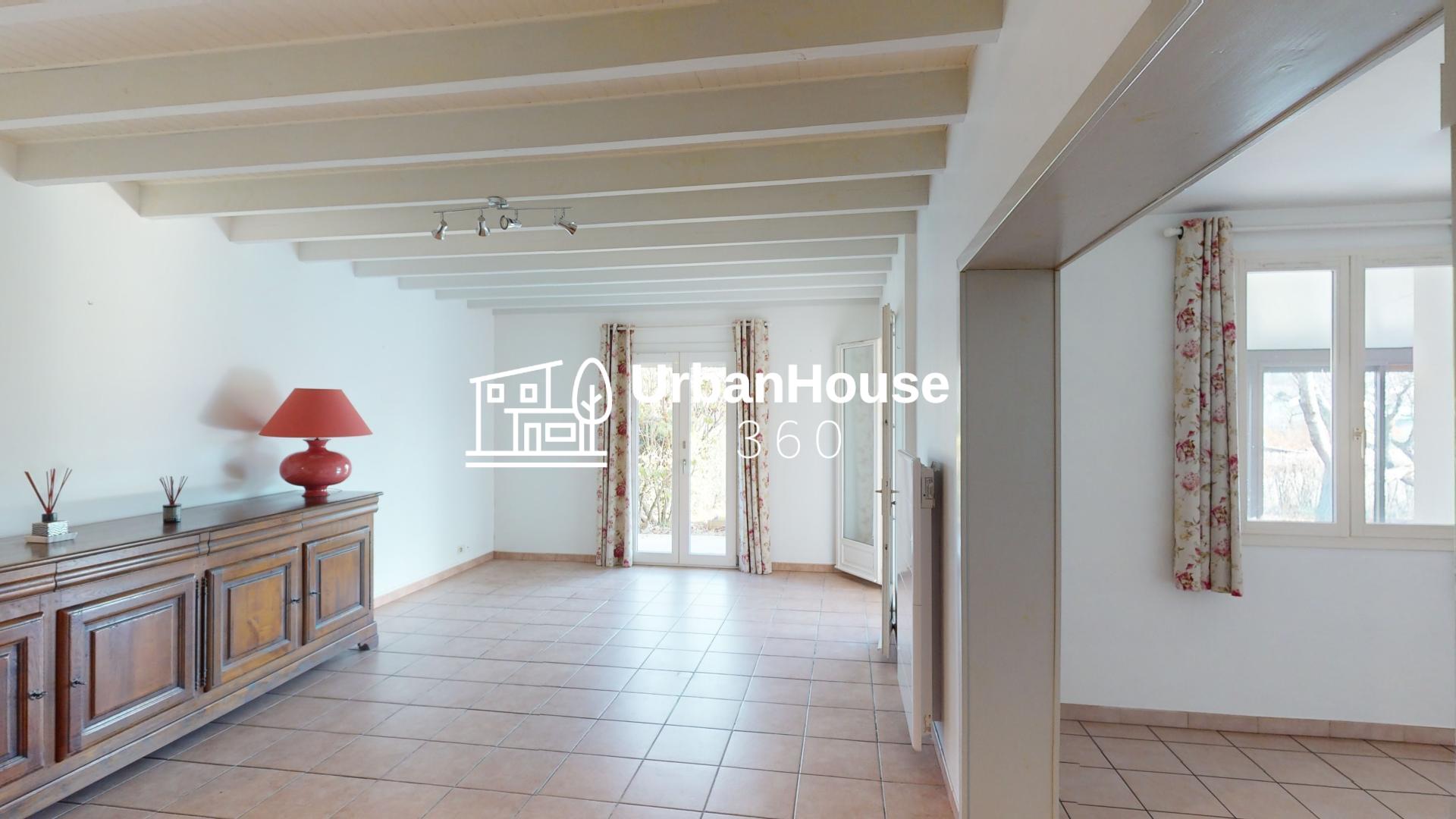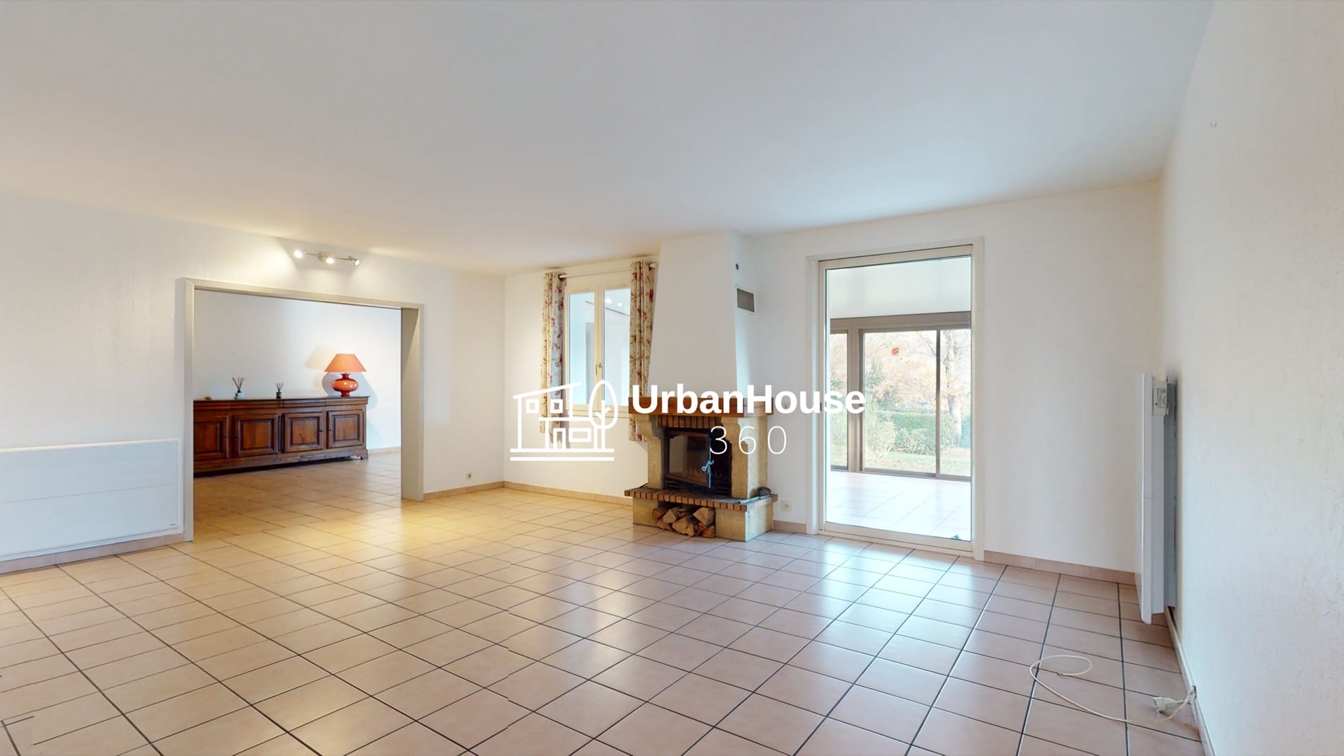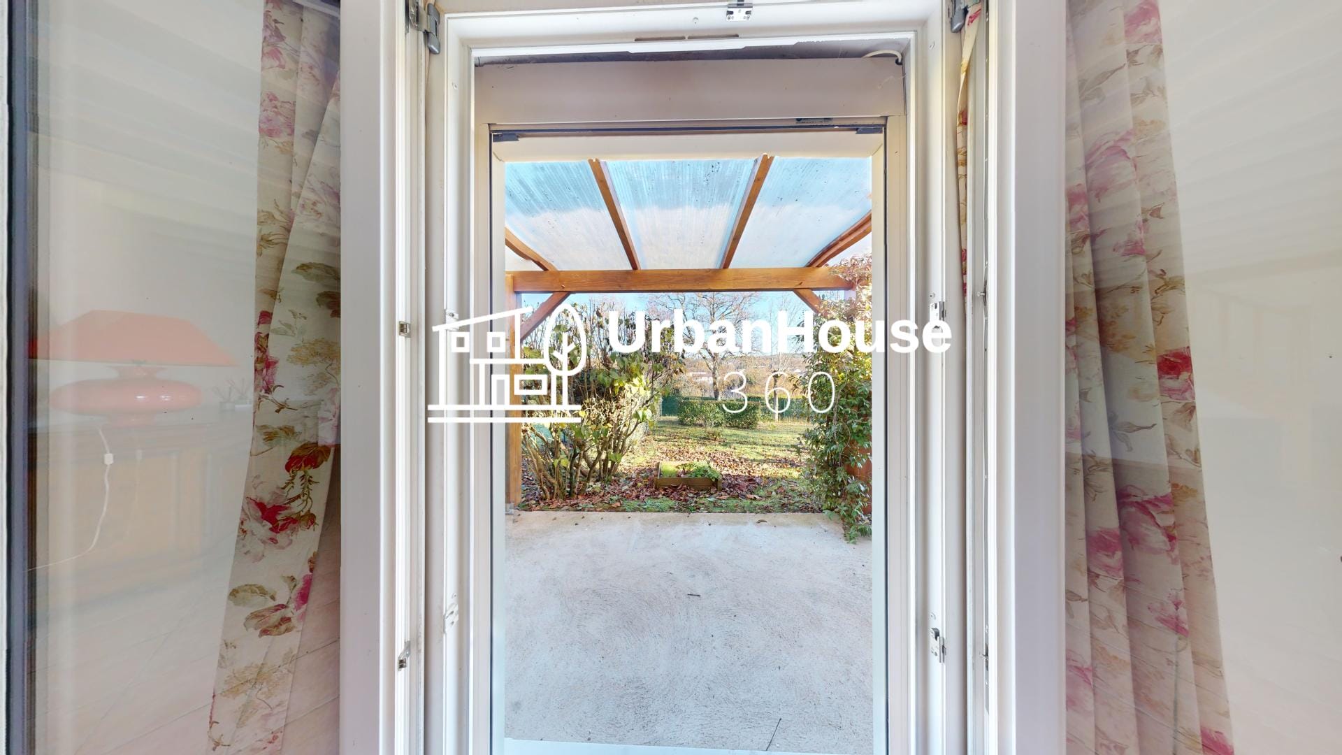 La véranda de 30 m² sur l’arrière, avec terrasse carrelée, offre un espace supplémentaire pour se détendre et profiter de la vue sur le jardin arboré.