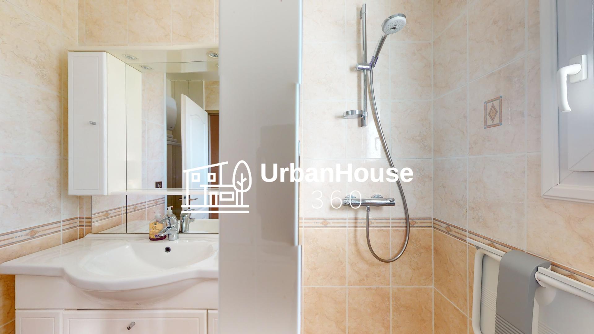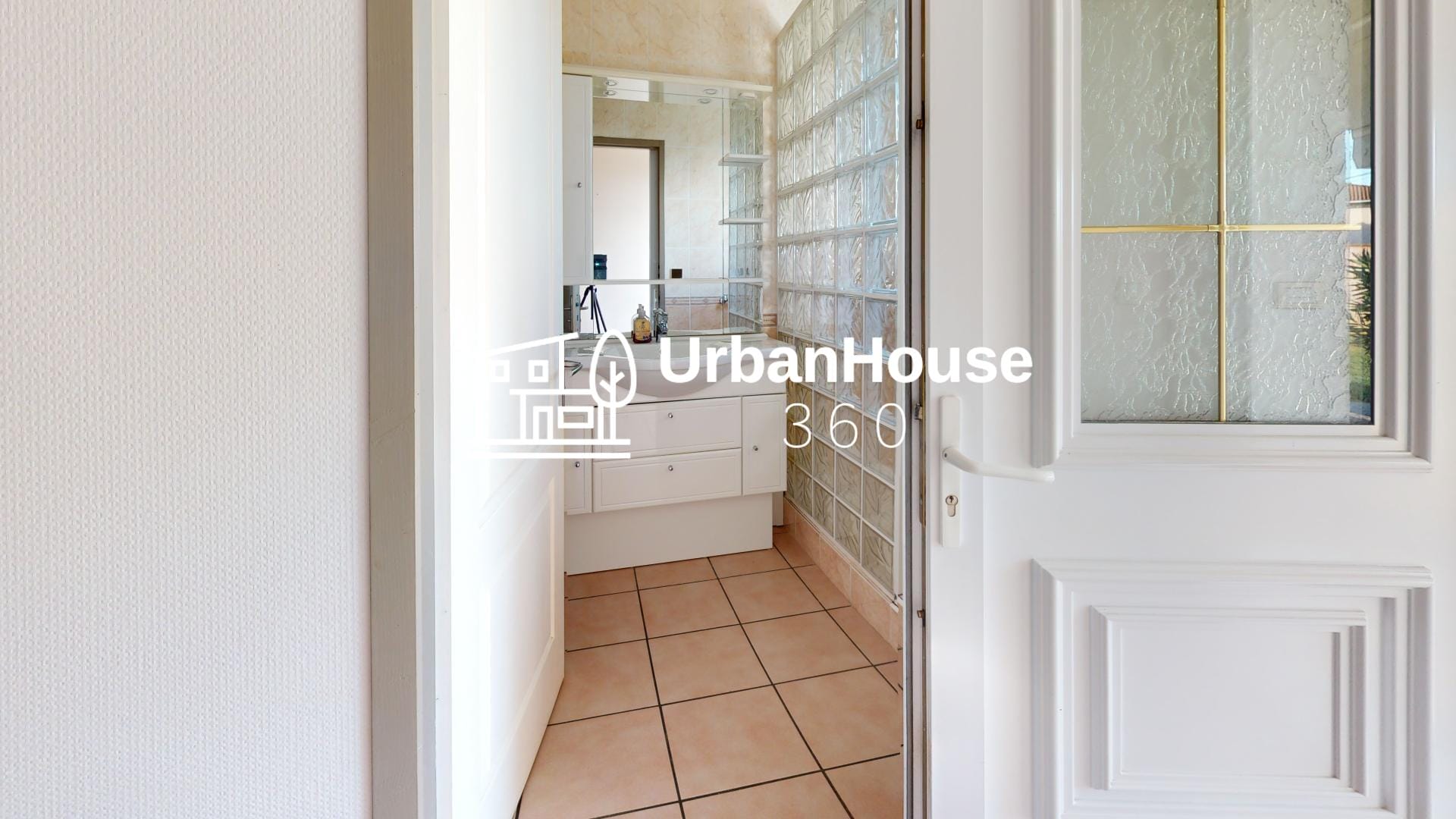 Salle d’eau lumineuse avec ouverture sur le jardin sur l’avant :