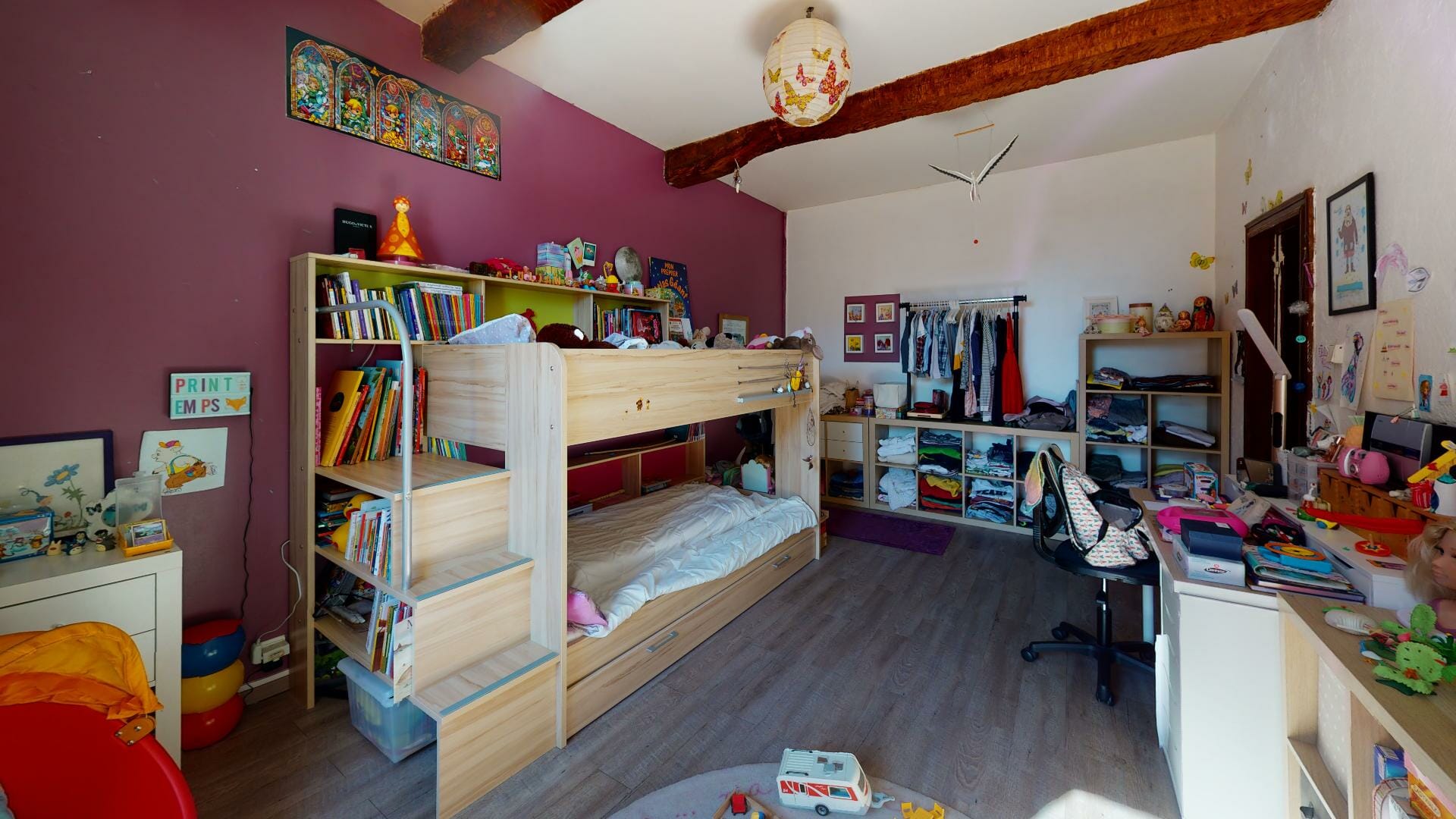Les combles aménageables de 94m2 environ, avec des murs en briques apparentes rouges… restent à imaginer et aménager en espace habitable.
