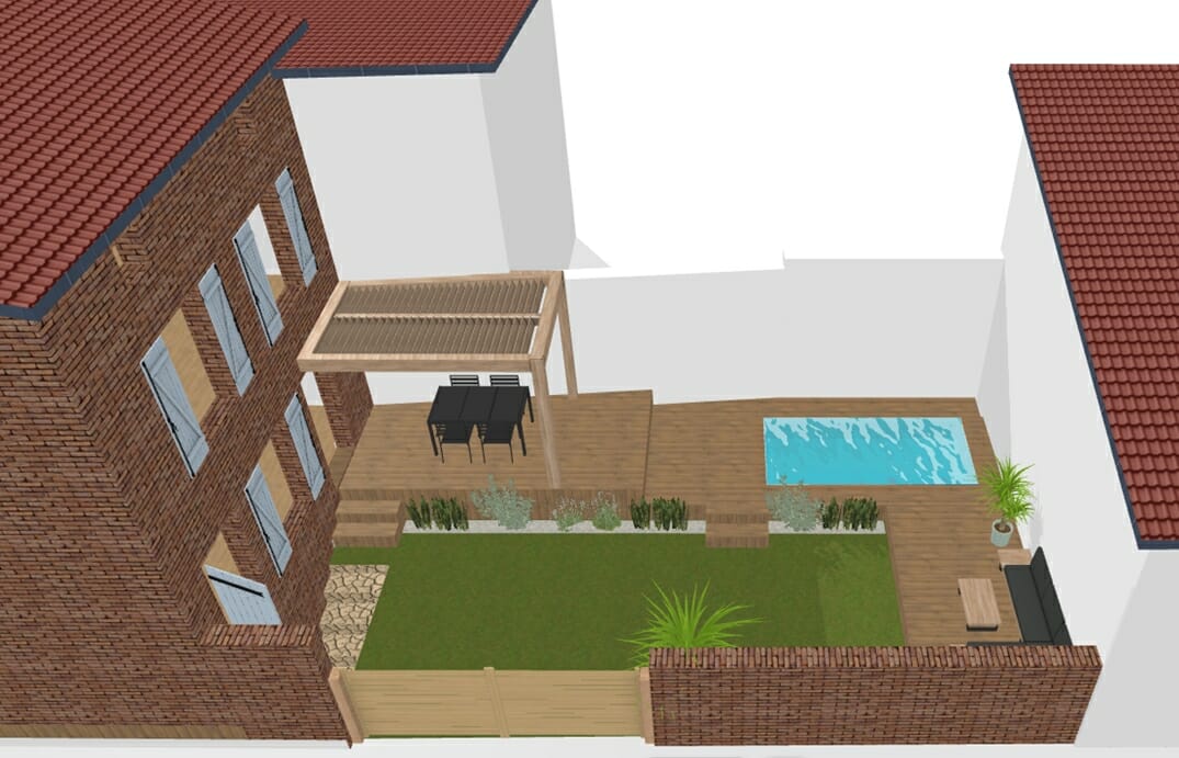 La parcelle fait 190m2, le jardin représentant 70m2.