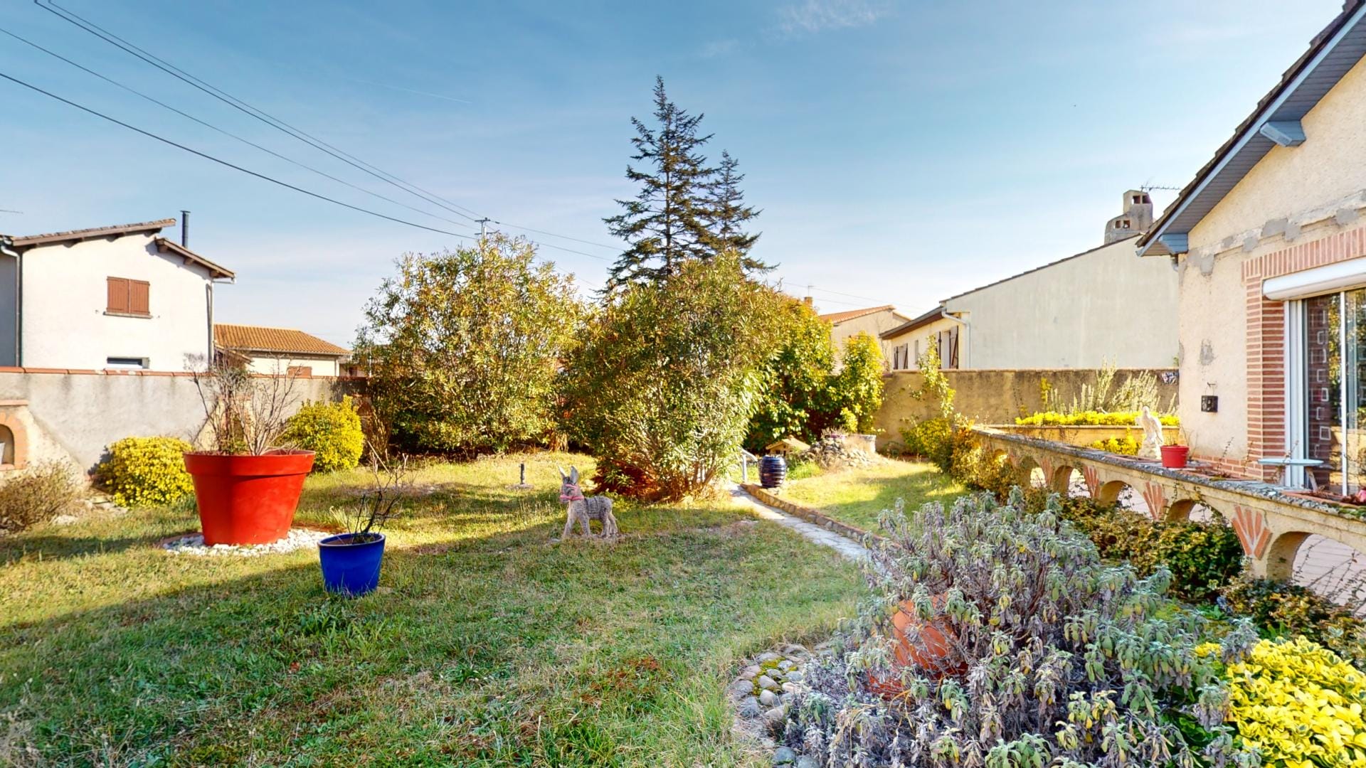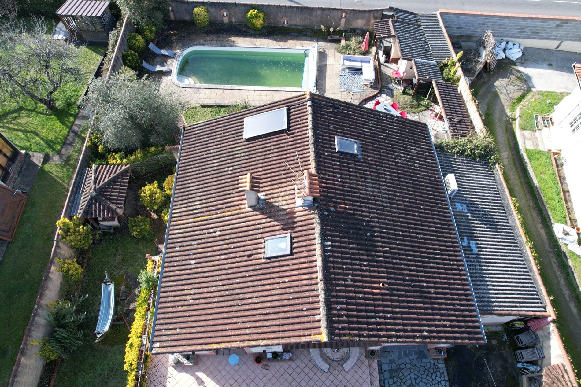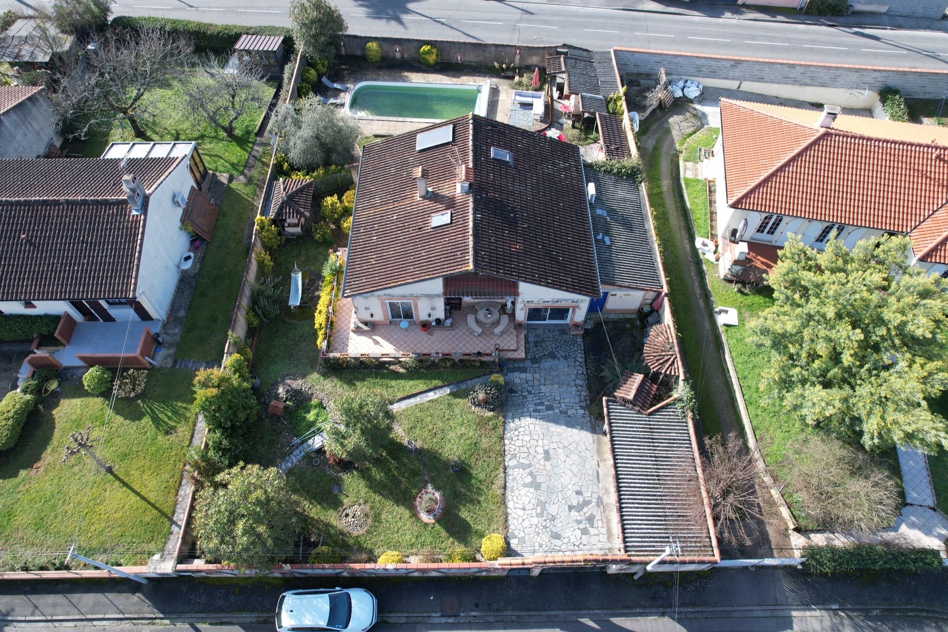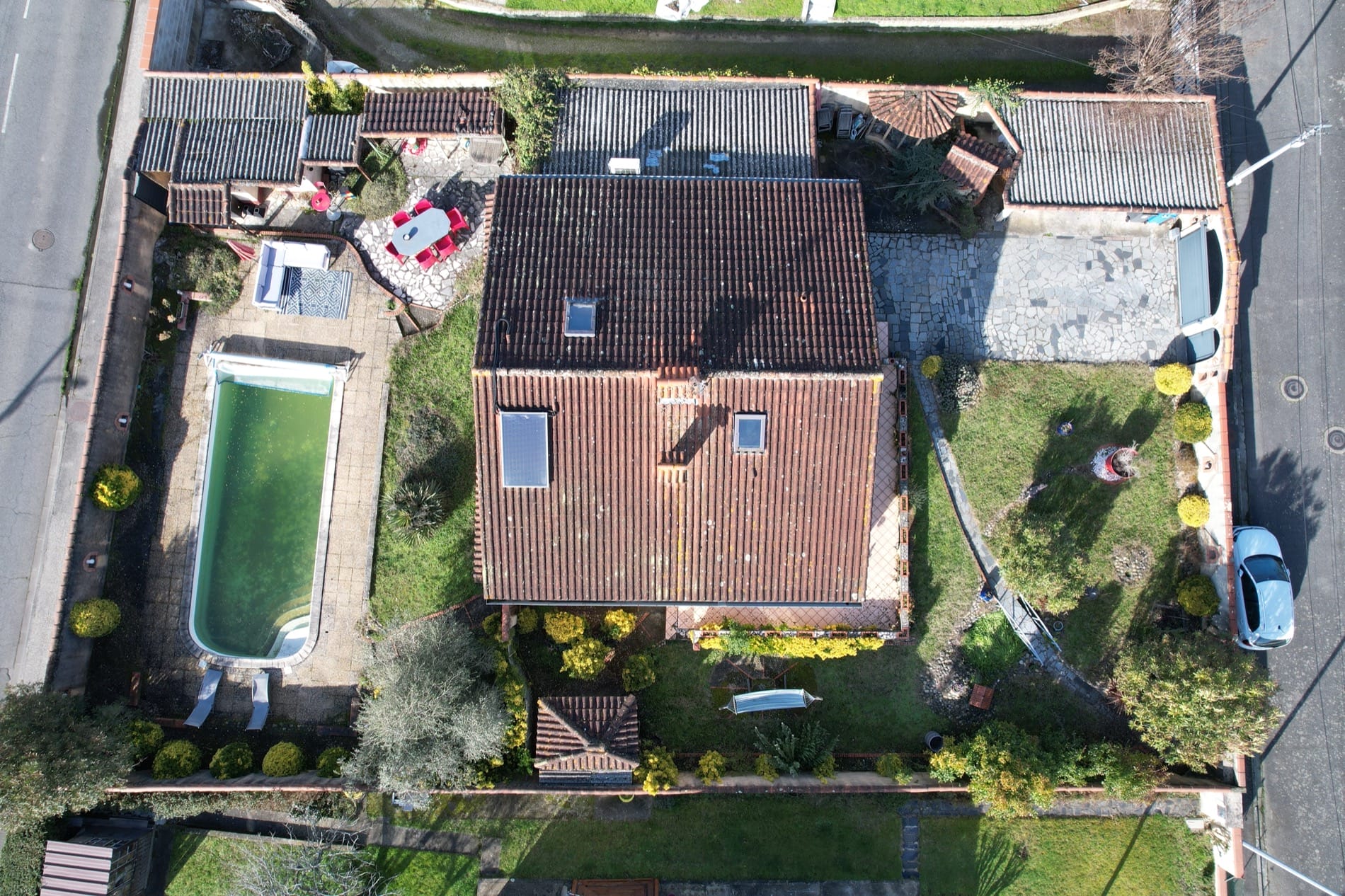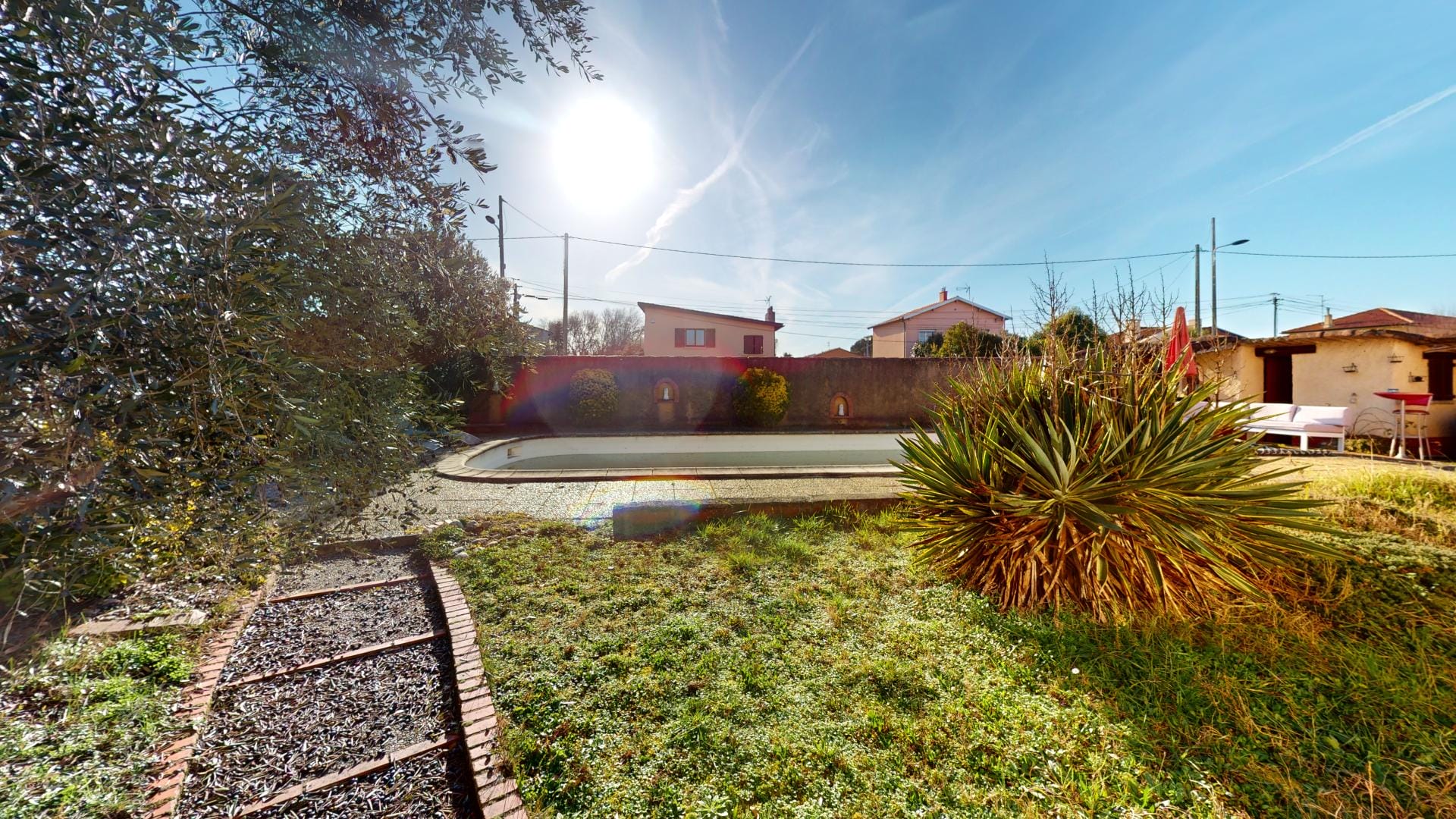 Son jardin arboré est déjà doté d’une grande piscine de 37m² sur l’arrière de la maison, en mode hivernage le temps de la saison froide…