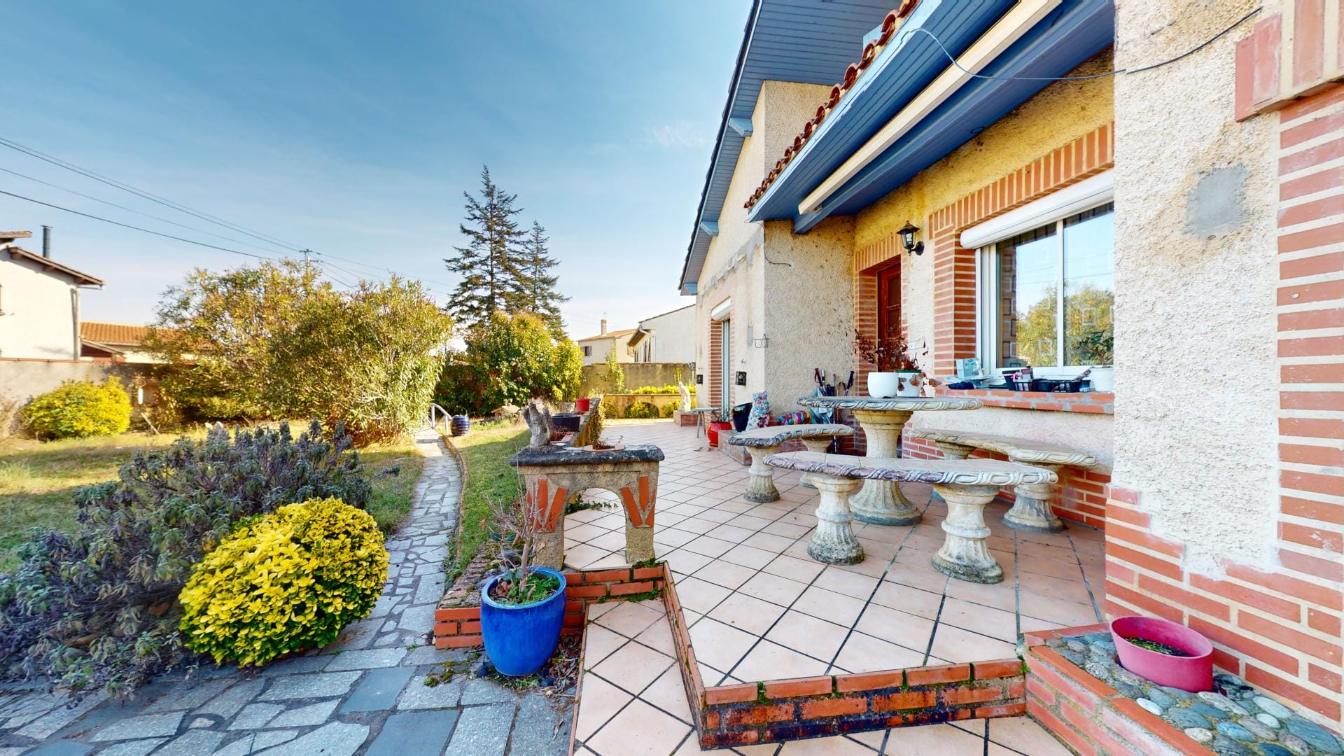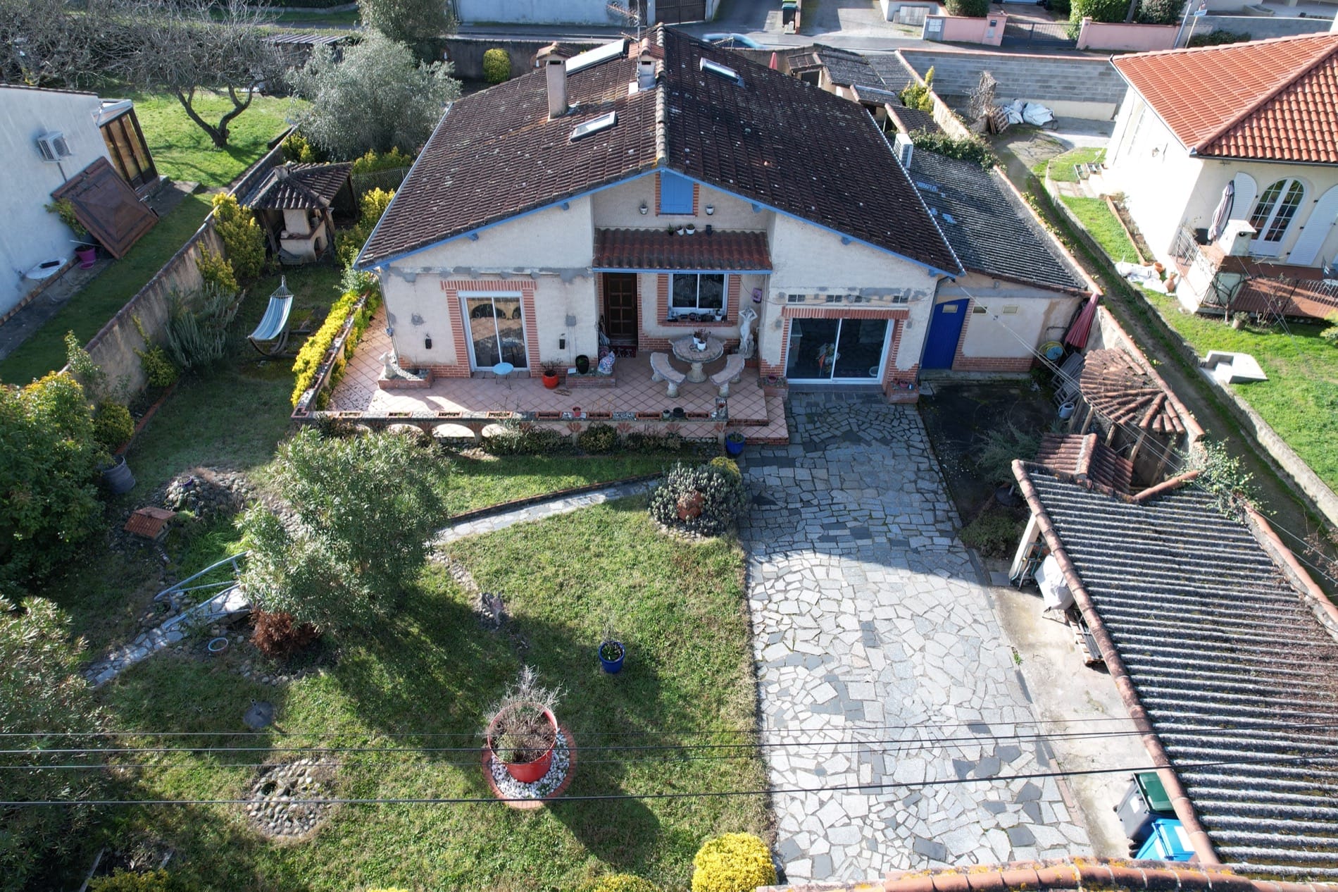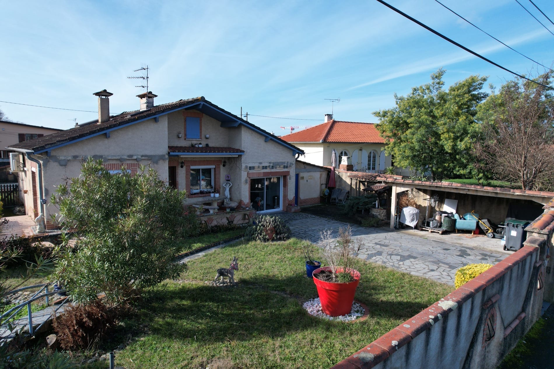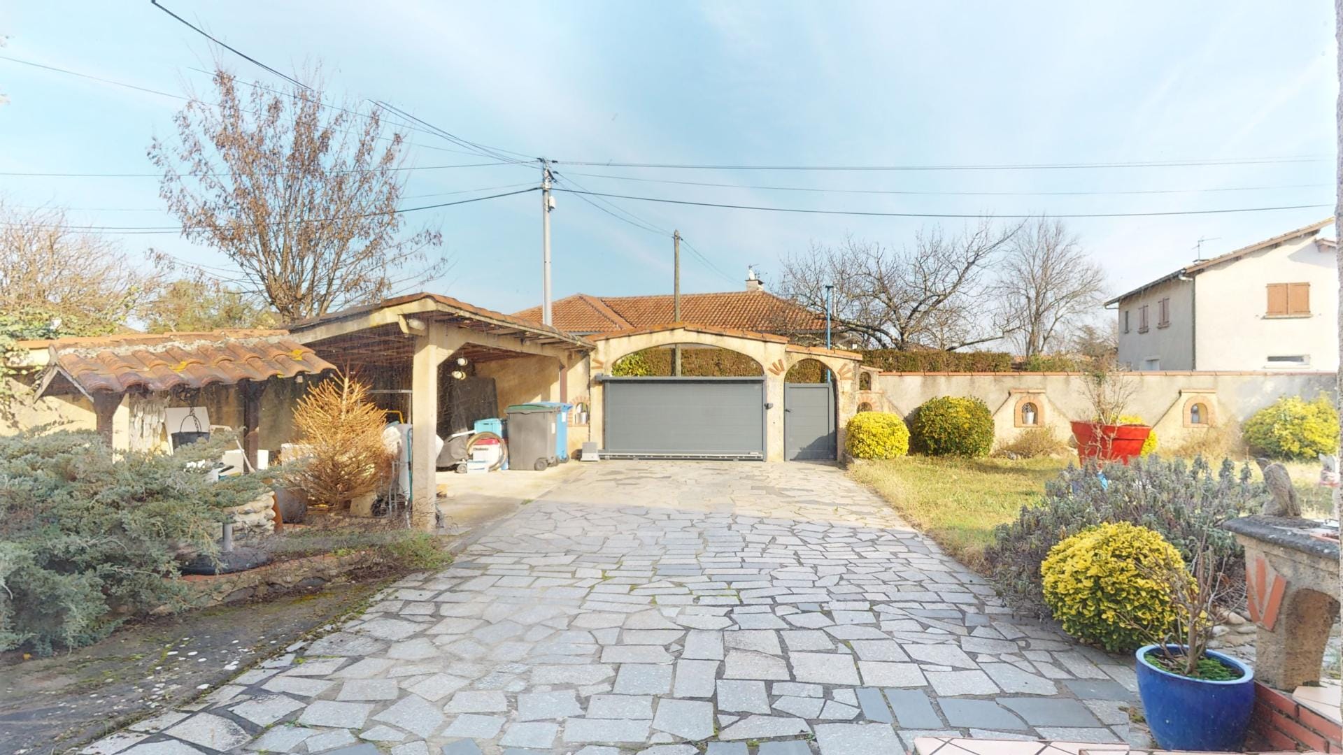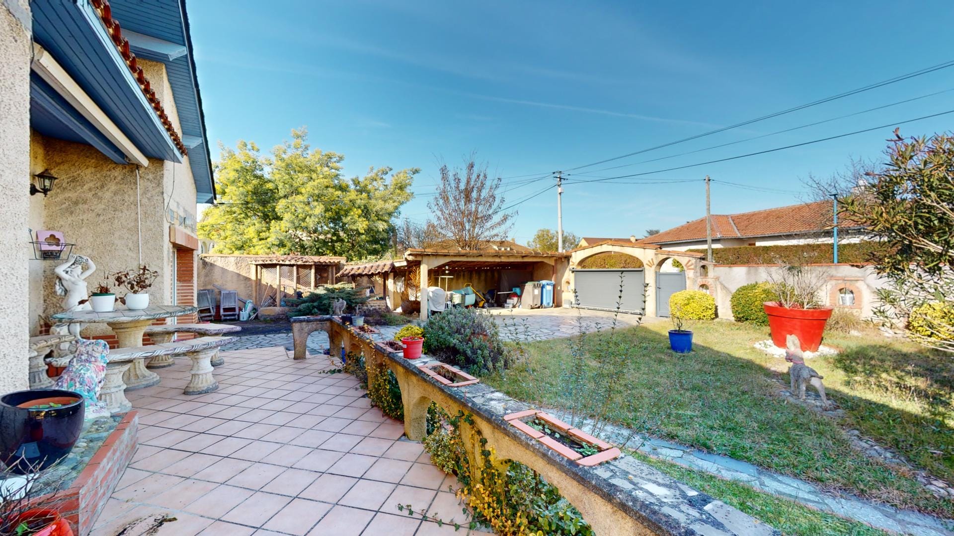 Son jardin arboré est déjà doté d’une grande piscine de 37m² sur l’arrière de la maison, en mode hivernage le temps de la saison froide…