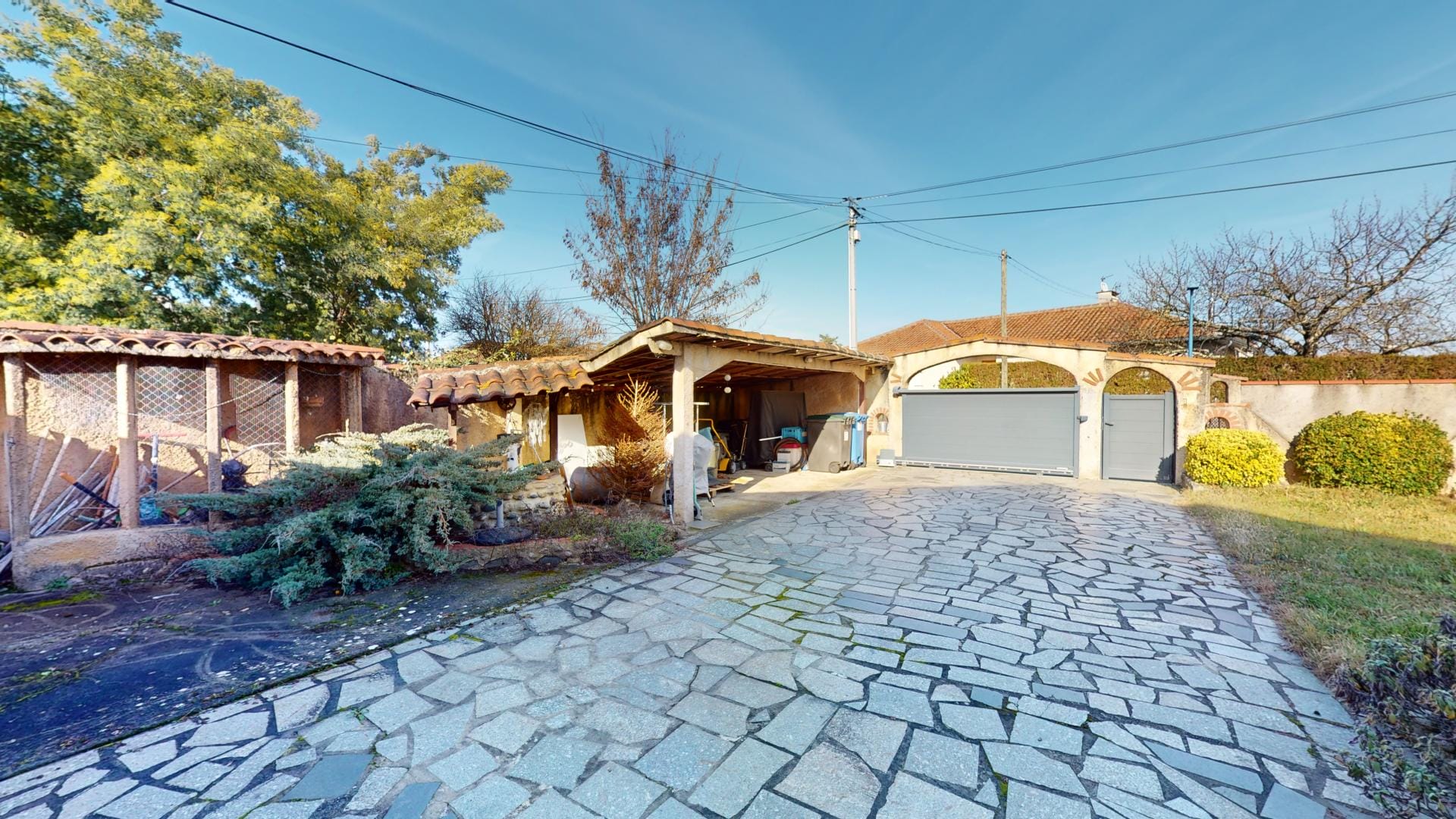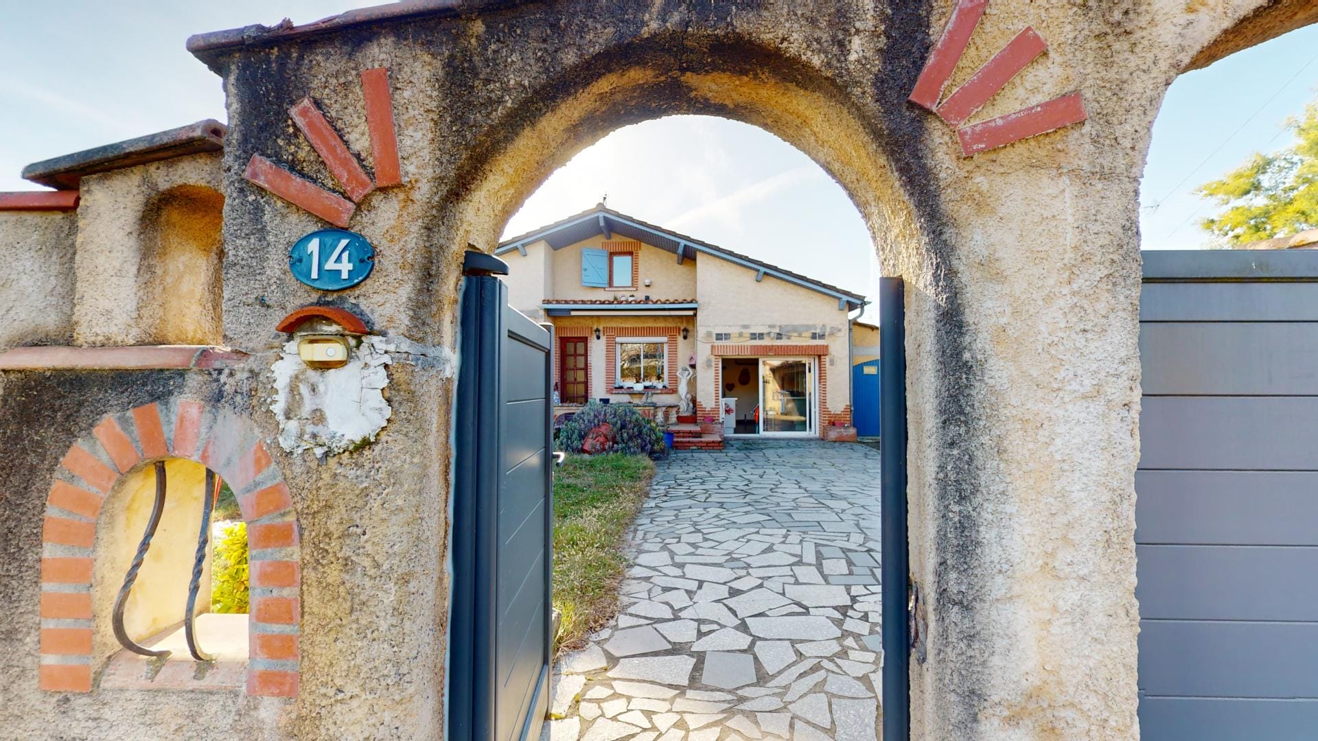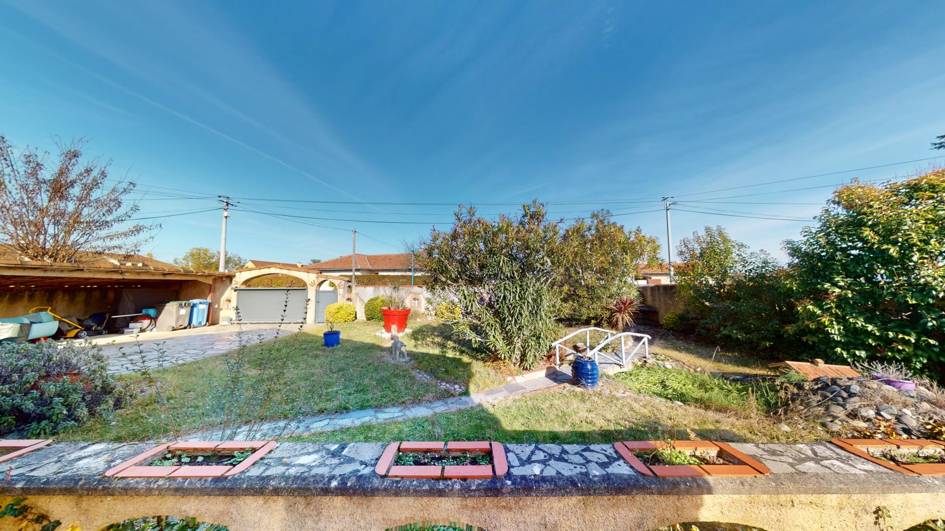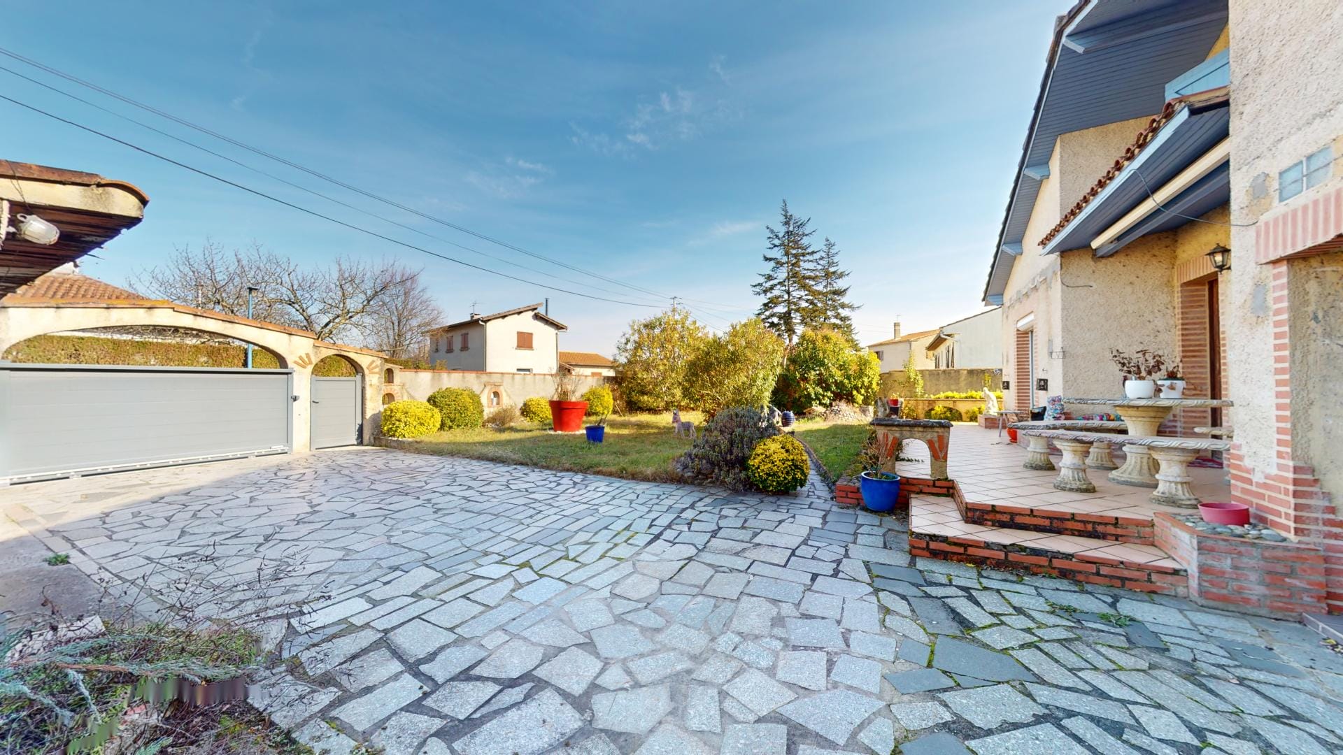 La maison se trouve sur une parcelle entièrement clôturée avec portail automatique et portillon, assurant sécurité et intimité.