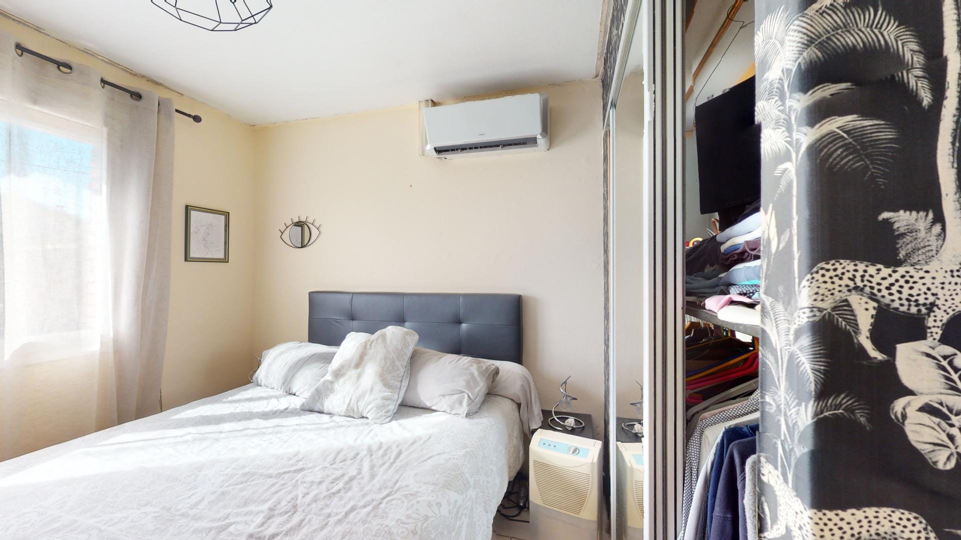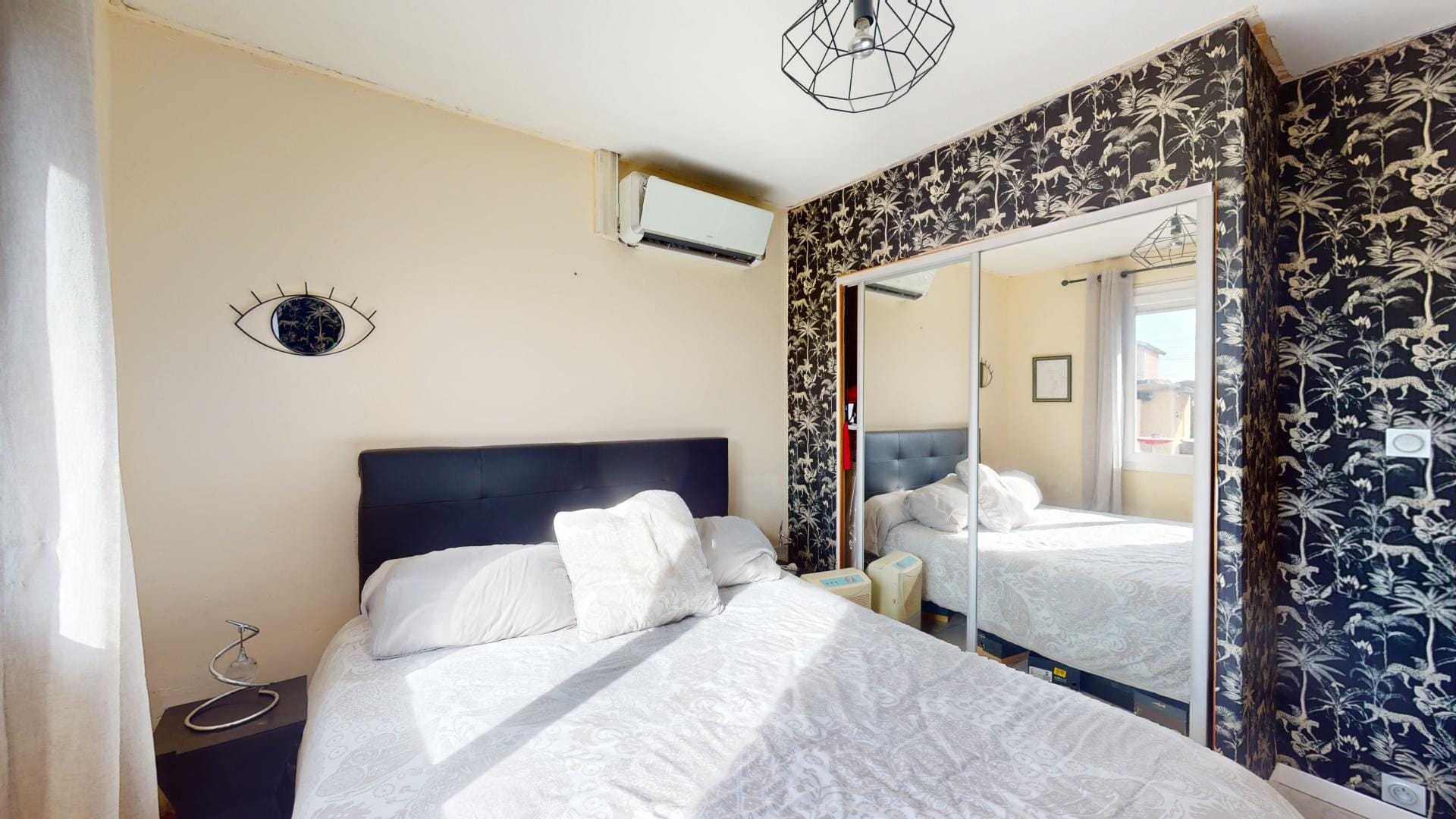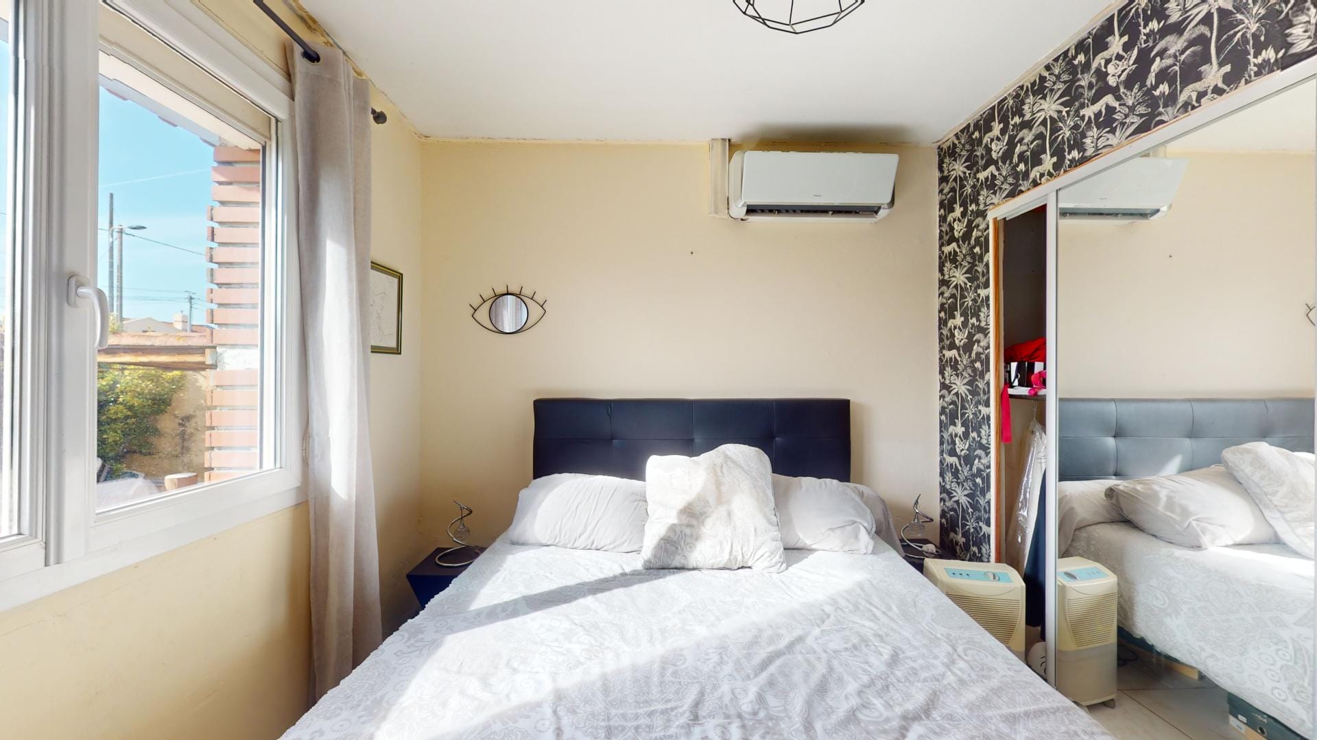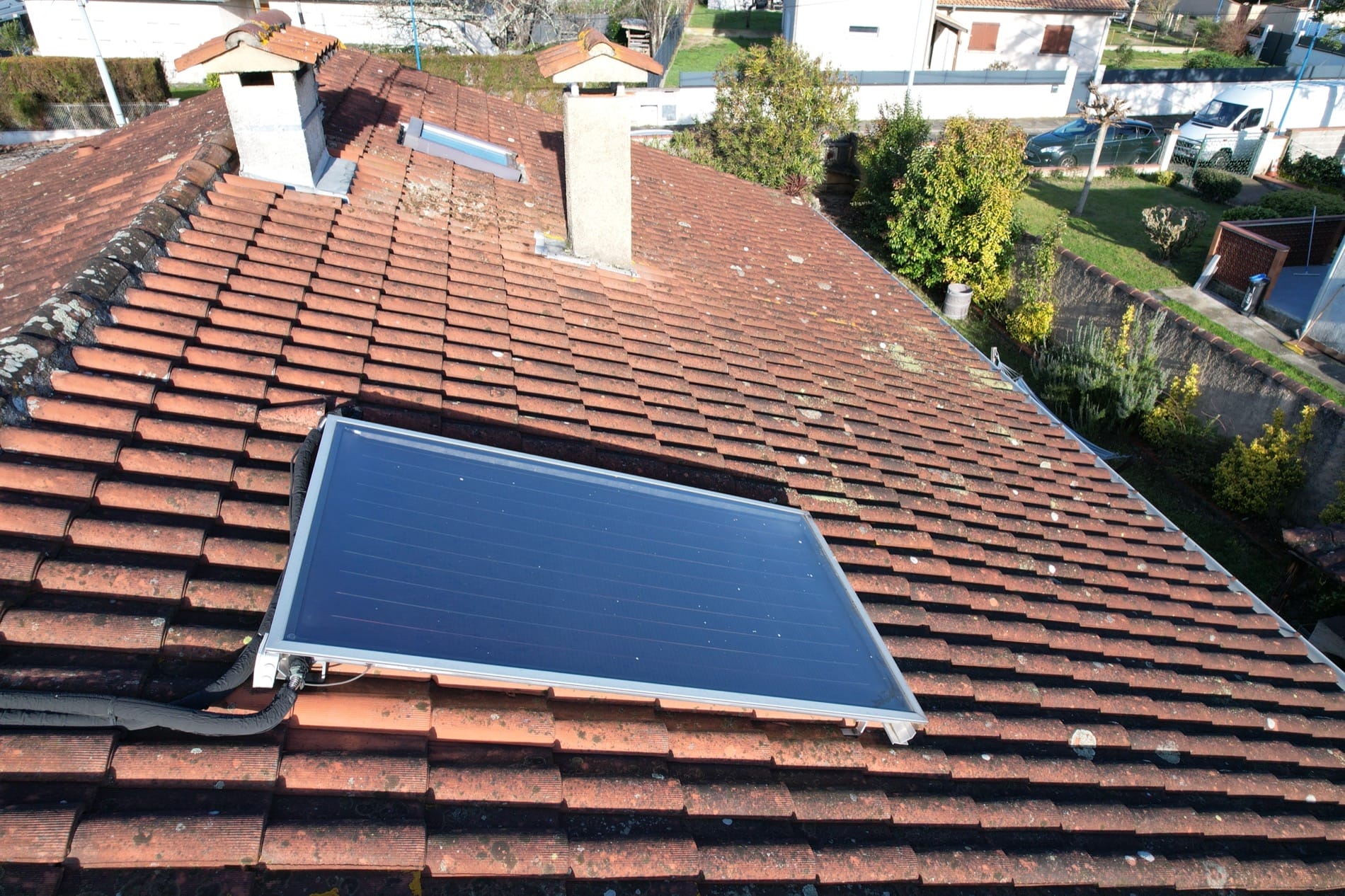 Le panneau solaire pour le chauffe-eau cumulus, la climatisation, ainsi que les terrasses carrelées à l’avant et à l’arrière ajoutent au confort de cette maison, tout en soulignant son engagement envers la durabilité.
