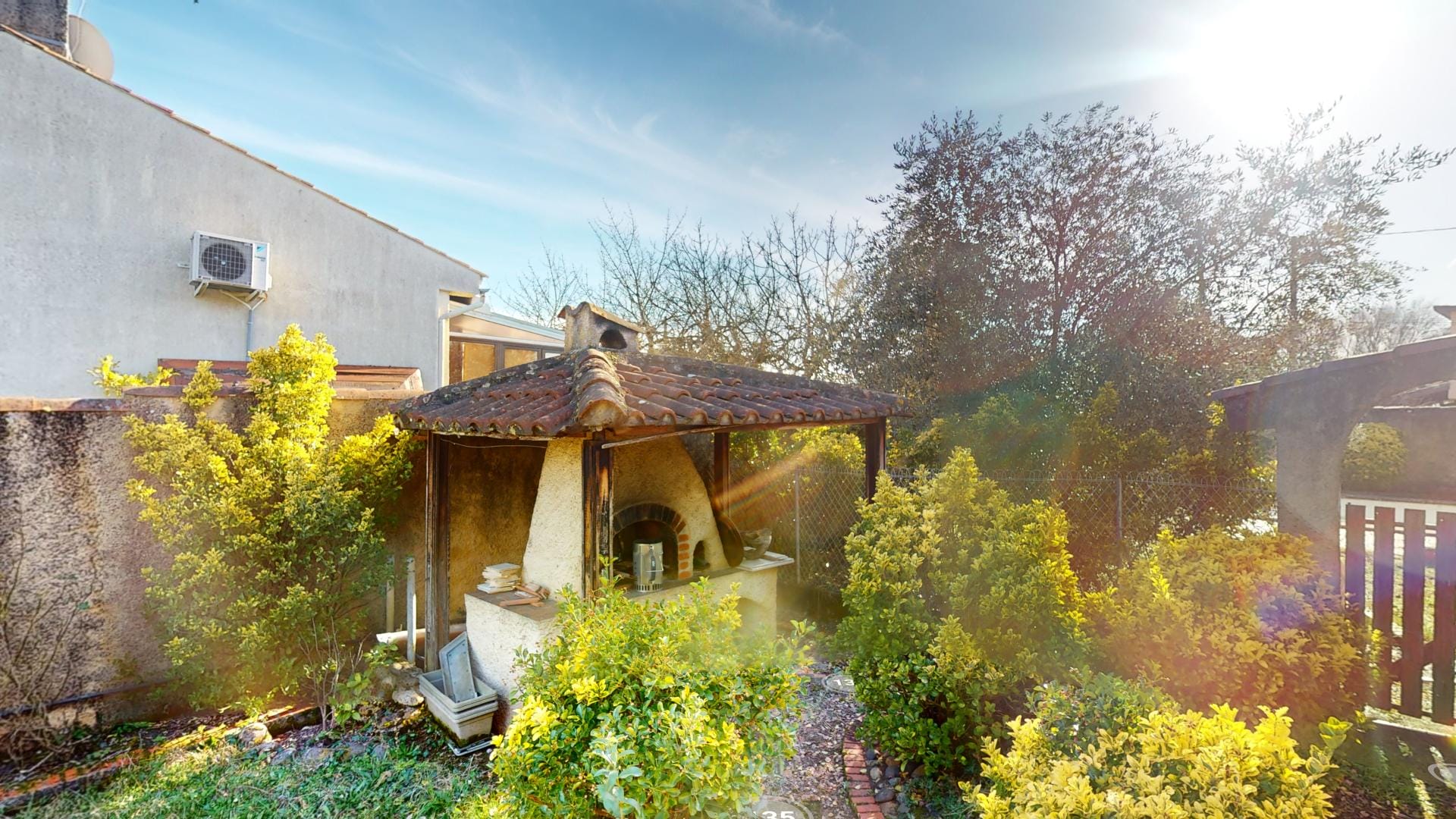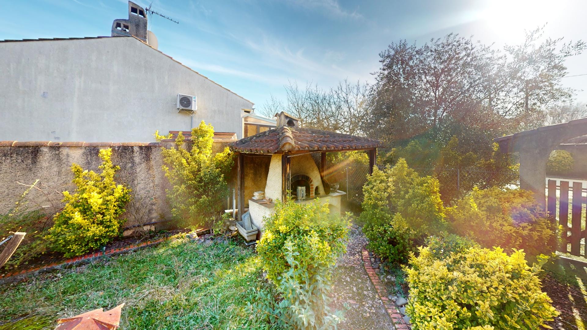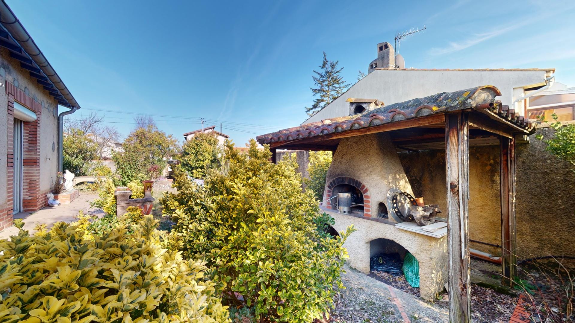et d’un grand barbecue bâti en dur abrité, créant un cadre extérieur idéal pour la détente et les loisirs.