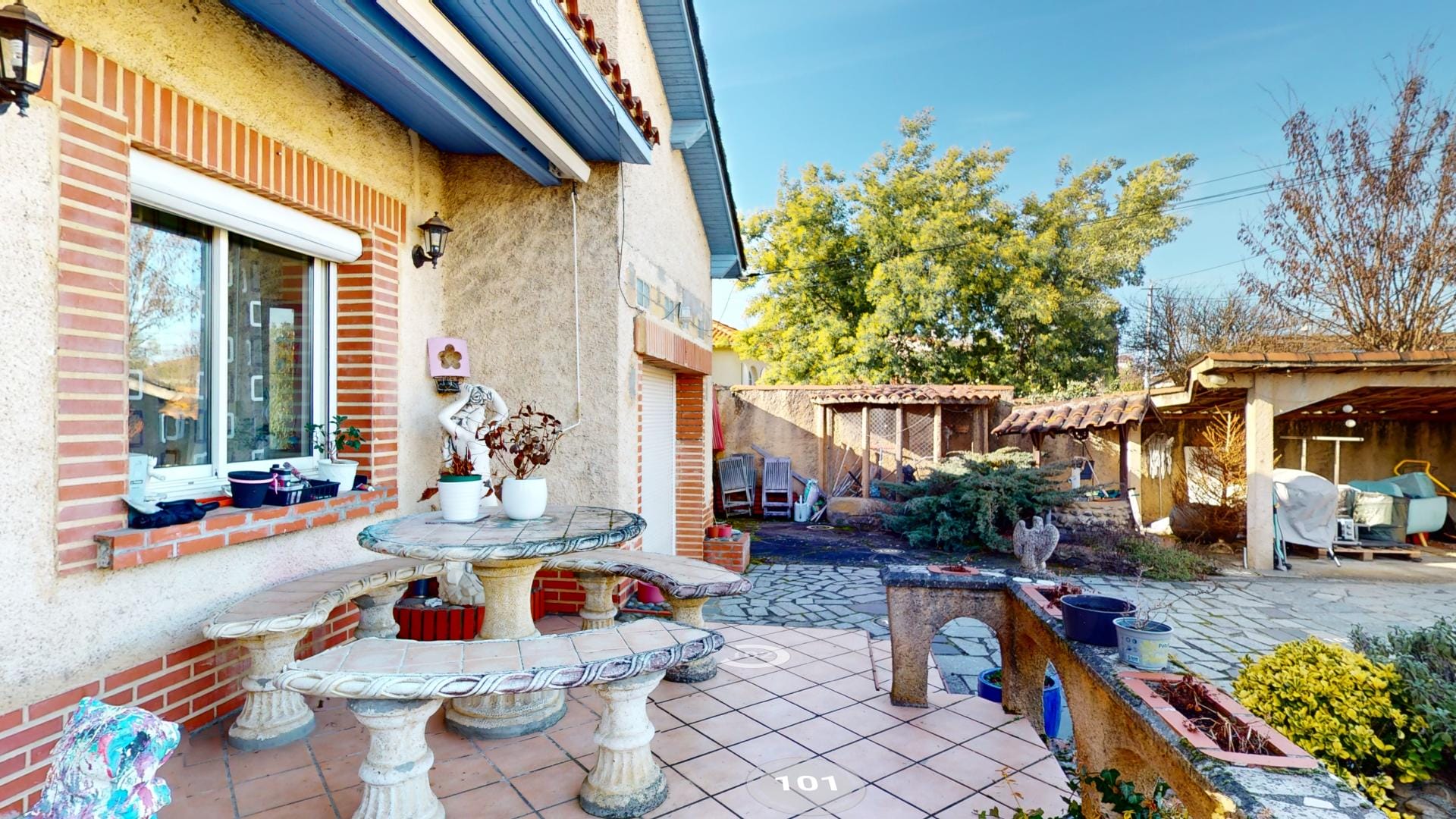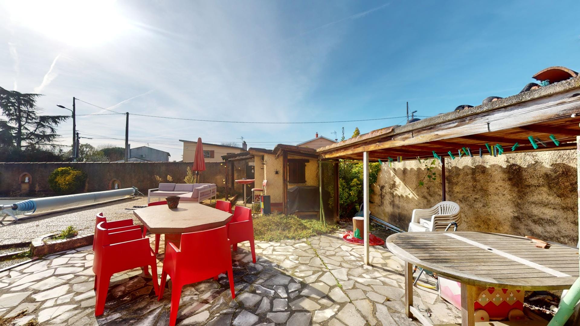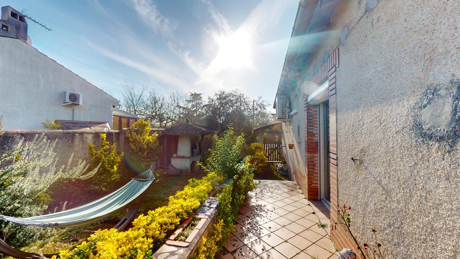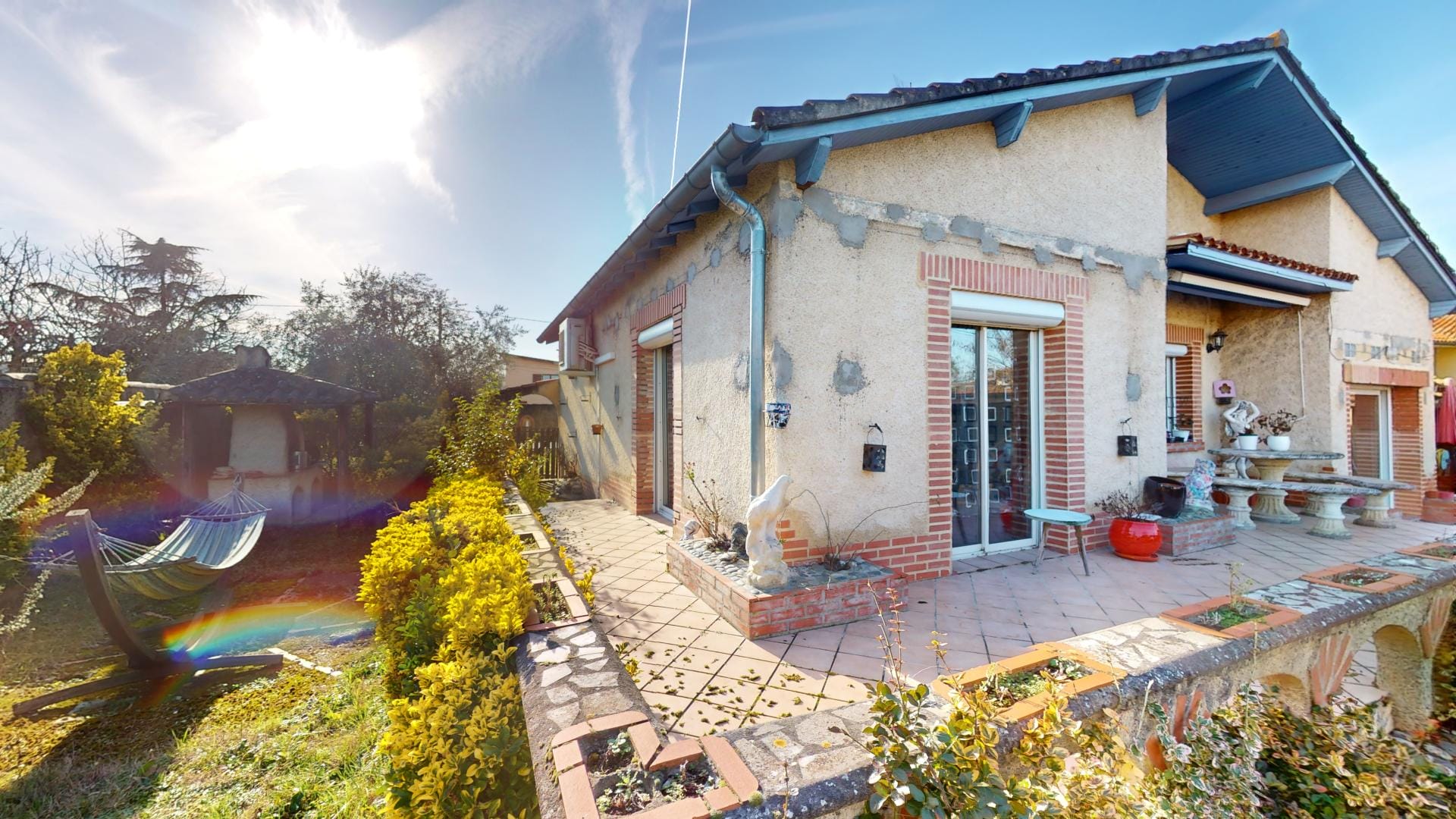 et d’un grand barbecue bâti en dur abrité, créant un cadre extérieur idéal pour la détente et les loisirs.