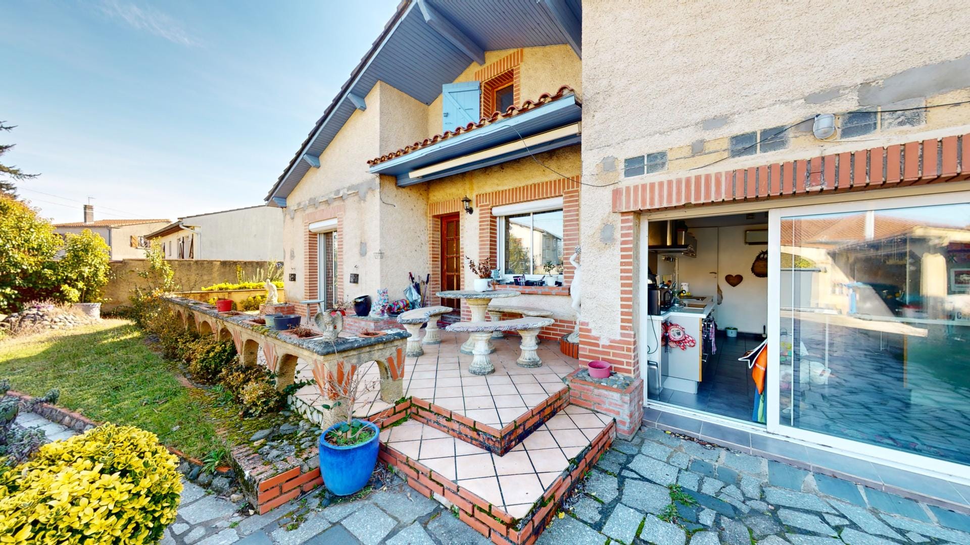 une grande terrasse sur l’avant et le côté,