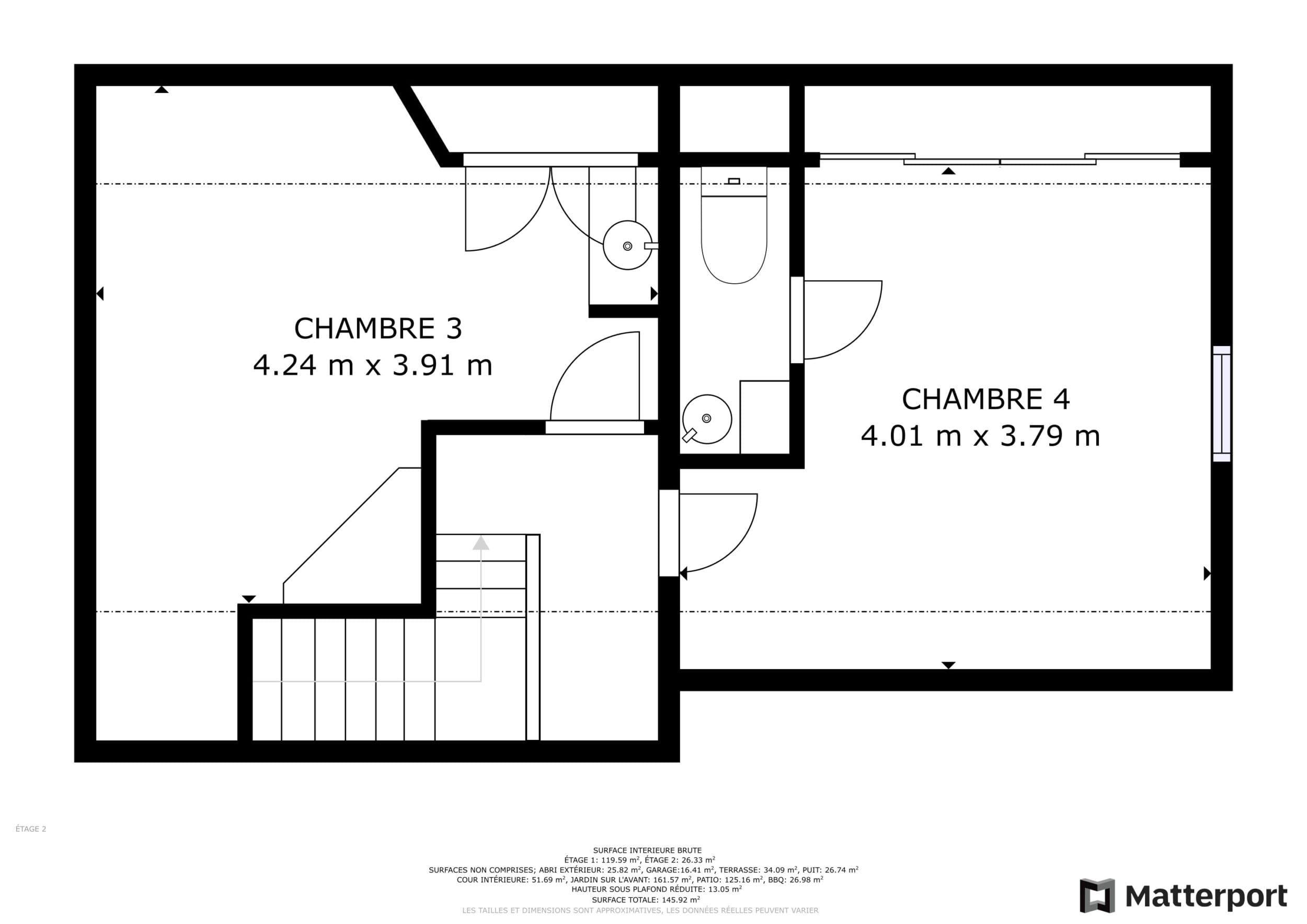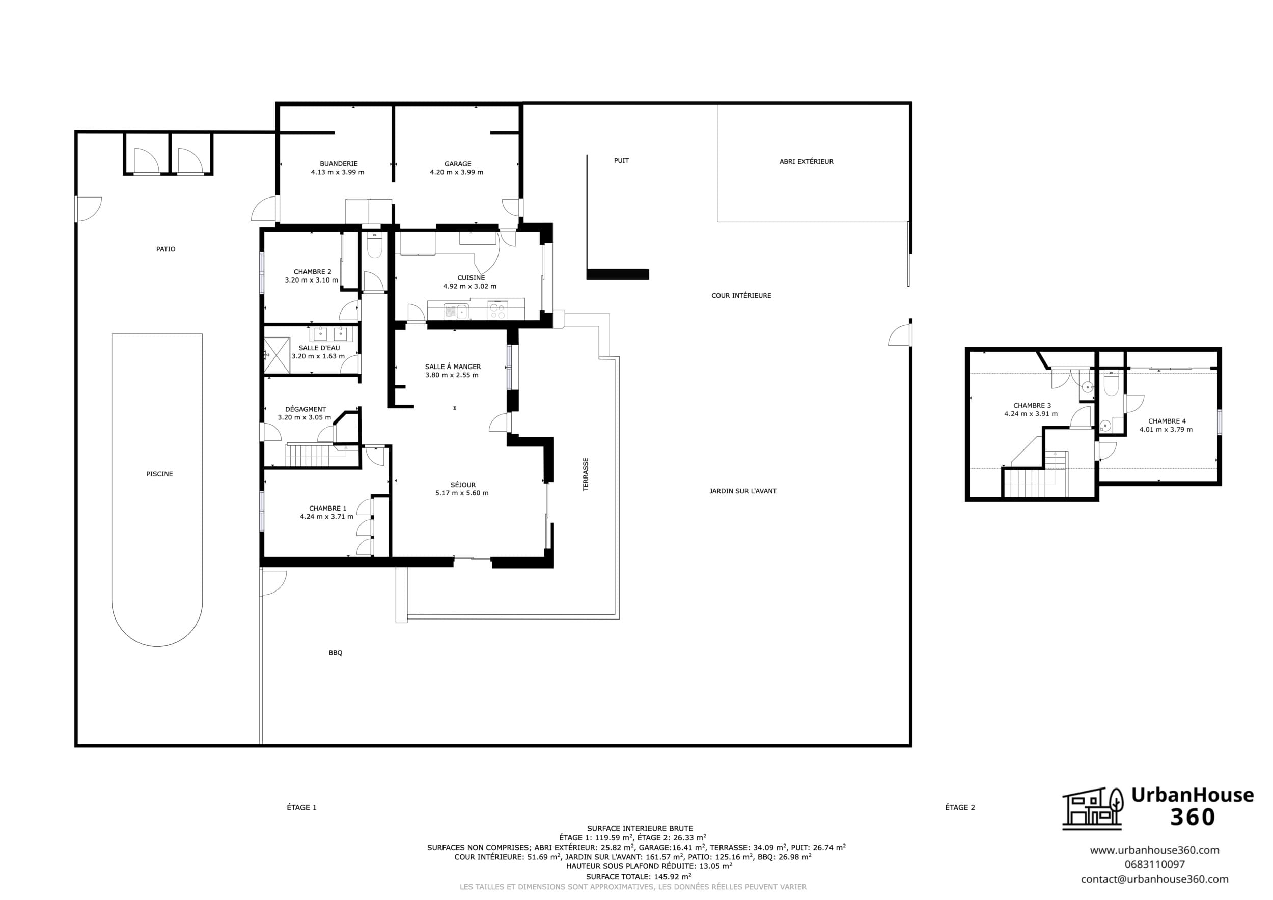 Le plan 2D des différents espaces de la propriété :