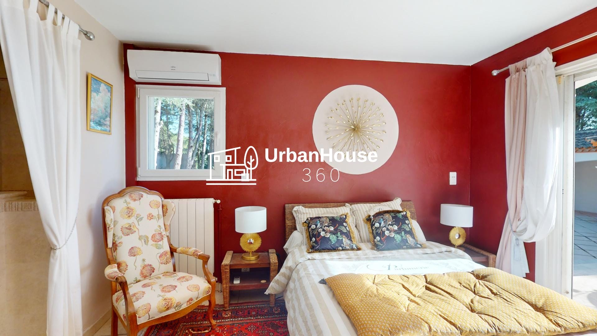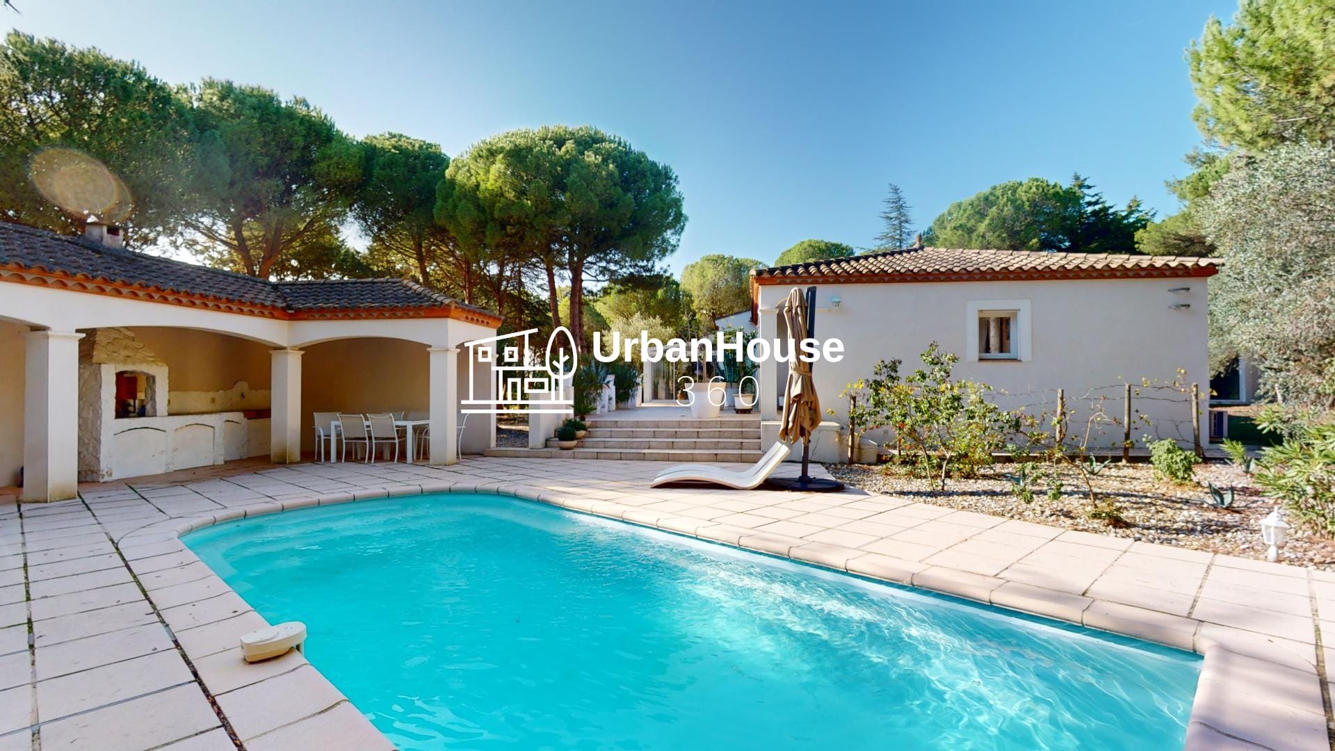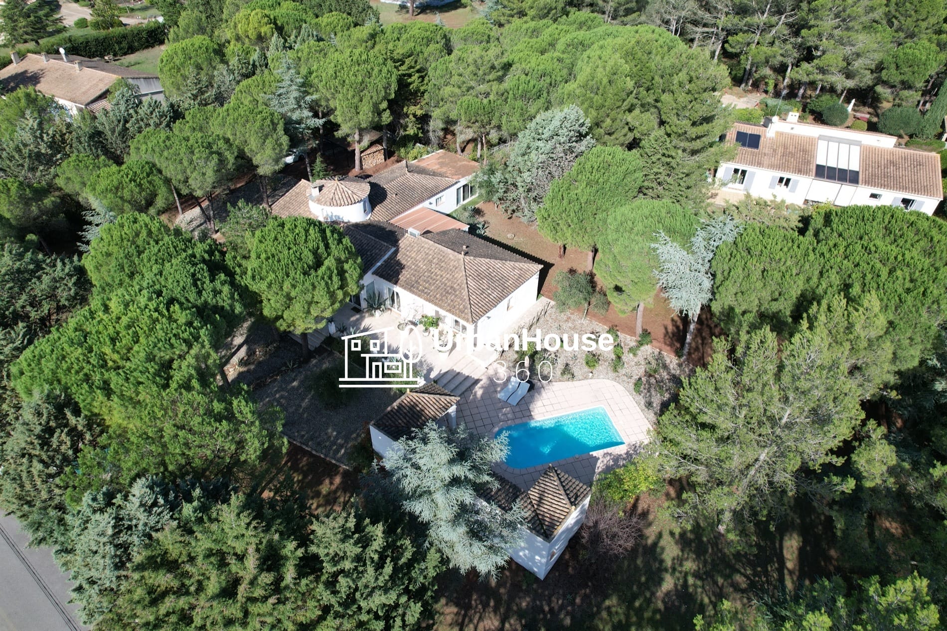 Villa de 243m2 avec pool-house et piscine au coeur d'une Pinède de chênes, pins maritimes, cèdres bleus et autres espèces méditerranéennes. Parcelle de 3687m2. Terrain arboré de pins maritimes constructible de 1000m2, accès indépendant possible direct sur la voirie.