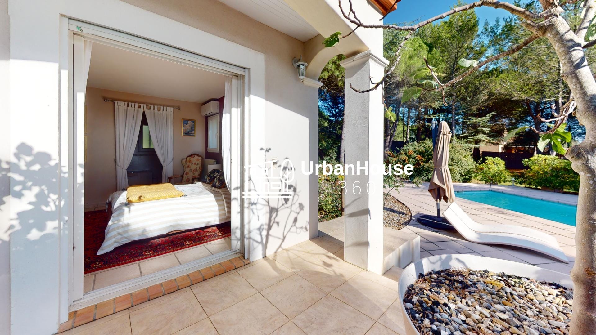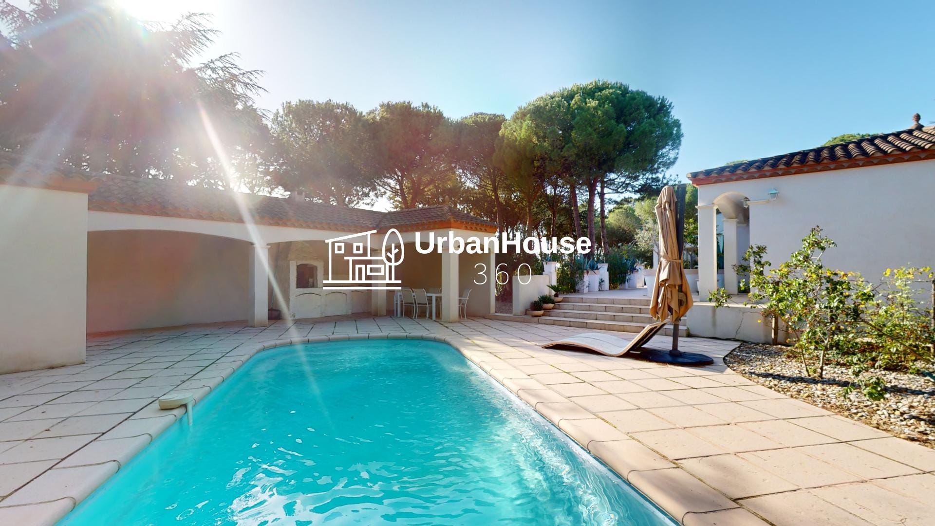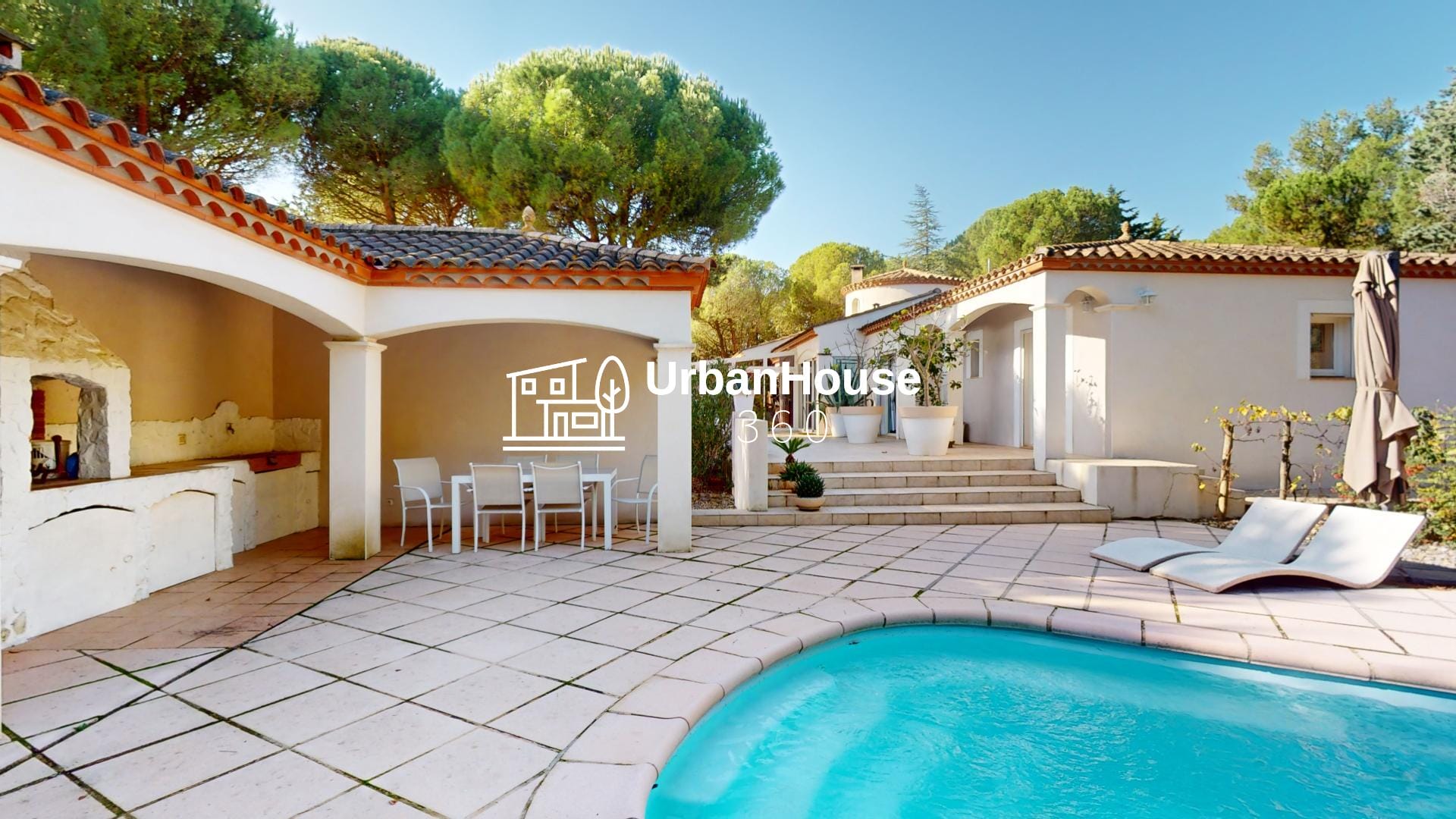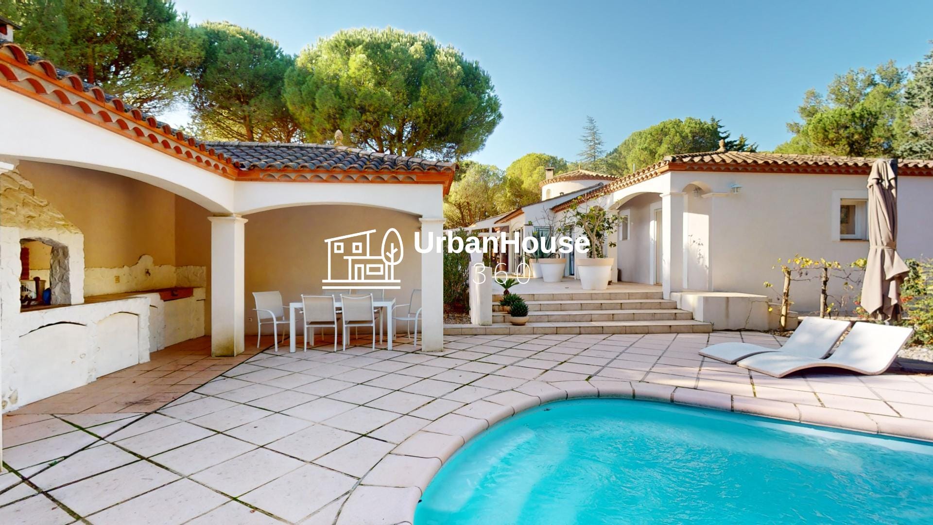 Villa de 243m2 avec pool-house et piscine au coeur d'une Pinède de chênes, pins maritimes, cèdres bleus et autres espèces méditerranéennes. Parcelle de 3687m2. Terrain arboré de pins maritimes constructible de 1000m2, accès indépendant possible direct sur la voirie.