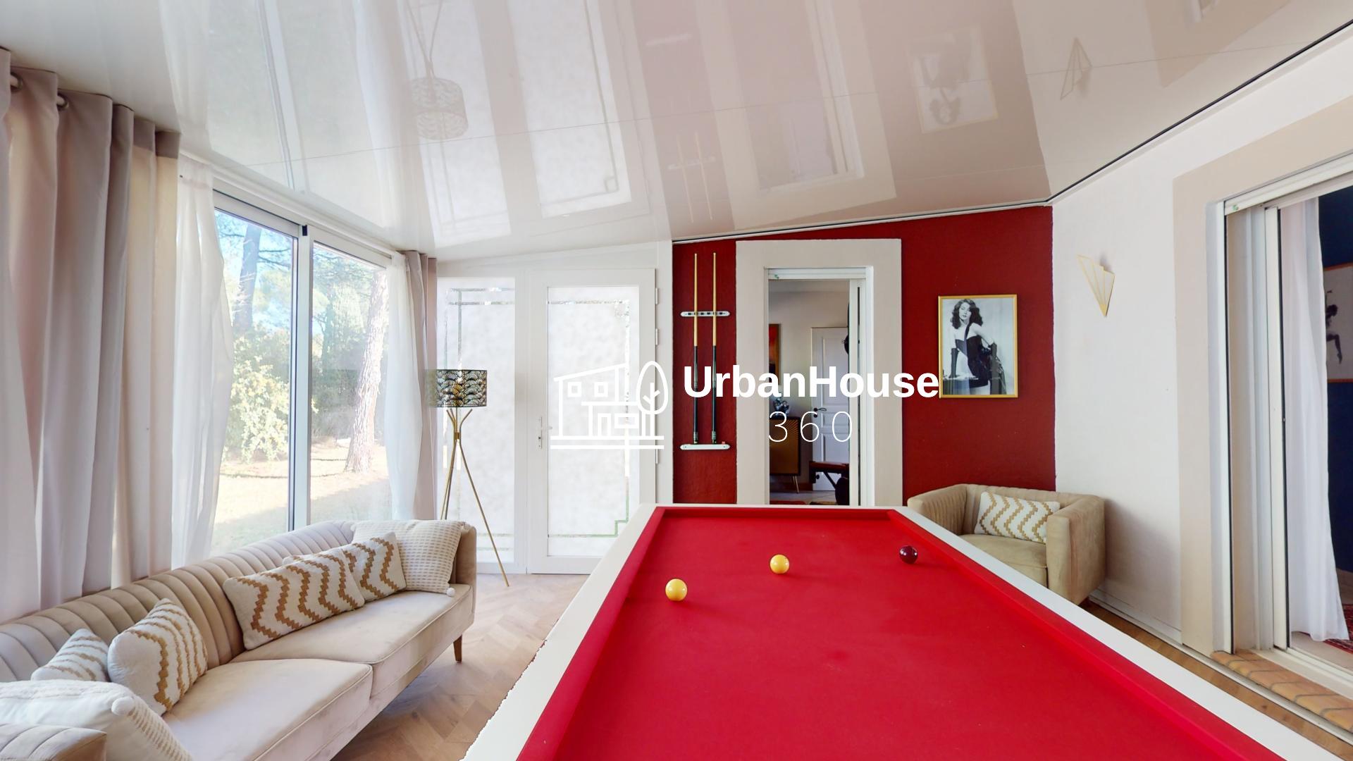 Avec ses espaces dédiés aux loisirs, tels que la véranda, la salle de cinéma, le patio avec billard et le pool-house, cette villa est un havre de paix pensé pour la vie familiale et la réception d’hôtes.