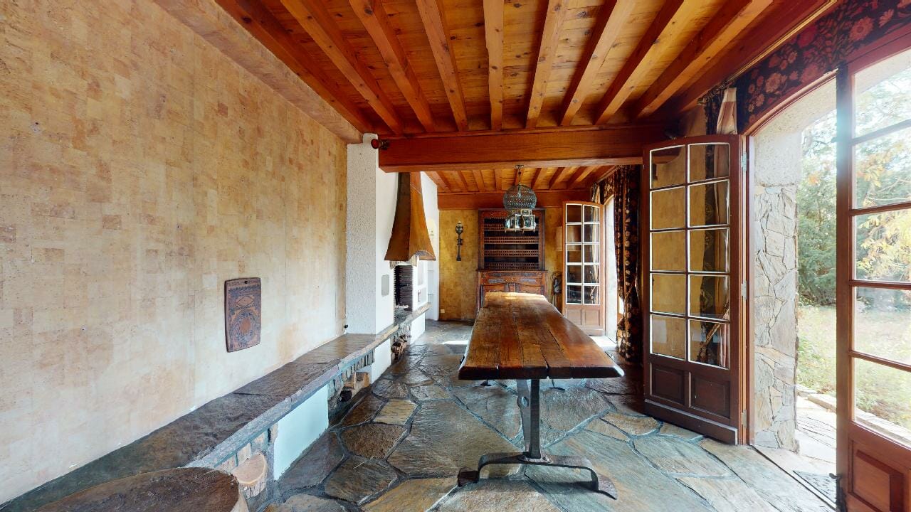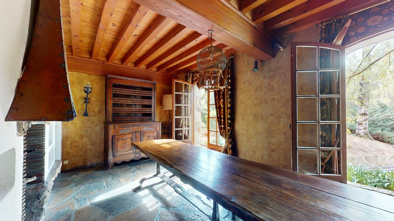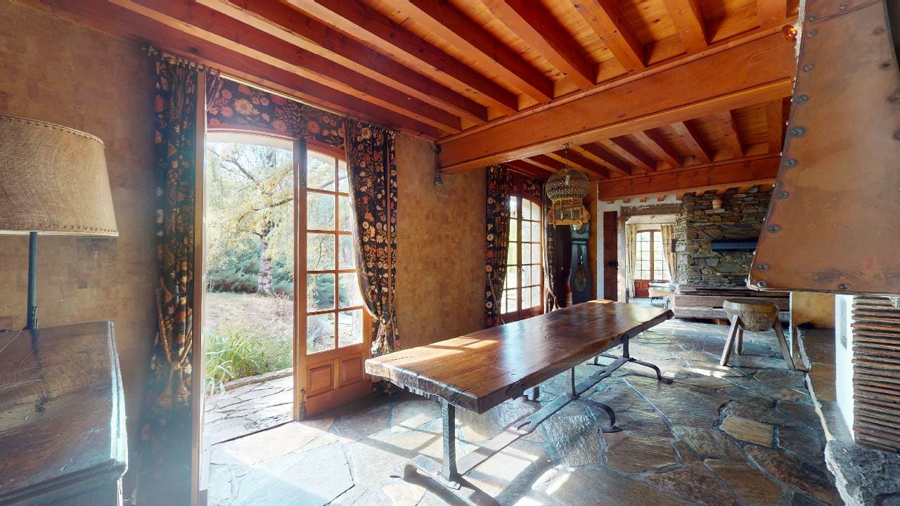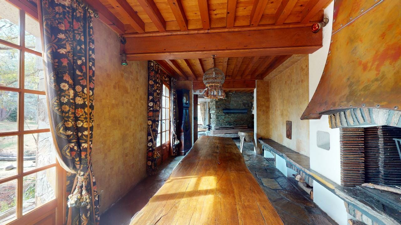 La pièce est dominée par une grande table en bois massif, majestueuse dans ses dimensions avec ses 3,5 mètres de long. Parfaite pour accueillir de grands repas de famille, elle invite à la convivialité et aux partages mémorables.