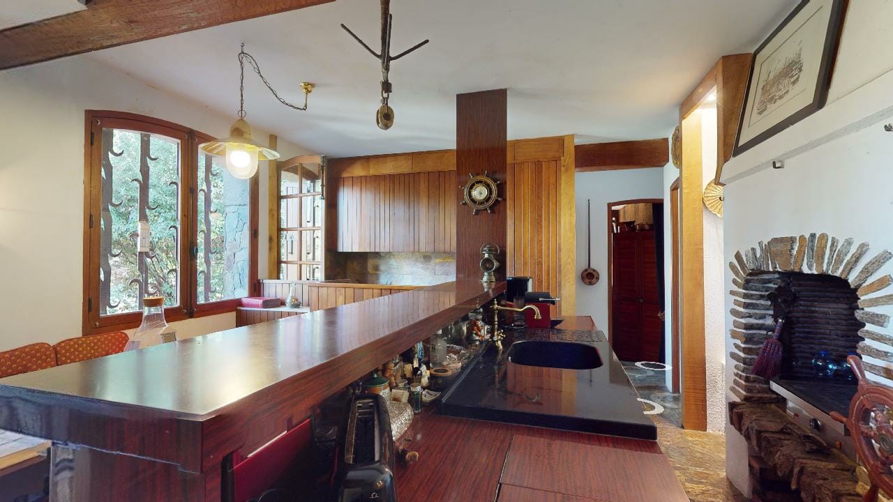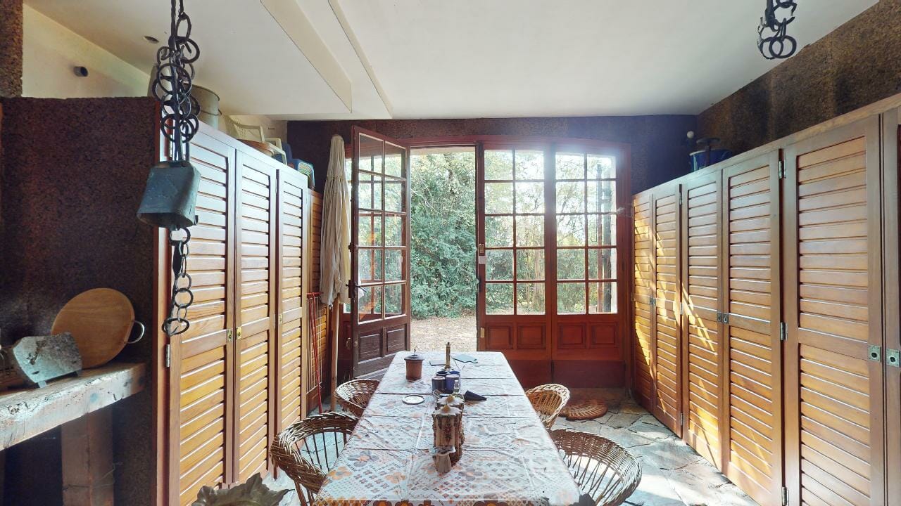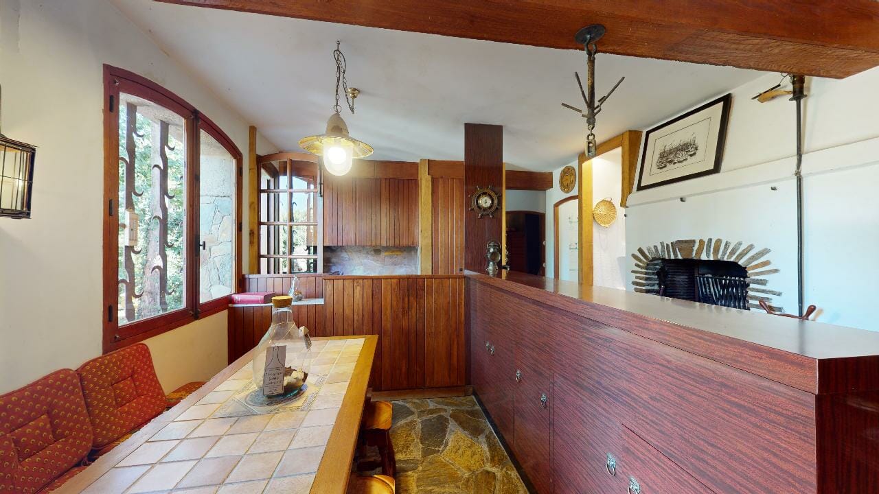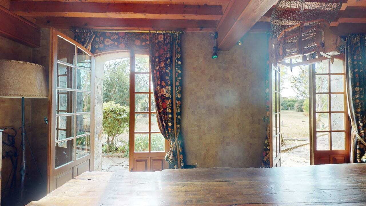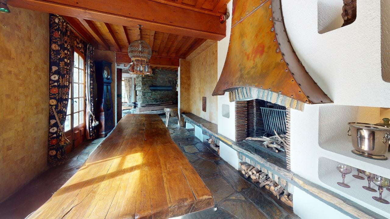La pièce est dominée par une grande table en bois massif, majestueuse dans ses dimensions avec ses 3,5 mètres de long. Parfaite pour accueillir de grands repas de famille, elle invite à la convivialité et aux partages mémorables.
