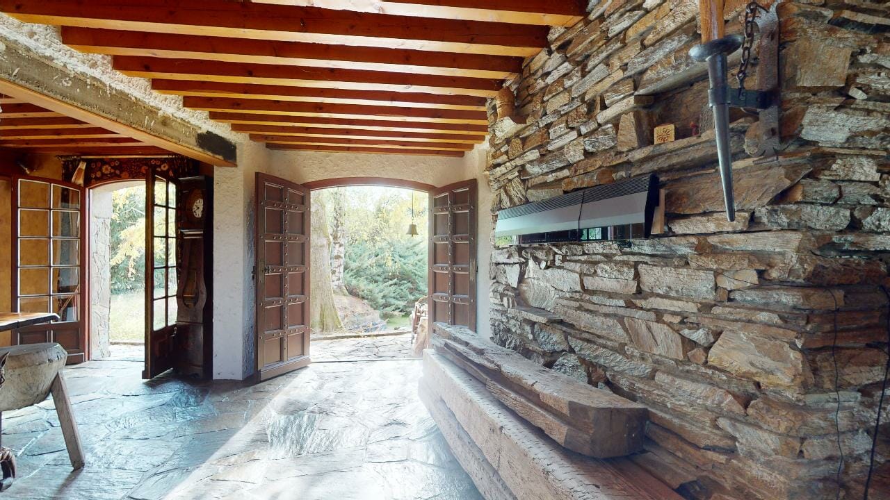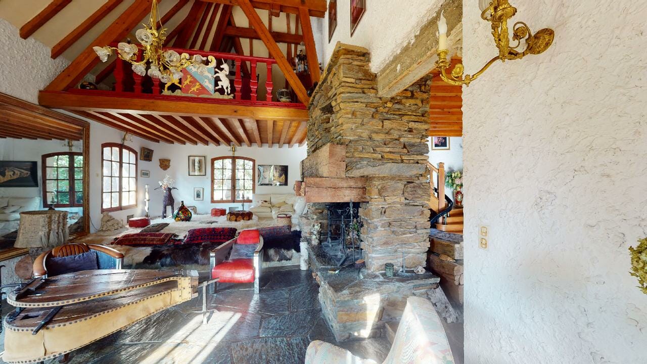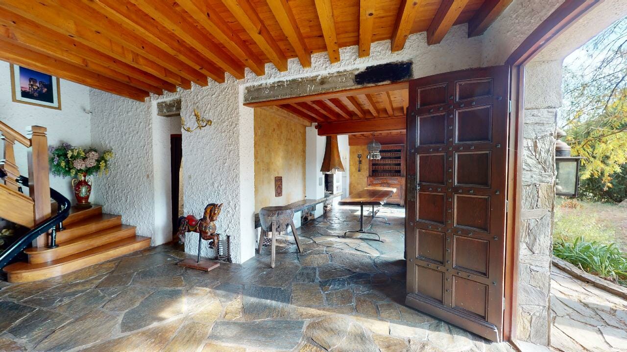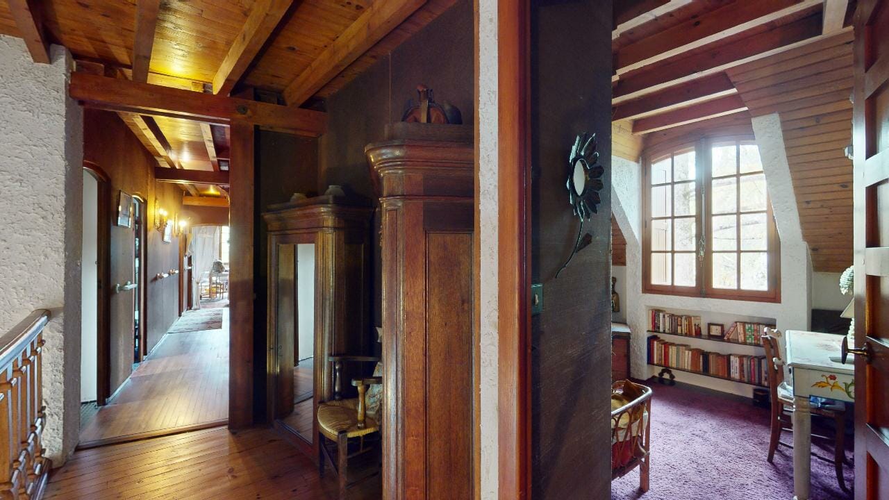 L’intérieur de la maison est tout aussi impressionnant, avec une variété d’espaces de vie et des détails architecturaux remarquables comme la grande entrée avec les murs, sol en pierre naturelle et un escalier en chêne massif menant à l’étage supérieur où se trouvent les chambres.