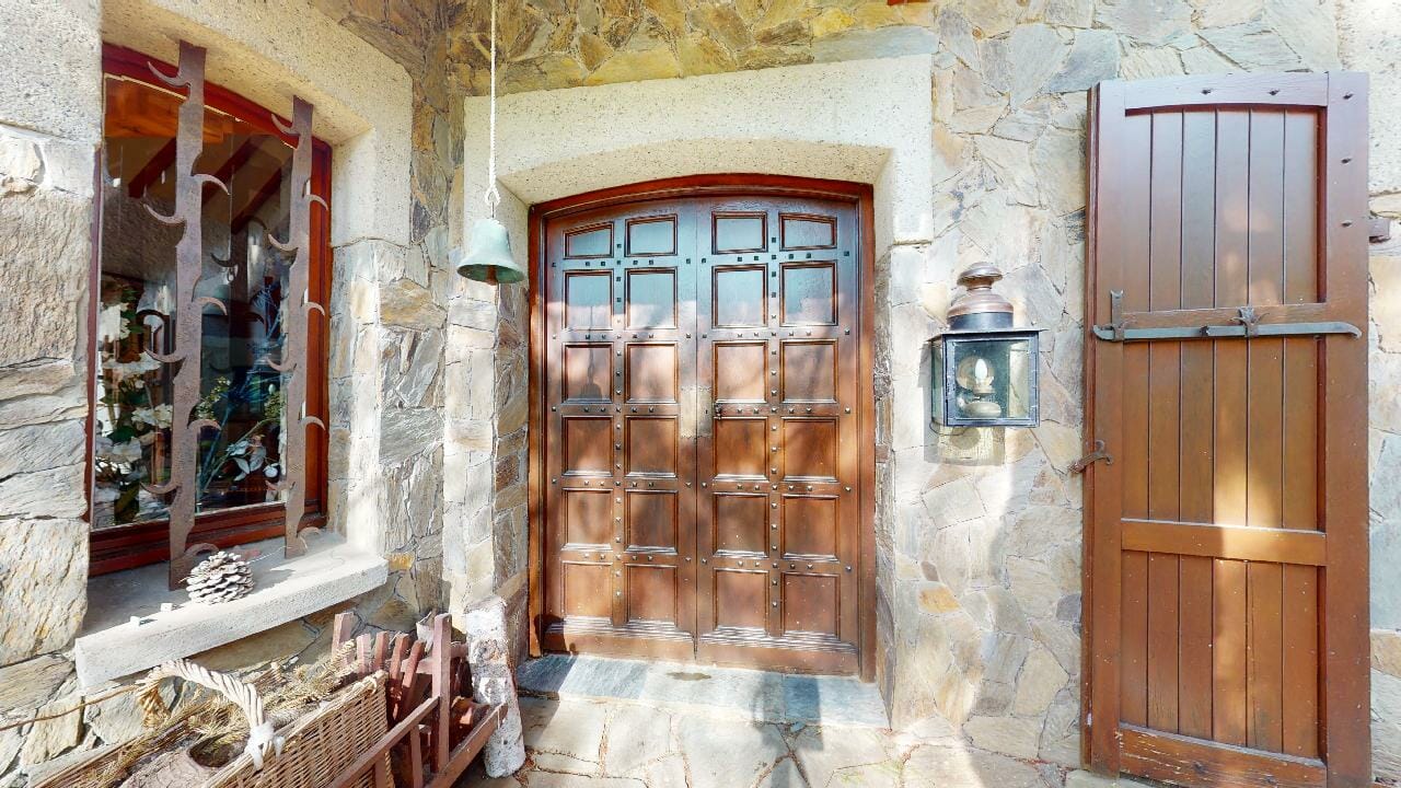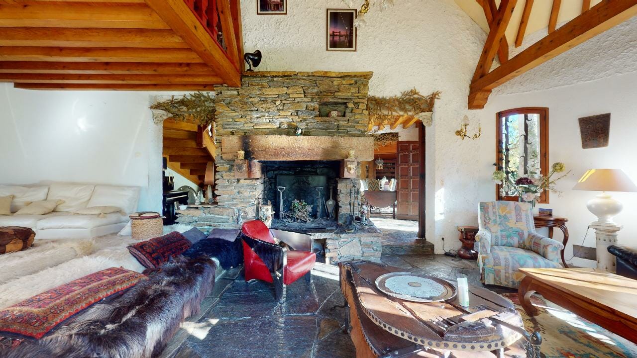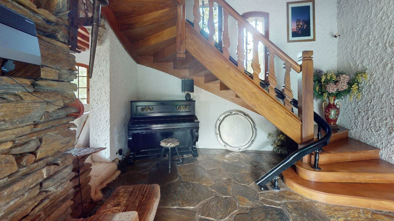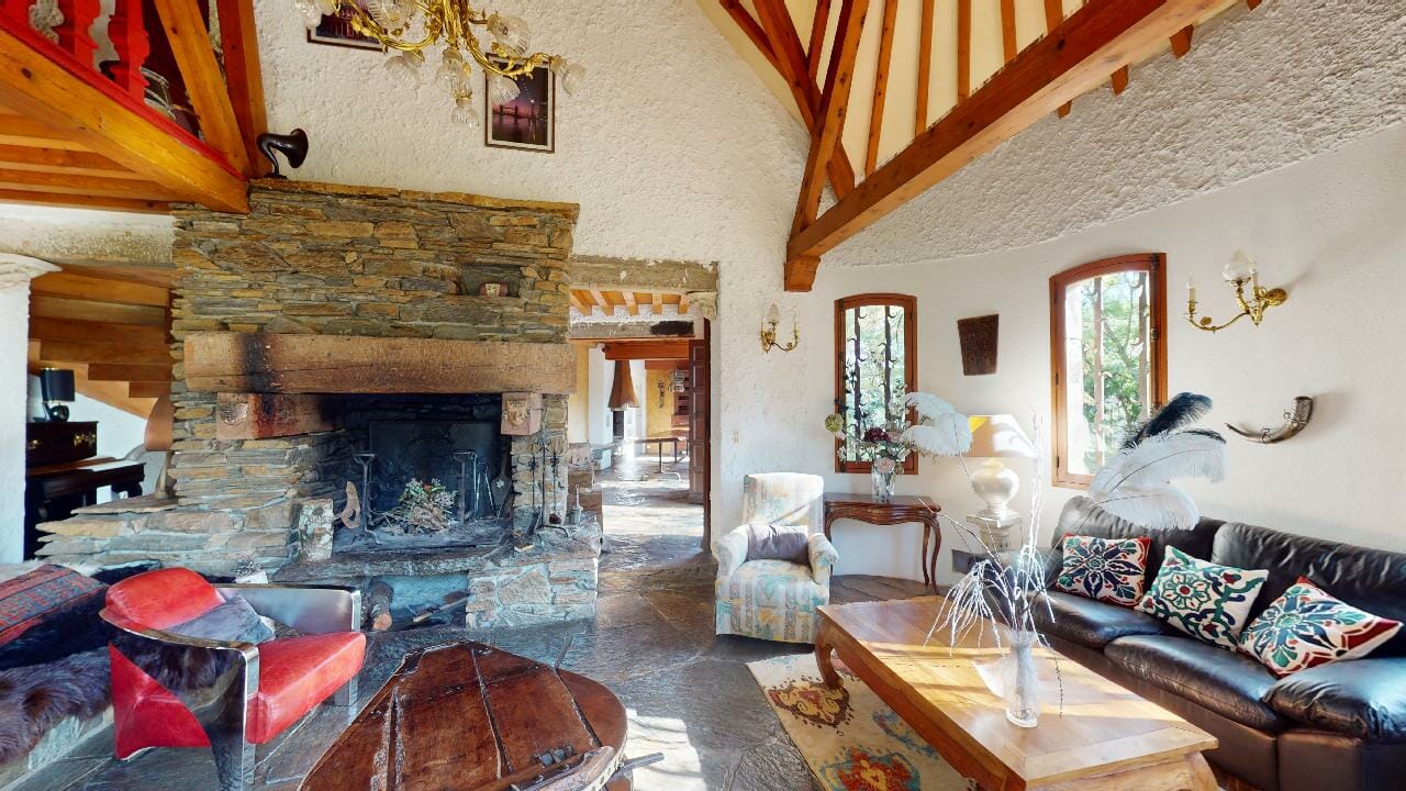 L’intérieur de la maison est tout aussi impressionnant, avec une variété d’espaces de vie et des détails architecturaux remarquables comme la grande entrée avec les murs, sol en pierre naturelle et un escalier en chêne massif menant à l’étage supérieur où se trouvent les chambres.