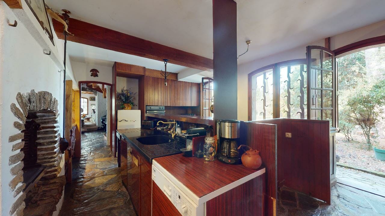 Chaque détail de la maison, depuis l’entrée principale en chêne massif jusqu’aux sols en pierre d’Ariège cirée, révèle une attention particulière portée à la qualité et à l’esthétique.