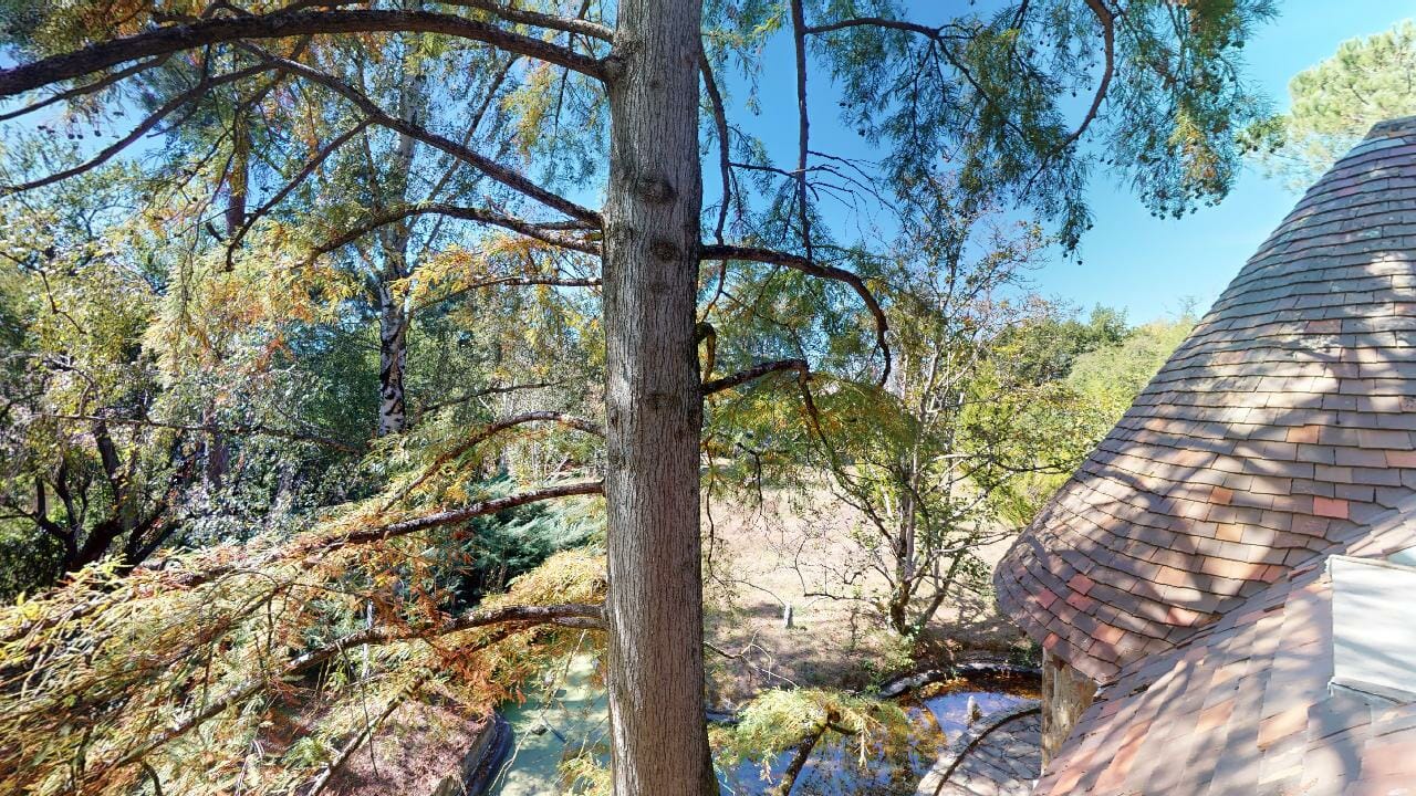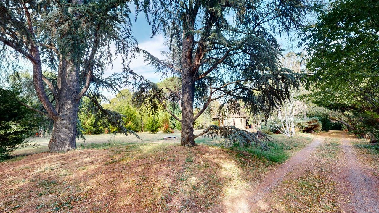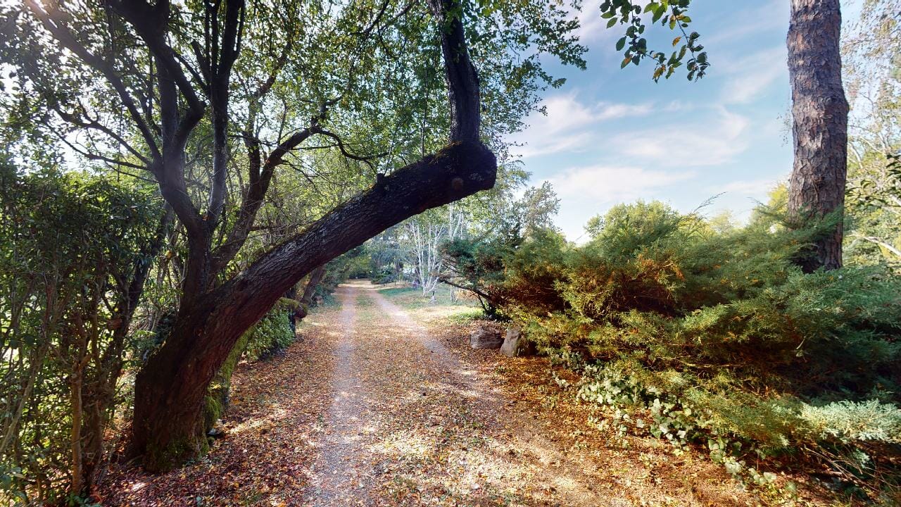 L’accès au domaine se fait par un chemin sinueux, une véritable invitation à la découverte, où chaque avancée offre un nouveau panorama, une nouvelle perspective sur une nature foisonnante. Des arbres majestueux, à la fois puissants et protecteurs, bordent cette allée en formant une voûte naturelle, leurs branches entrelacées créant un tunnel verdoyant.