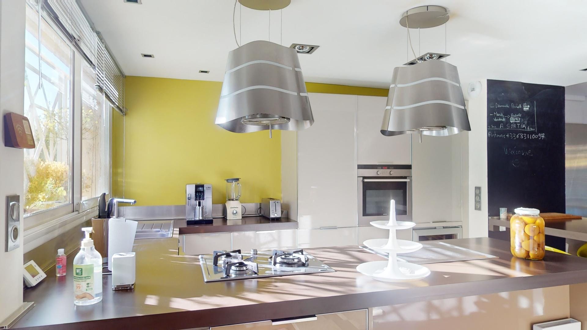 Point central des l’espace vie, dans la continuité du plan de travail de la cuisine, cet espace est le coeur de la maison.