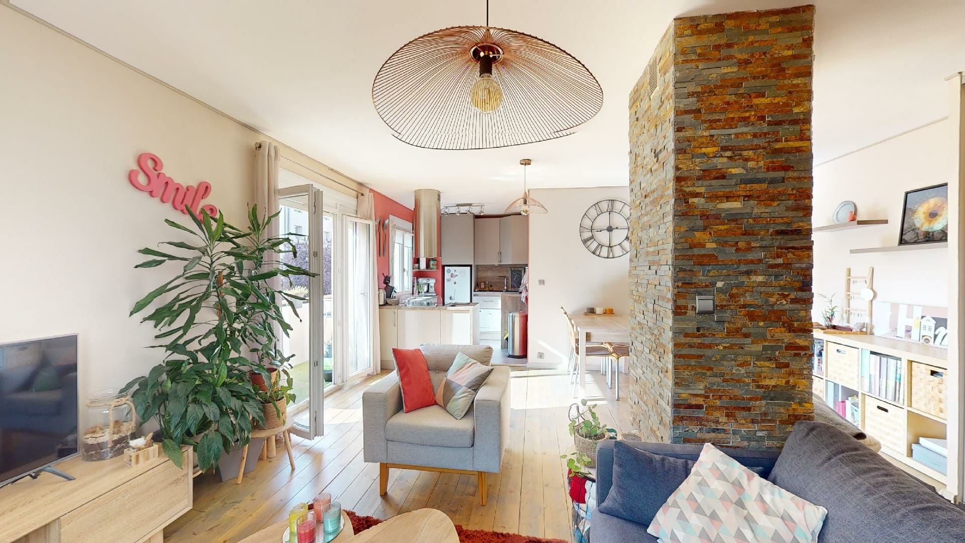 Dès l’entrée, votre regard est capté par le mur en pierre naturelle, qui ajoute une touche d’authenticité à ce lieu de vie.