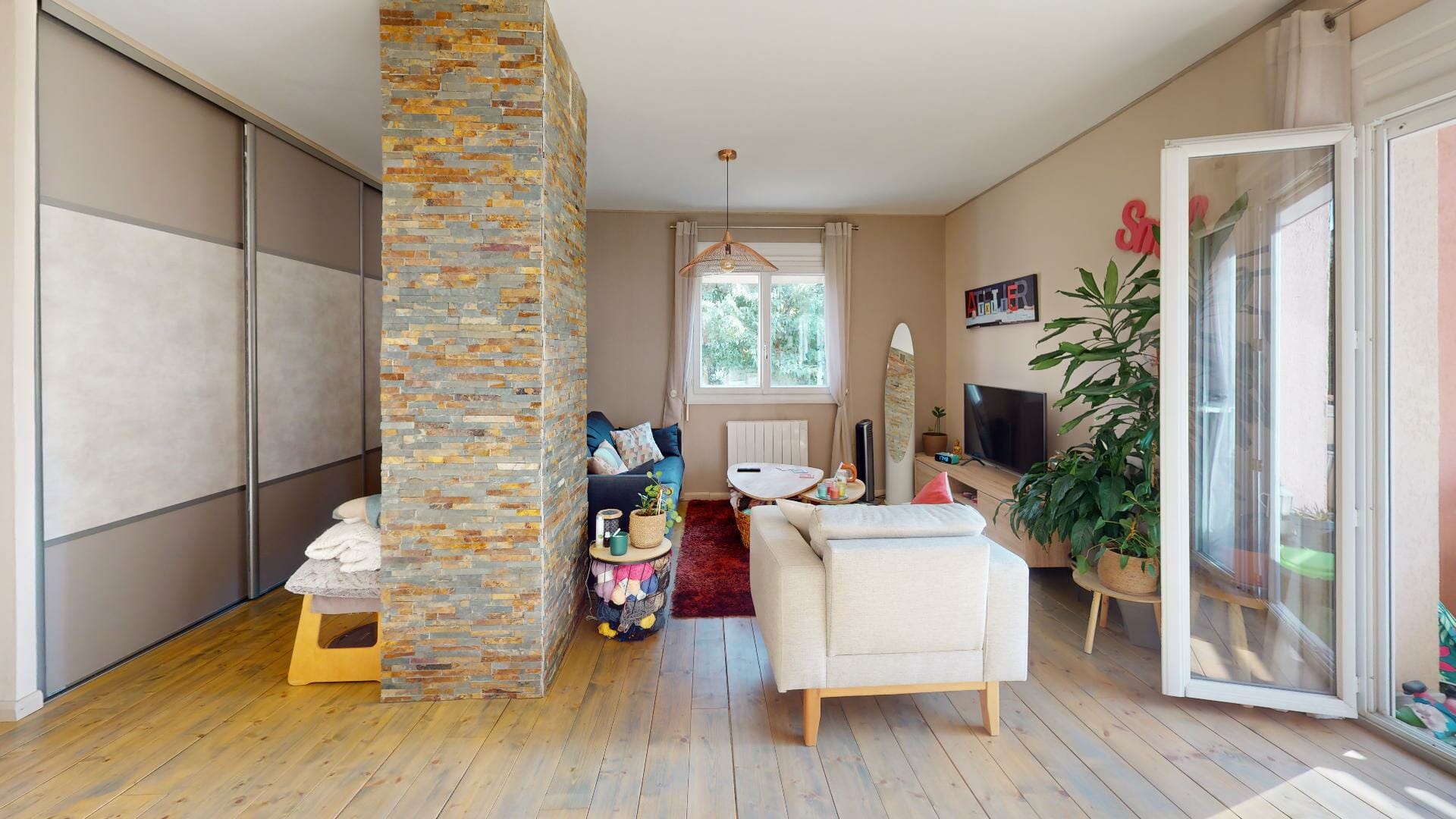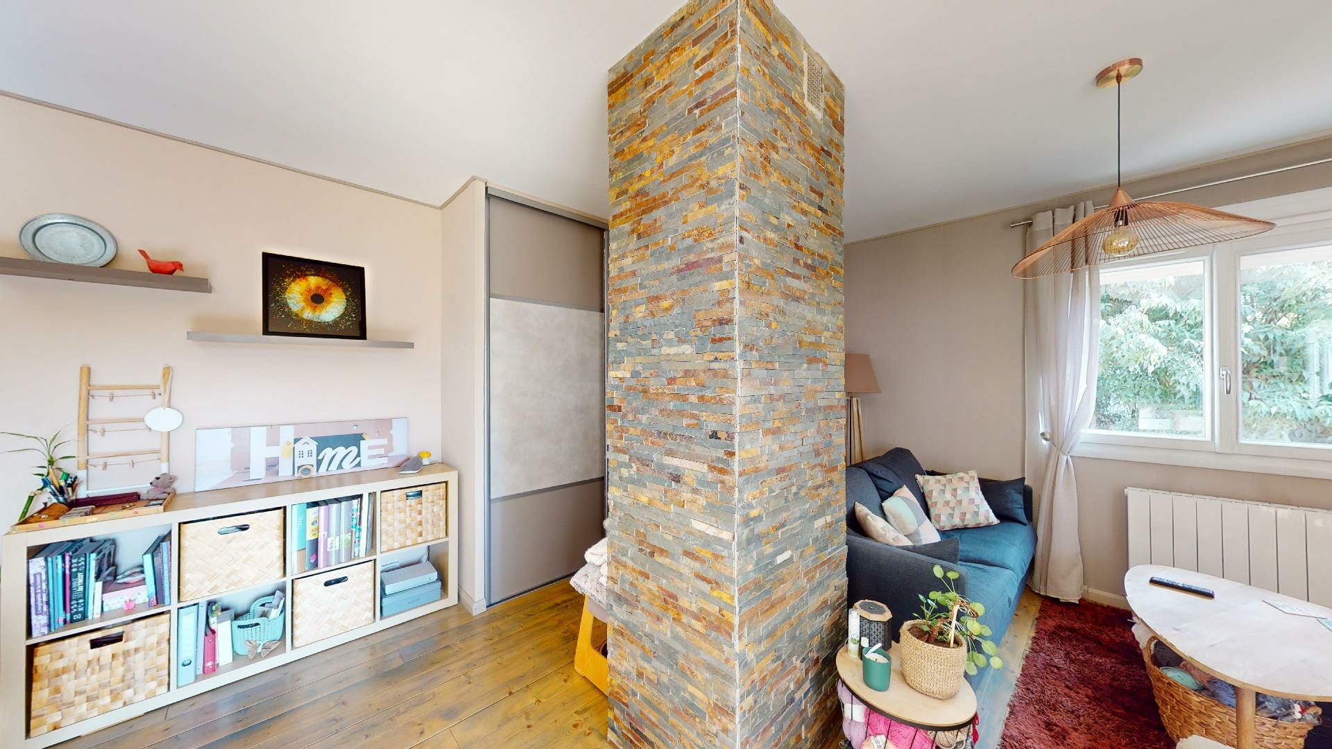 Depuis le séjour, profitez d’une vue dégagée sur un paisible espace arboré, véritable invitation à la détente et à la rêverie.