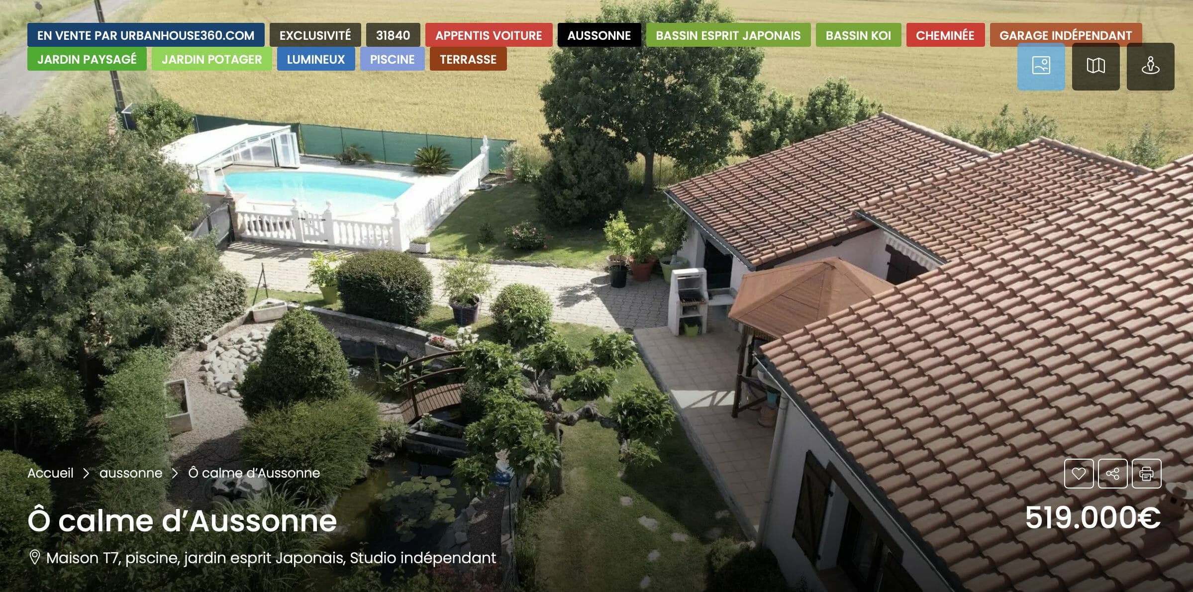 La maison en vente se trouve dans une petite zone urbanisée d’Aussonne, à la limite de Seilh et son célèbre Golf Toulouse-Seilh international, au calme, détachée de la zone urbaine tout en restant proche d’accès, à la pointe de terres agricoles en exploitation ou d’espaces naturels, dans un triangle d’une dizaine de maisons, avec un horizon bien dégagé.