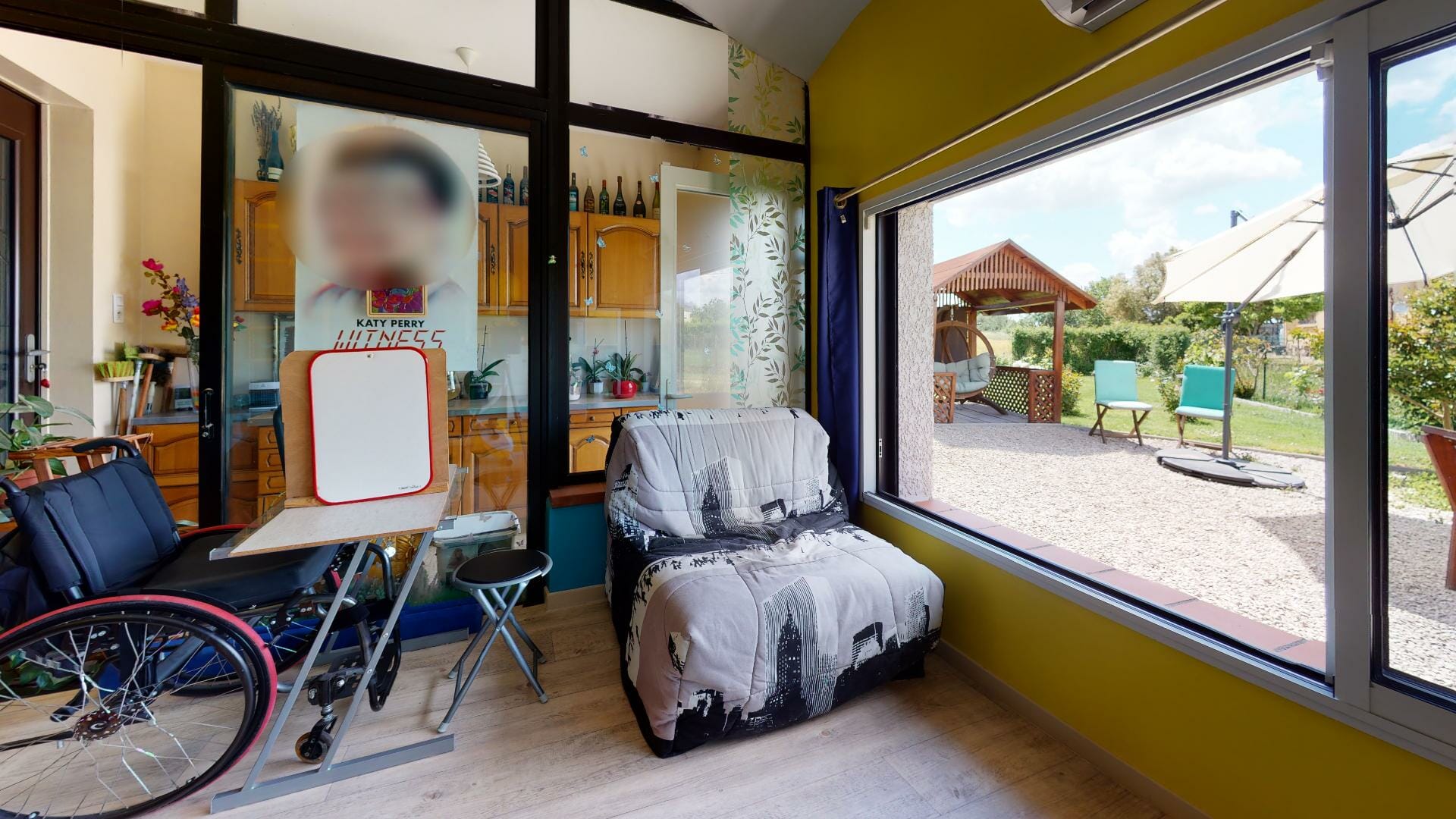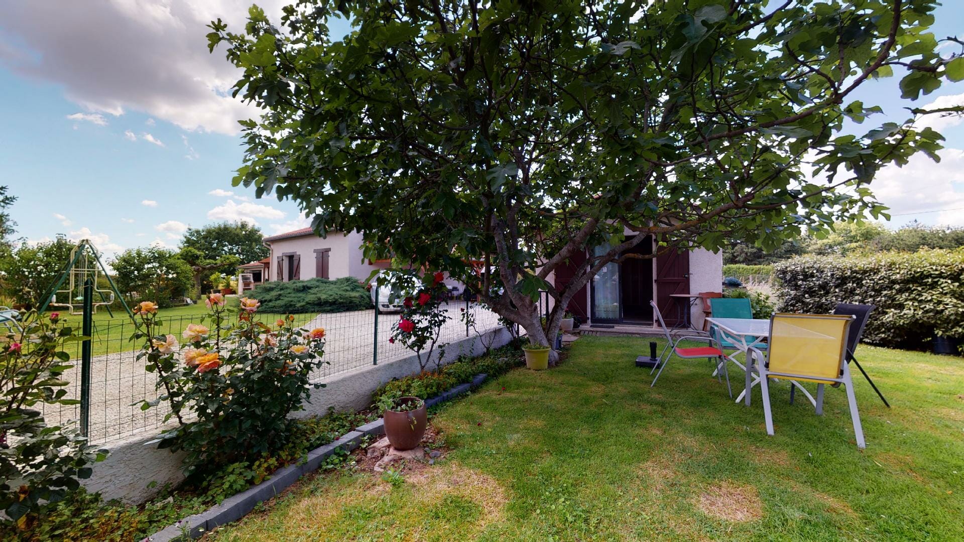 Accès par le second portail, un studio entièrement indépendant, avec parcelle de terrain grillagé, petit portail donnant sur une pelouse et espace potager.