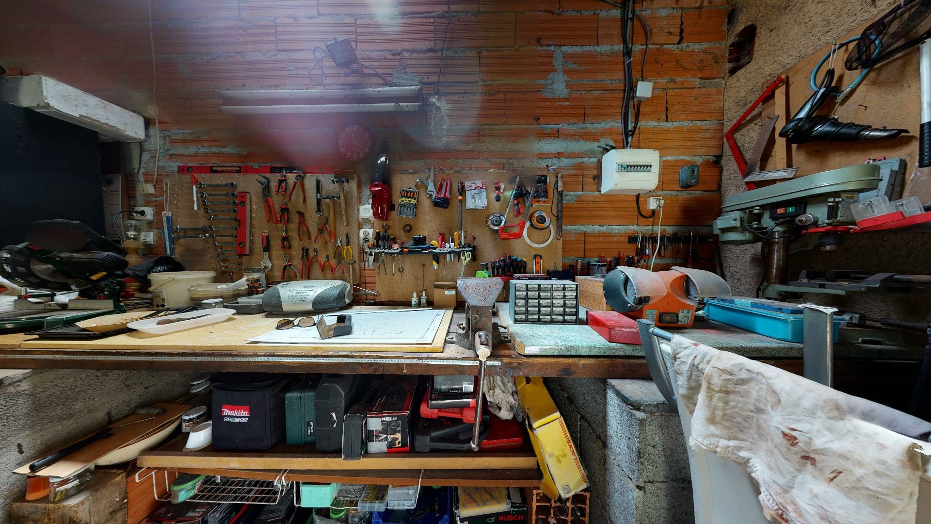 Un garage indépendant attenant à la maison de 40m2, avec une fosse à entretien de véhicule.