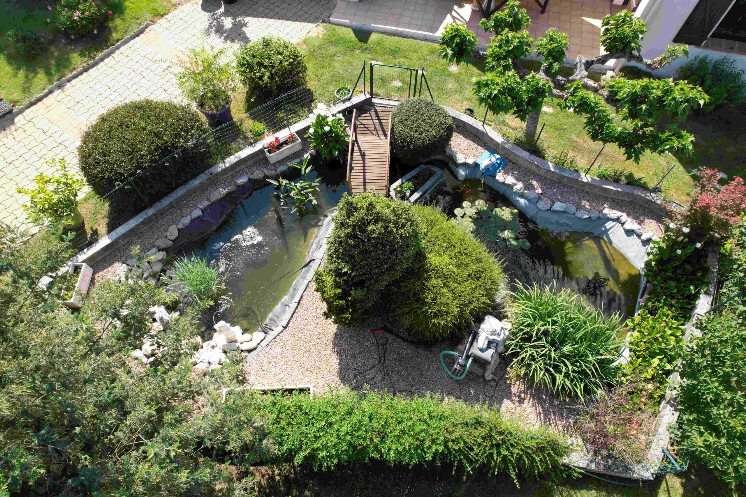 Un jardin bassin d’eau esprit japonais avec des carpes Koi, un système de filtration automatique, lampe UV de filtration continue.