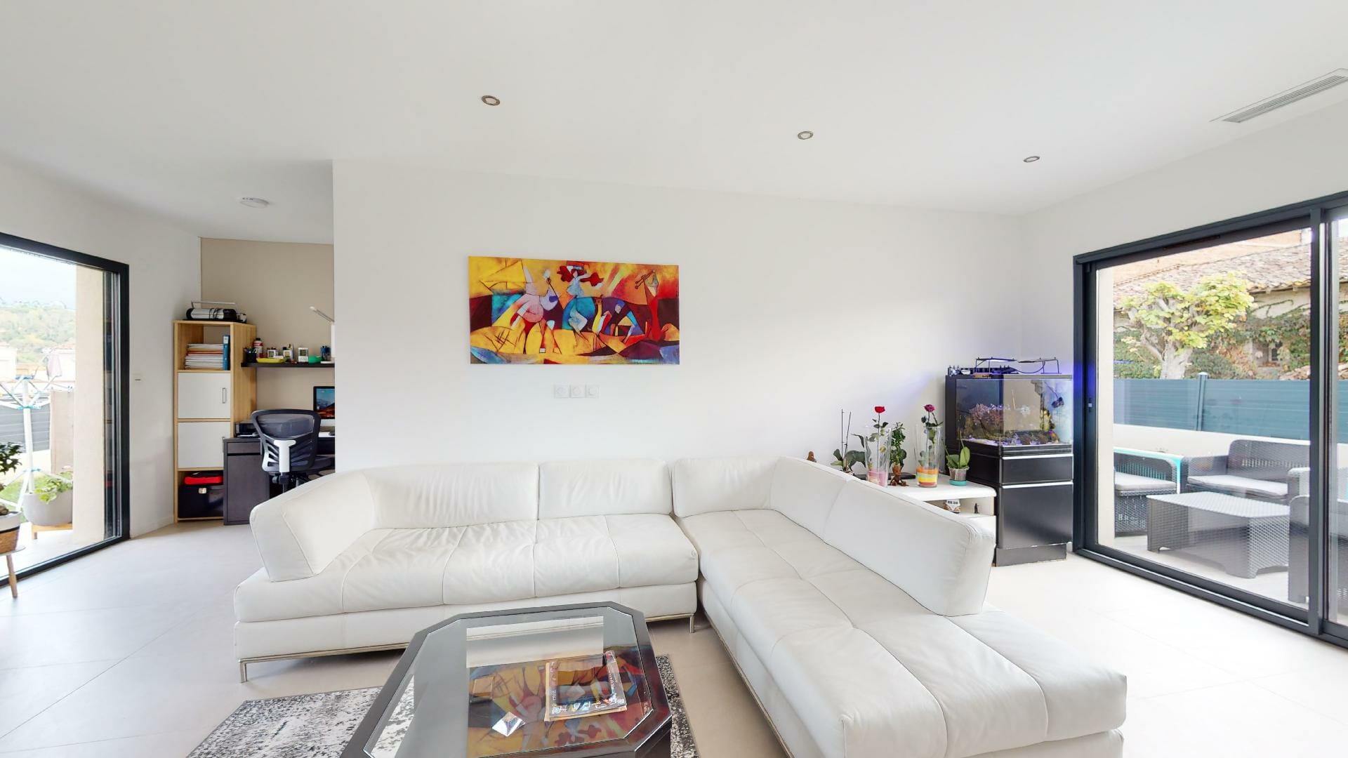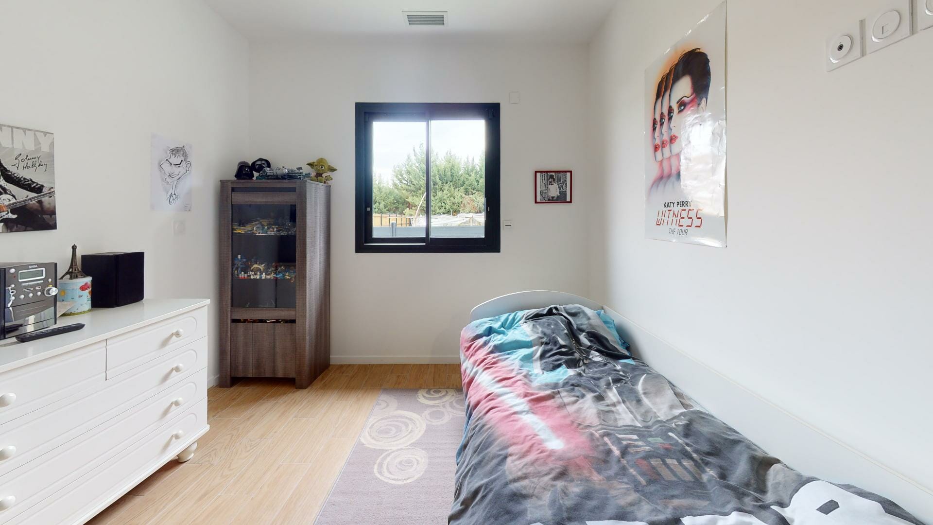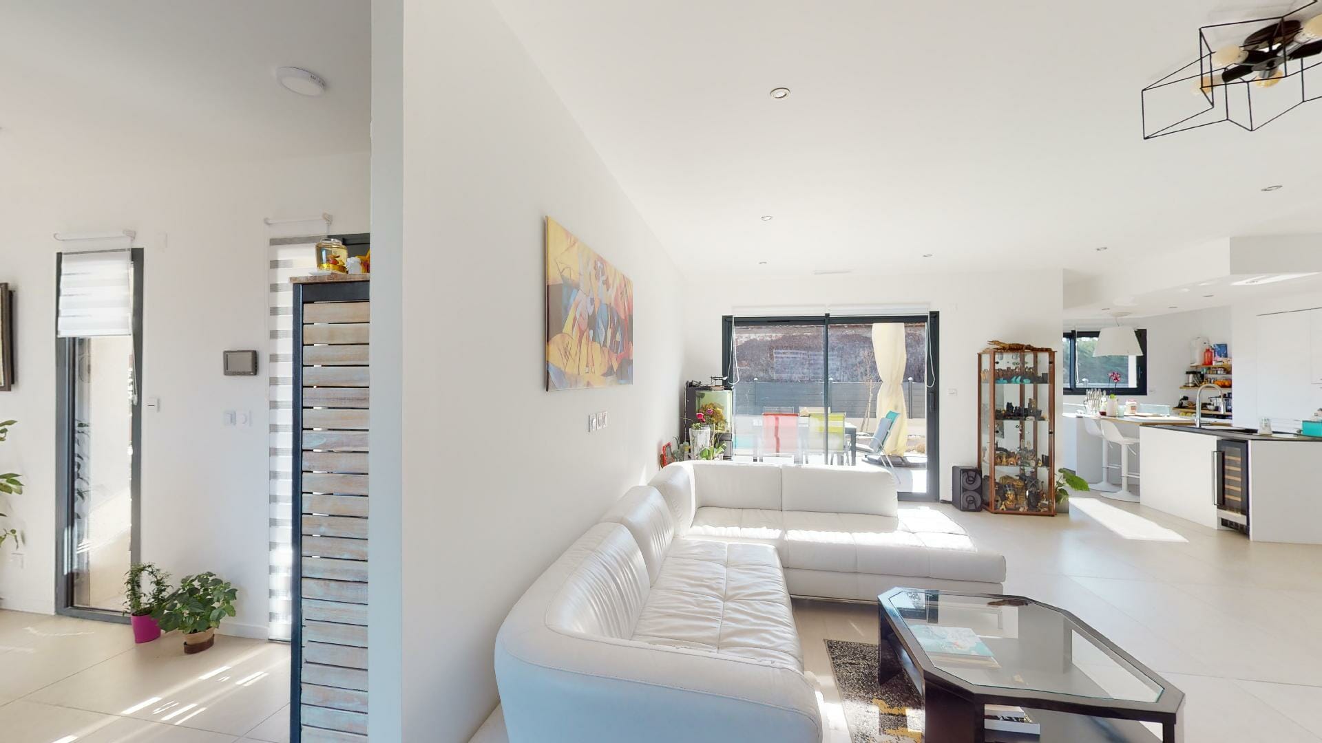 Villa neuve, très lumineuse avec de nombreuses ouvertures fenêtres, portes et baies vitrées.
