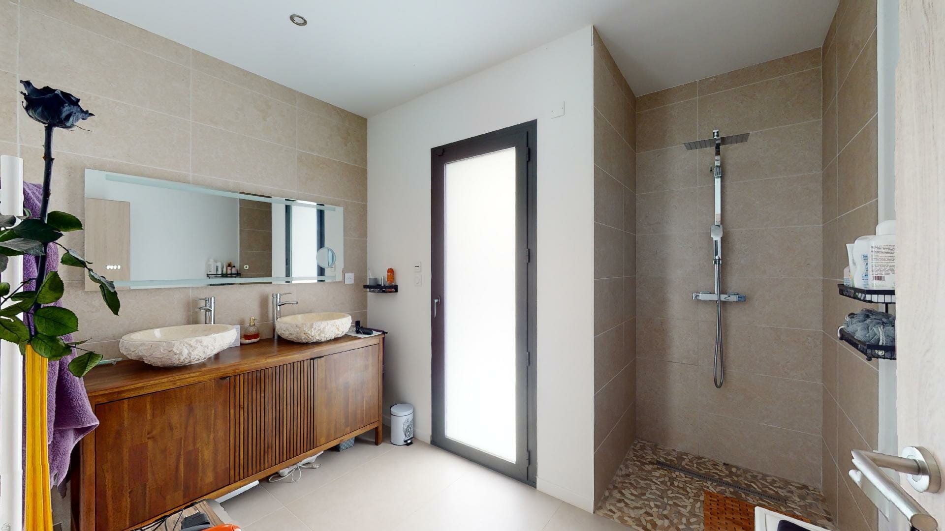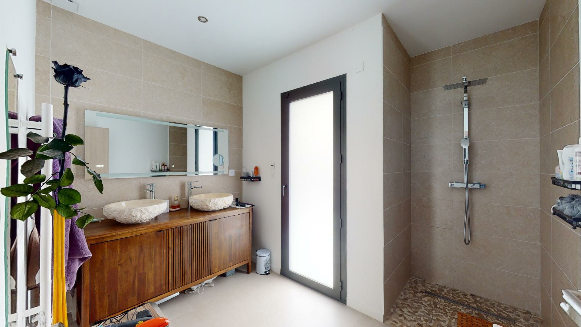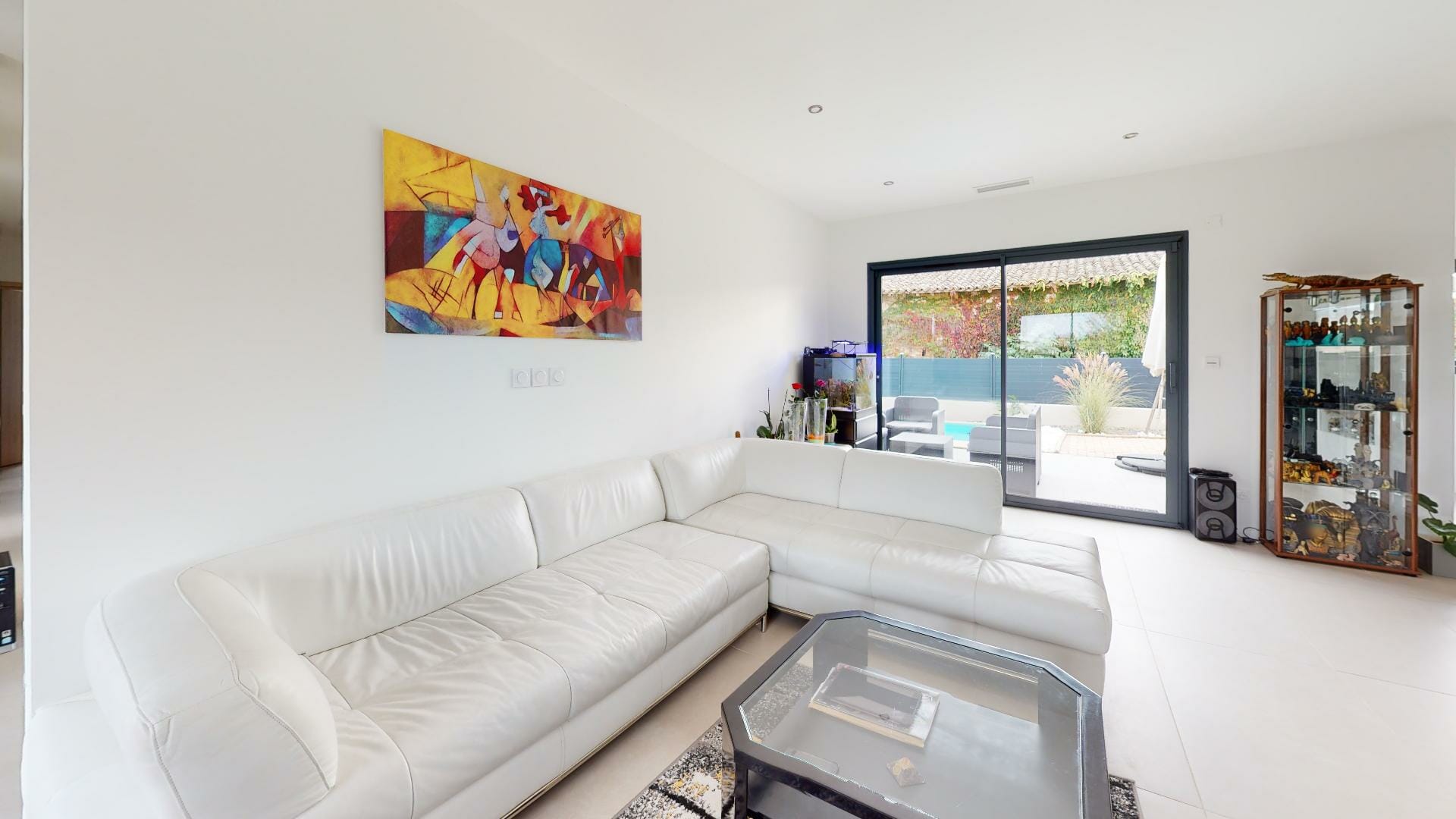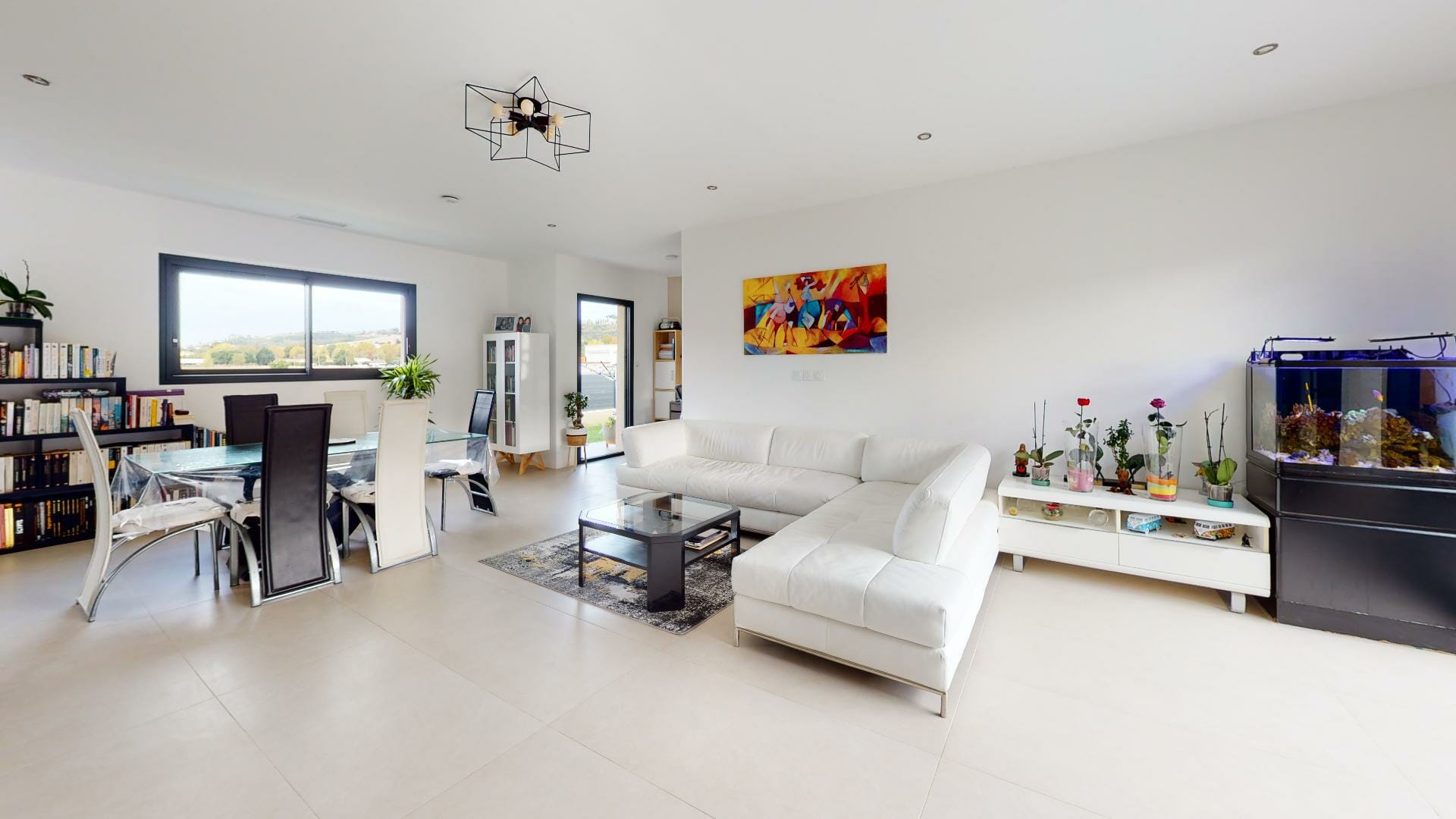 Villa neuve, très lumineuse avec de nombreuses ouvertures fenêtres, portes et baies vitrées.