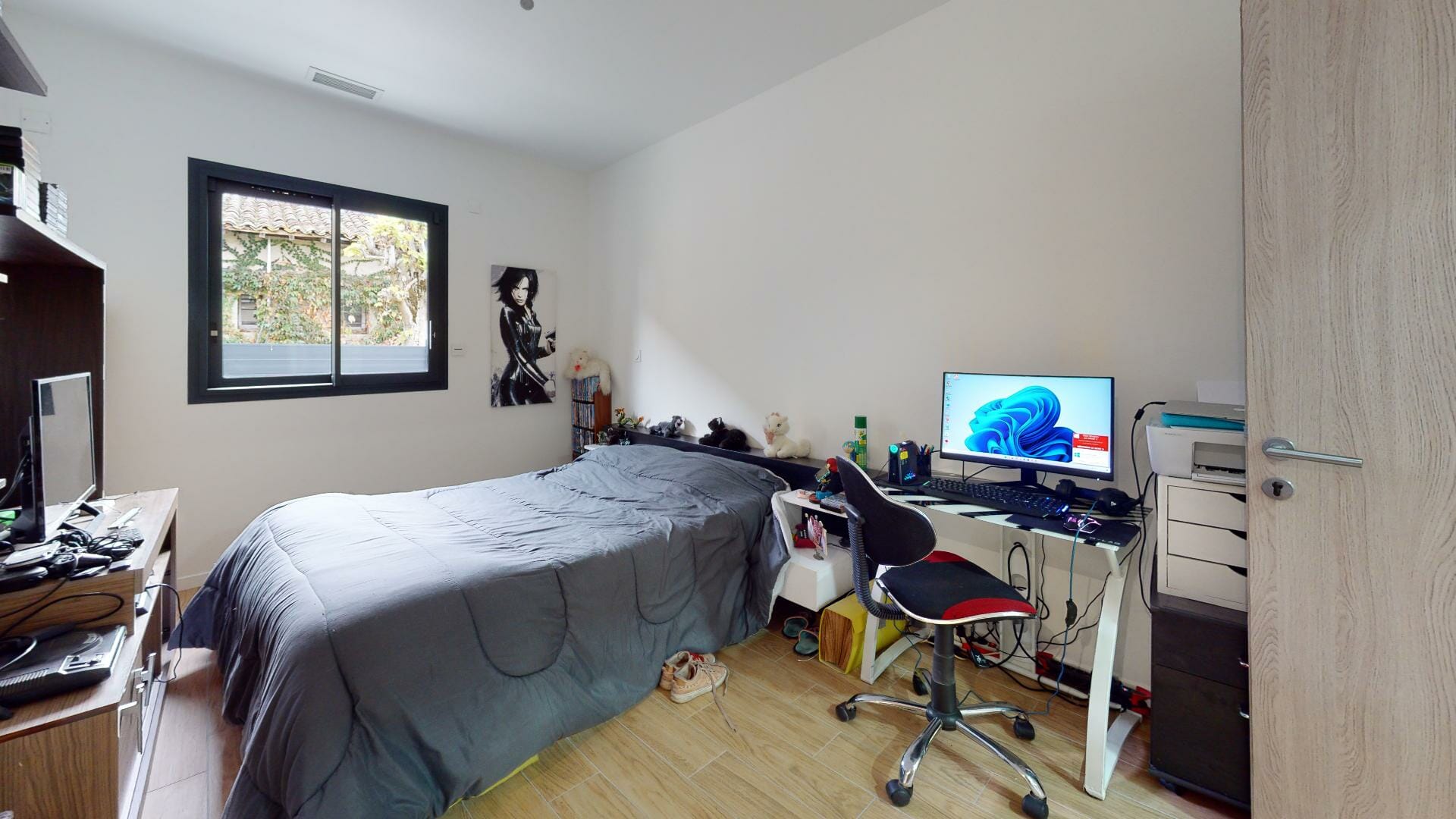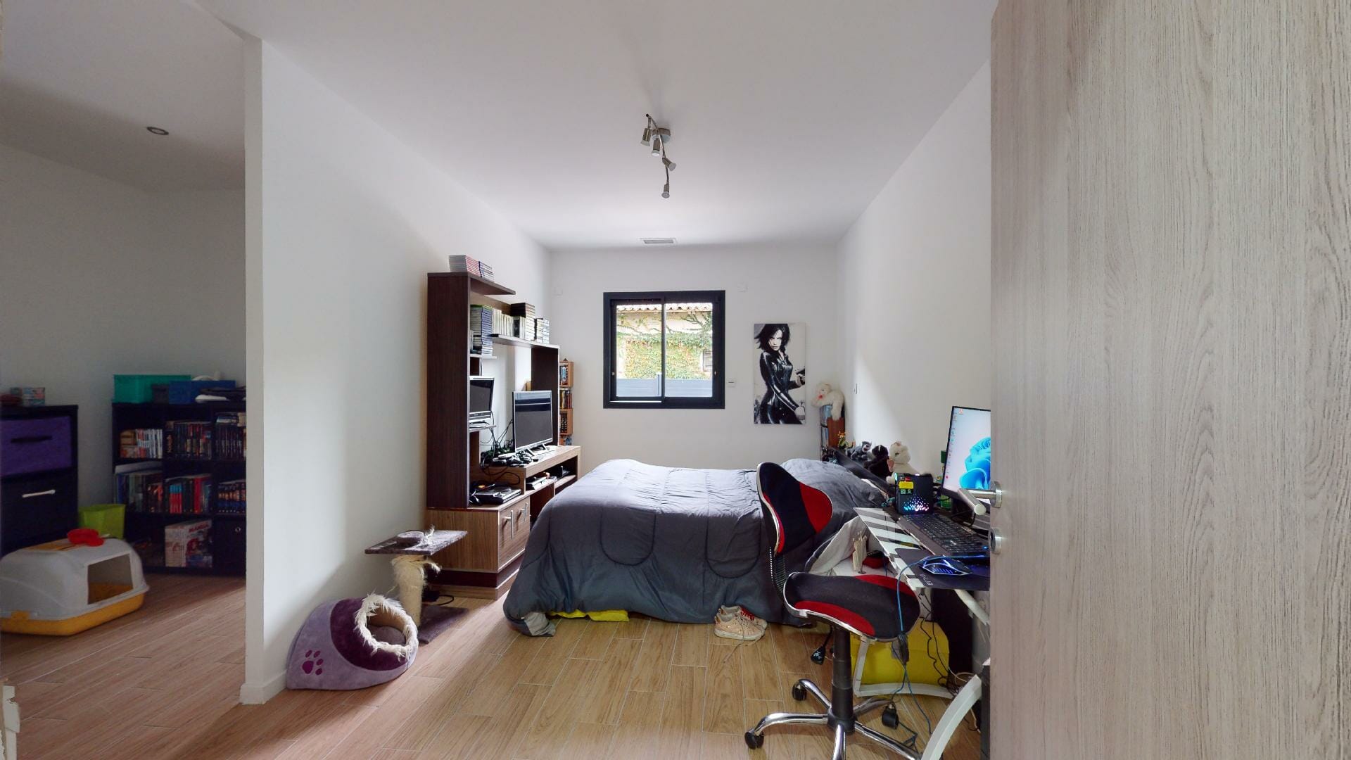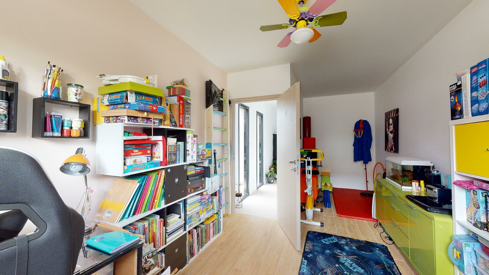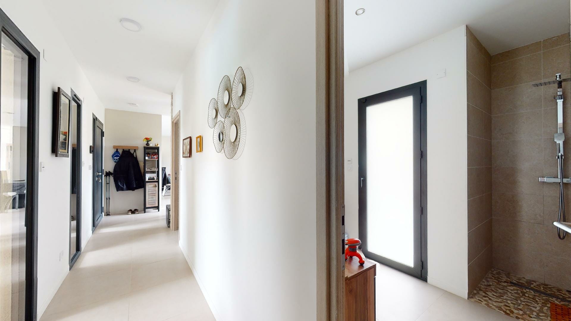 En continuité du séjour, une zone de dégagement menant à un bureau pouvant servir de 4eme chambre.