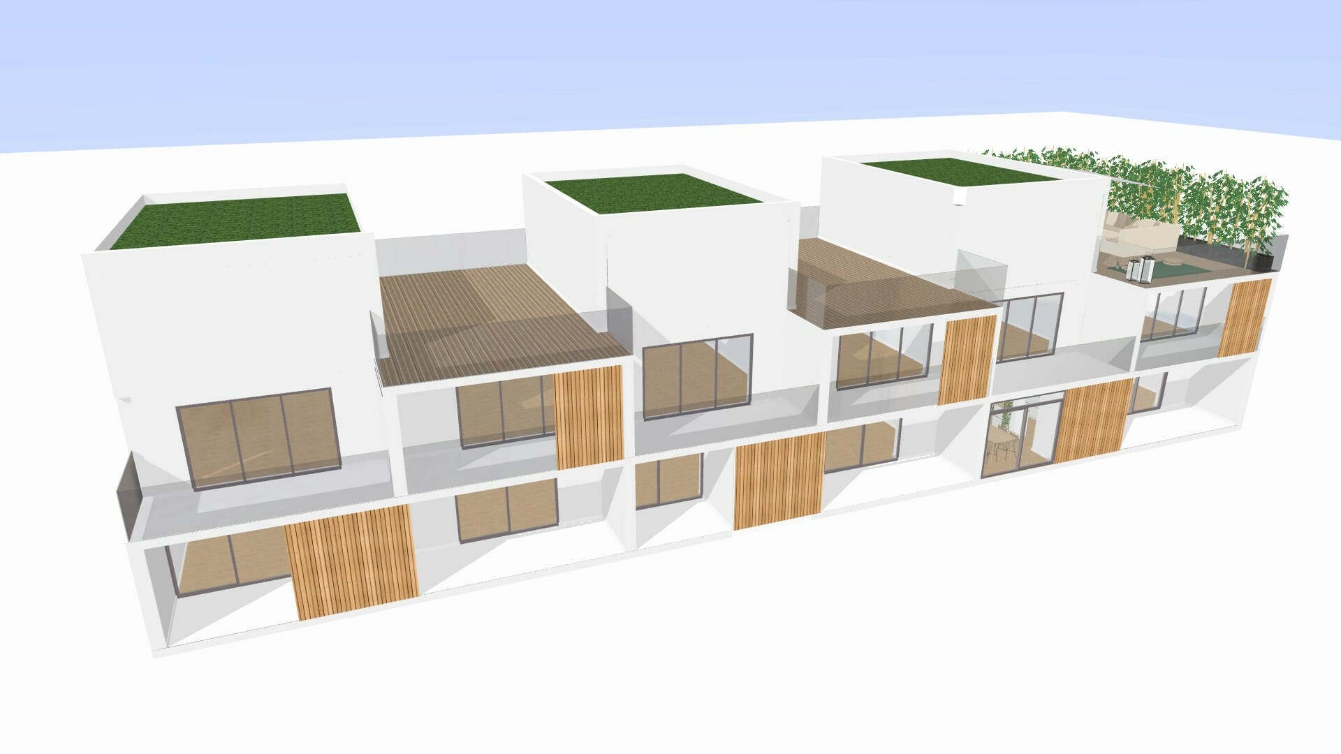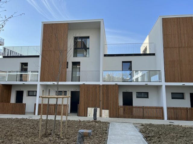 Façades agrémentées de couleurs et espaces végétalisés donnant un esprit Nature en Ville.