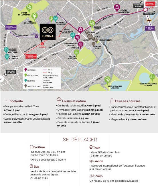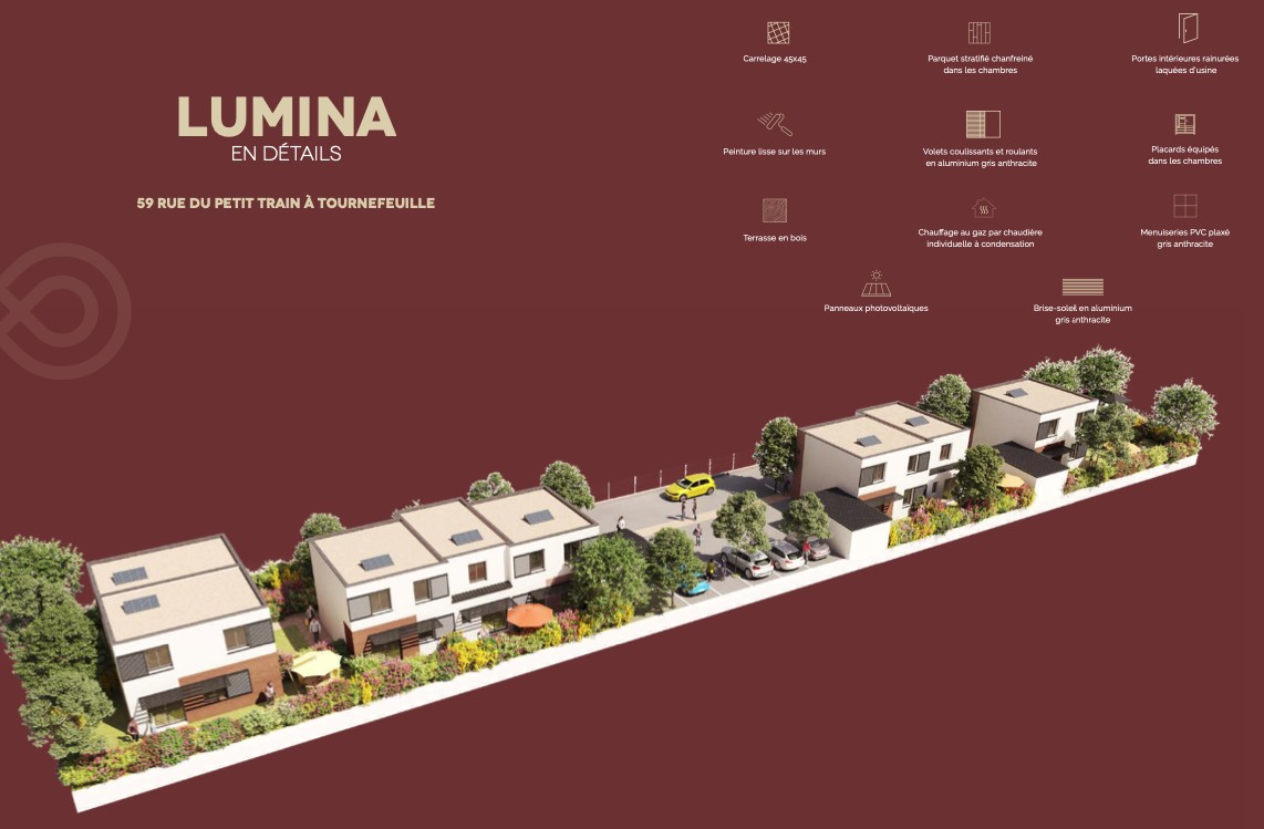 Située au cœur de Tournefeuille, non loin de la place de la mairie et à proximité de la forêt de La Paderne, la résidence Lumina a été imaginée pour s’intégrer harmonieusement dans le tissu pavillonnaire existant.