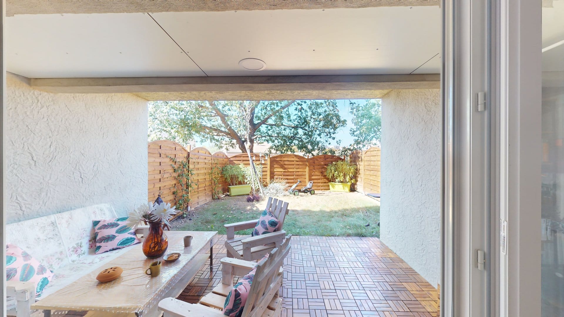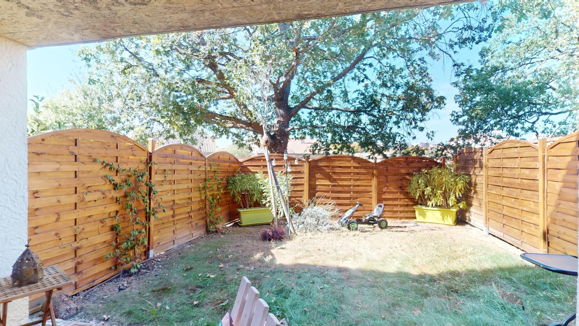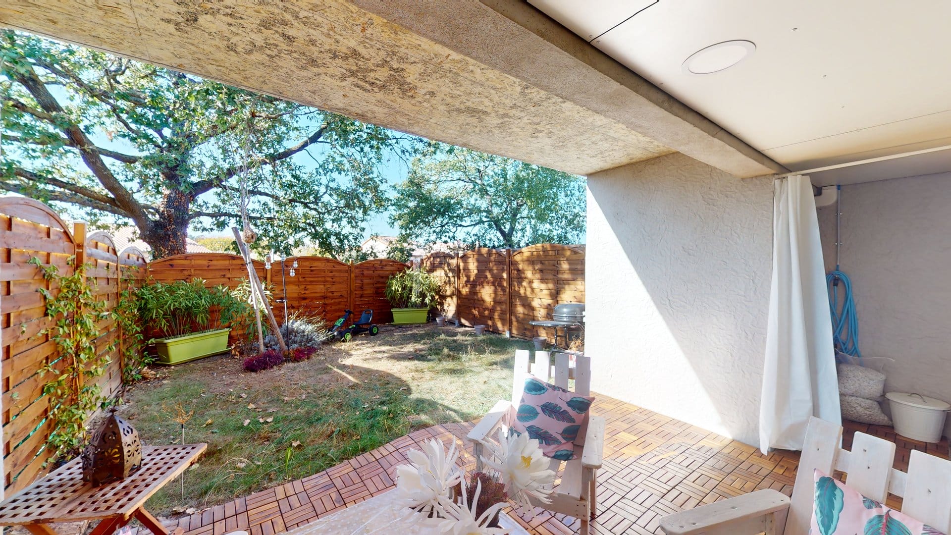 Une terrasse protégée et un jardin privatif.