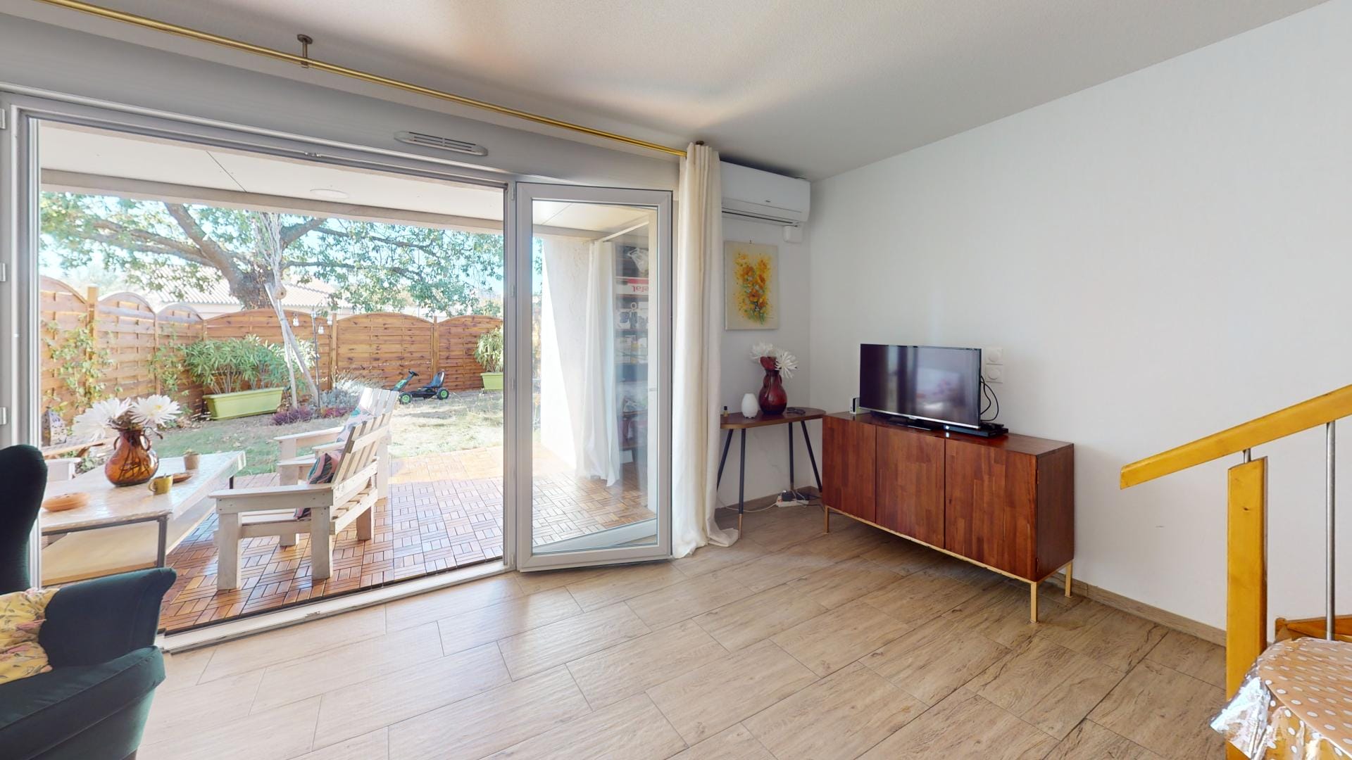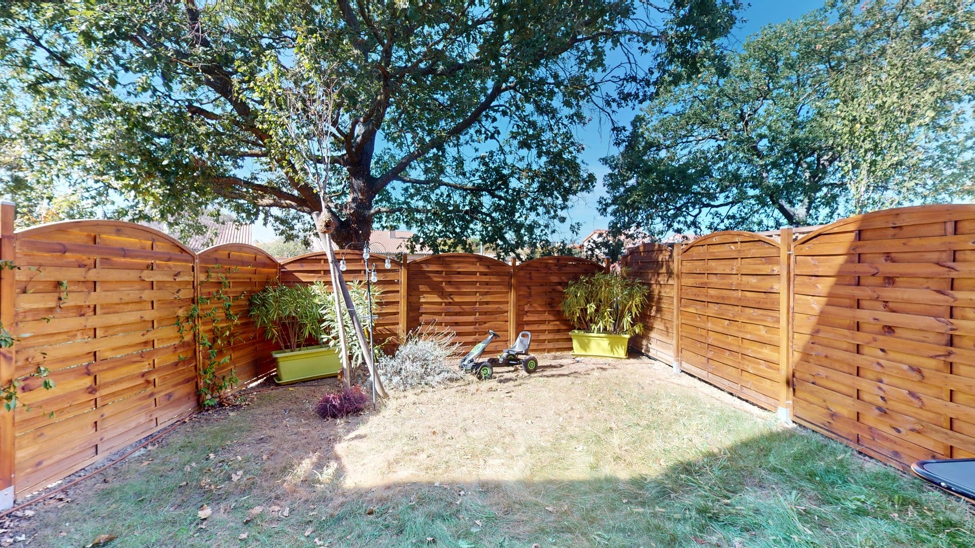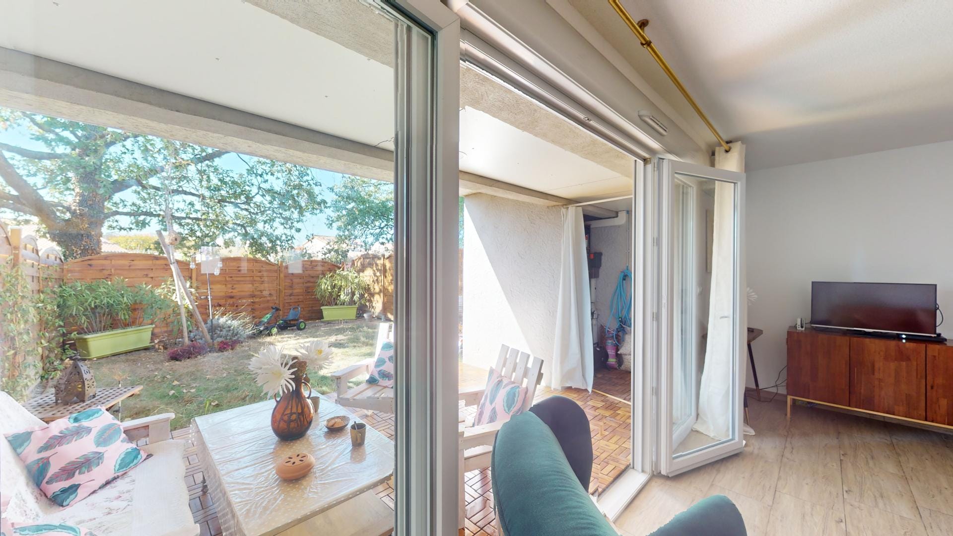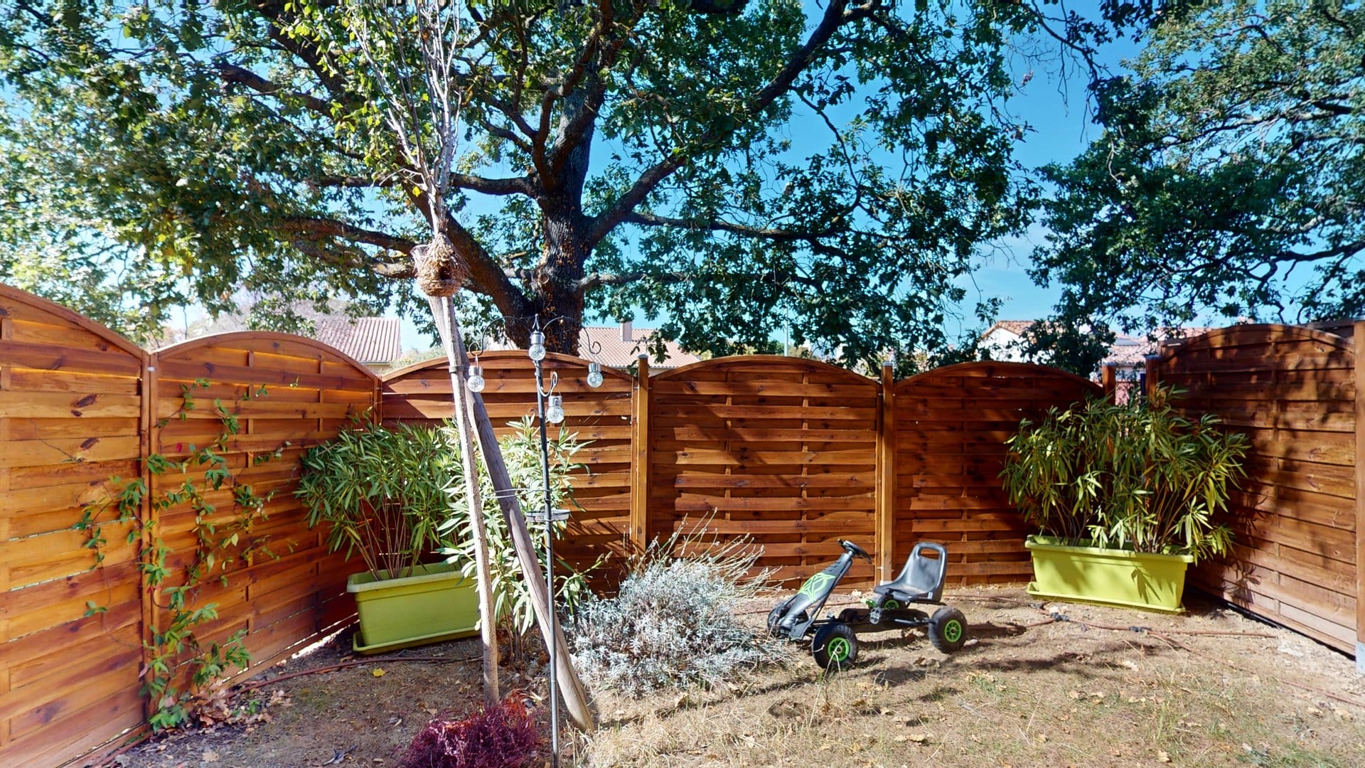 Une terrasse protégée et un jardin privatif.