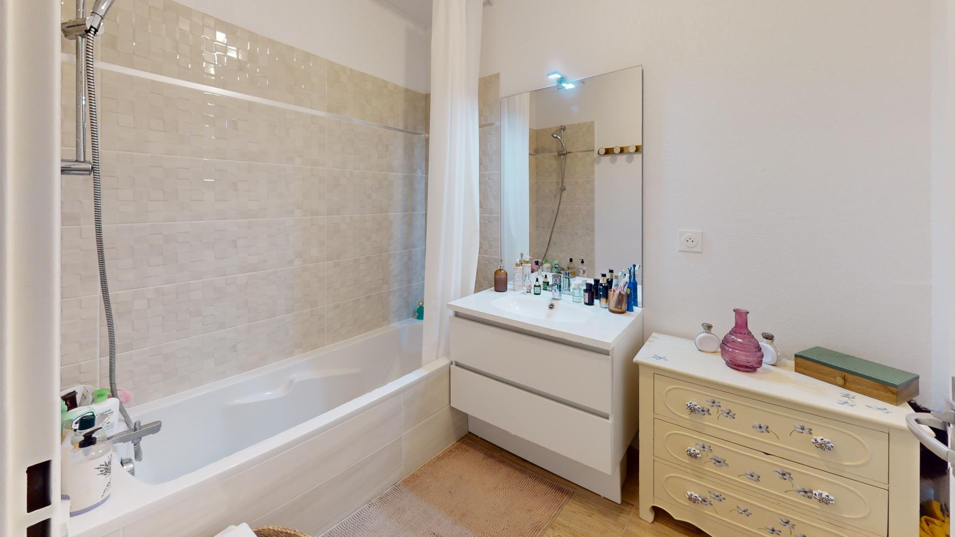 Notre approche 360 de mise en avant des potentiels d’un bien, nous a amené à redesigner l’espace sanitaire du rez-de-jardin, en supprimant la salle d’eau