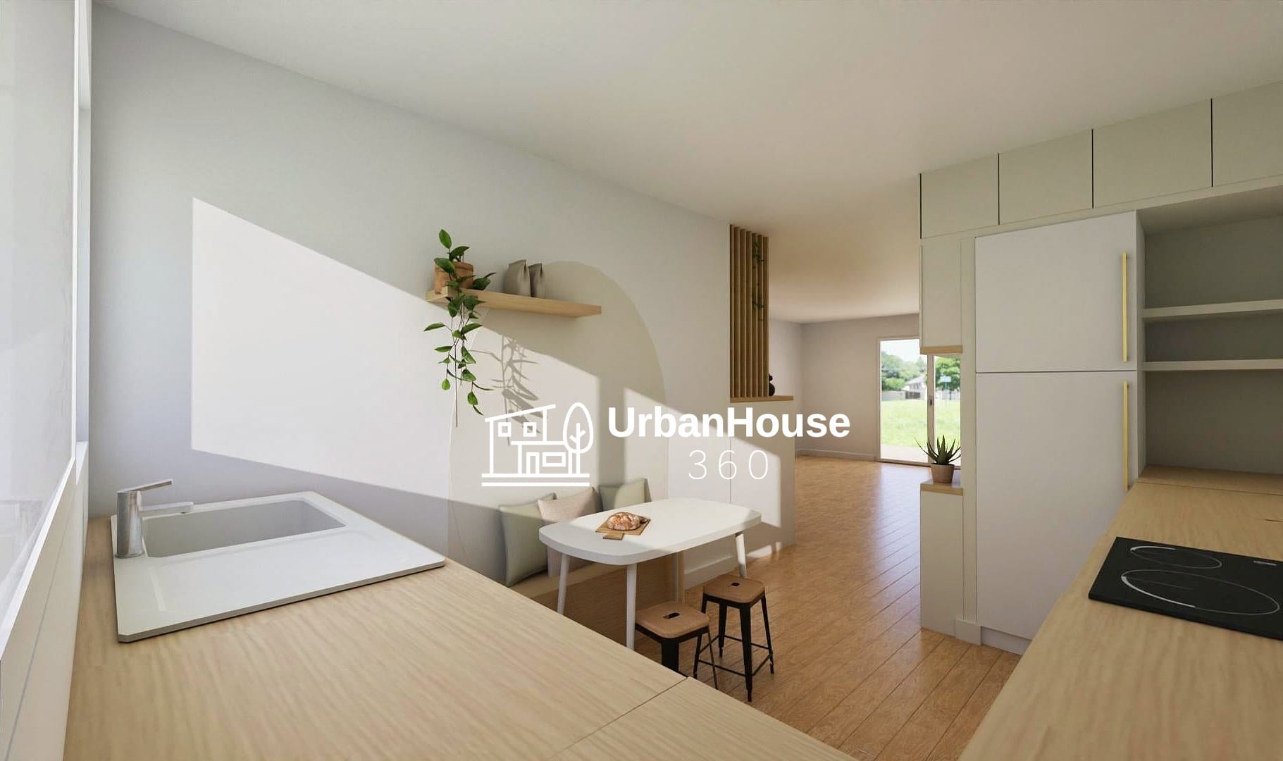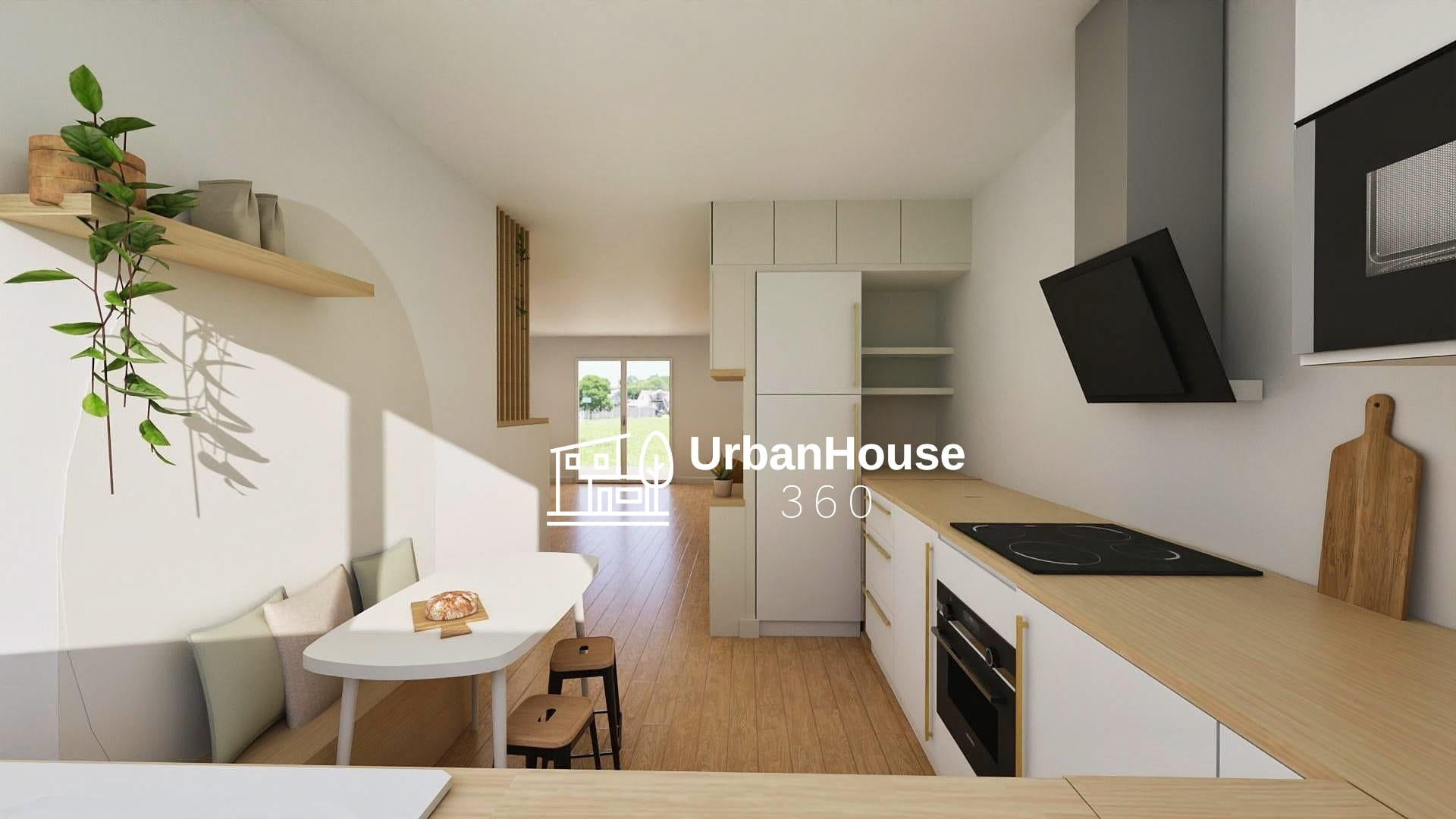 Réaménagement de l’space cuisine, ouverture vers séjour plus grande, insertion d’un espace repas dans la cuisine,
