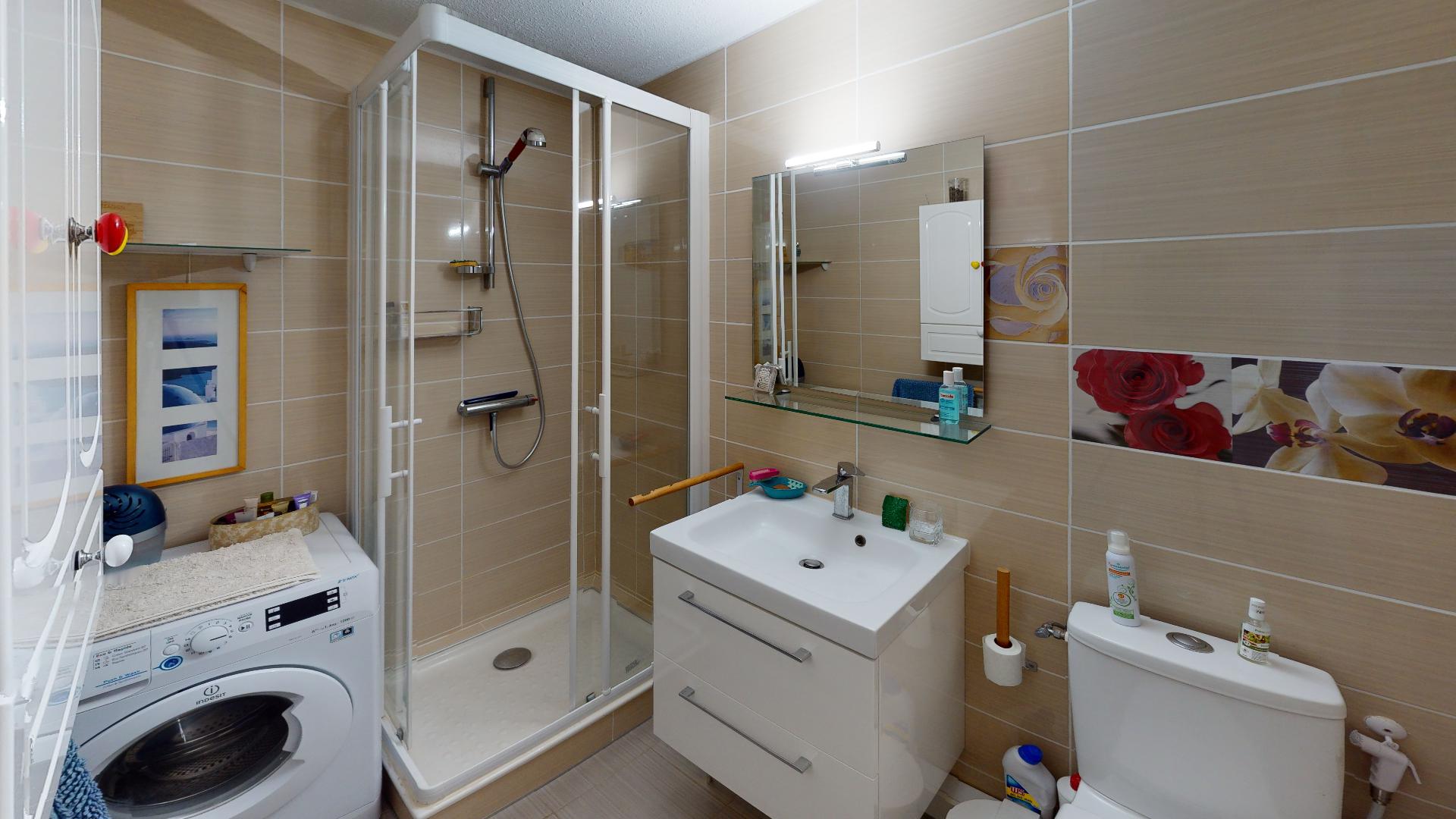 Petite résidence d’une copropriété de 22 appartements très bien gérée, sans procédure en cours, ni travaux à venir, l’appartement est situé au 3ème étage sur 5, avec un accès direct sur la plage, un ascenseur, un parking privé extérieur accès par un portail électrique, et un cellier fermé.